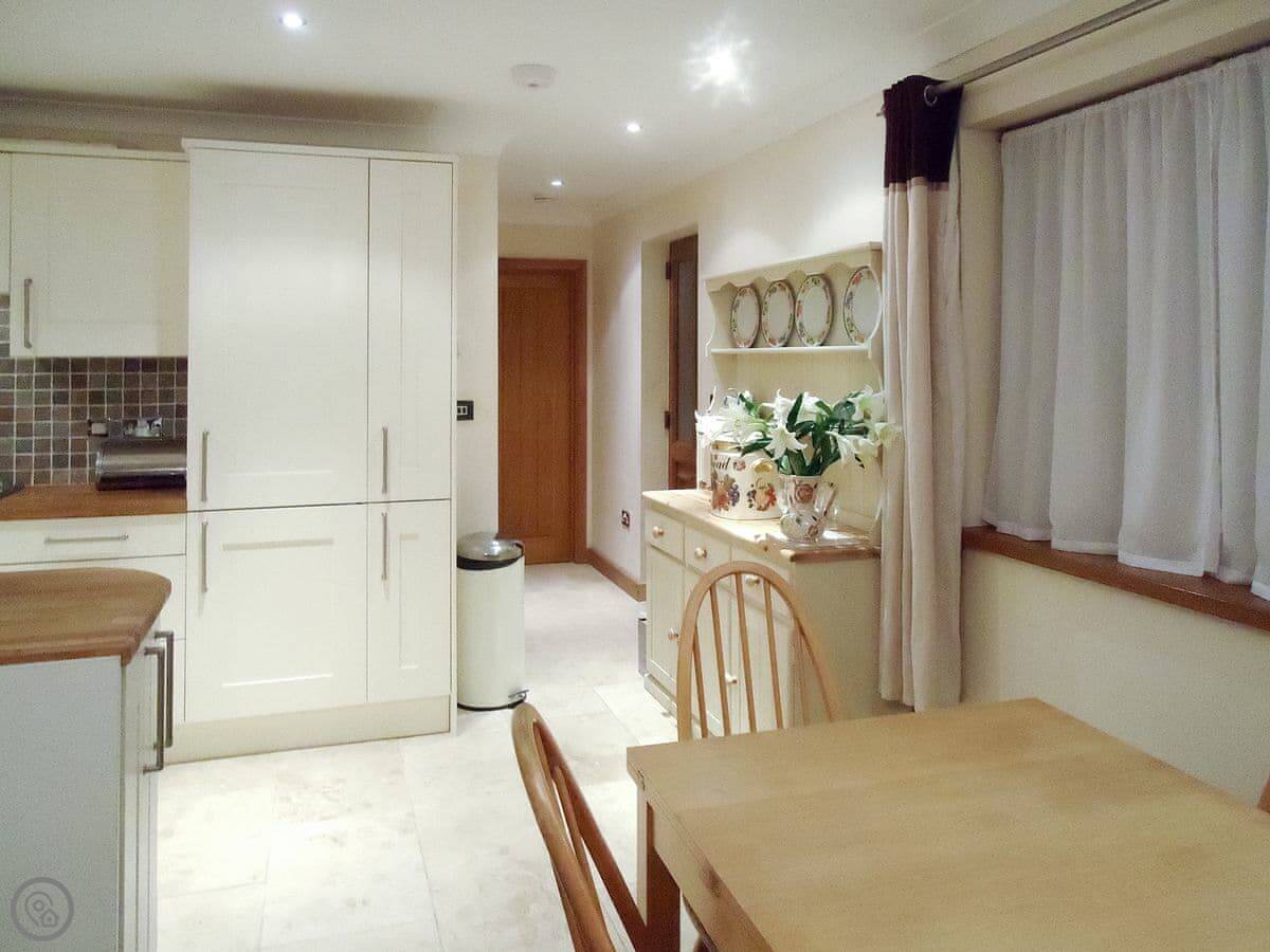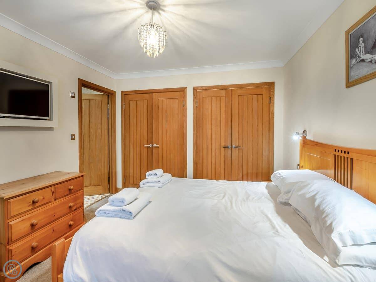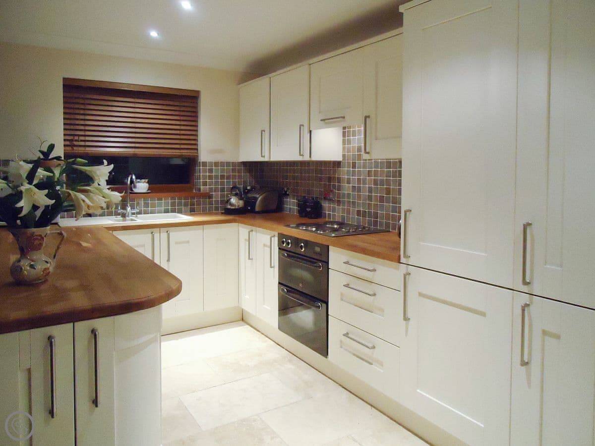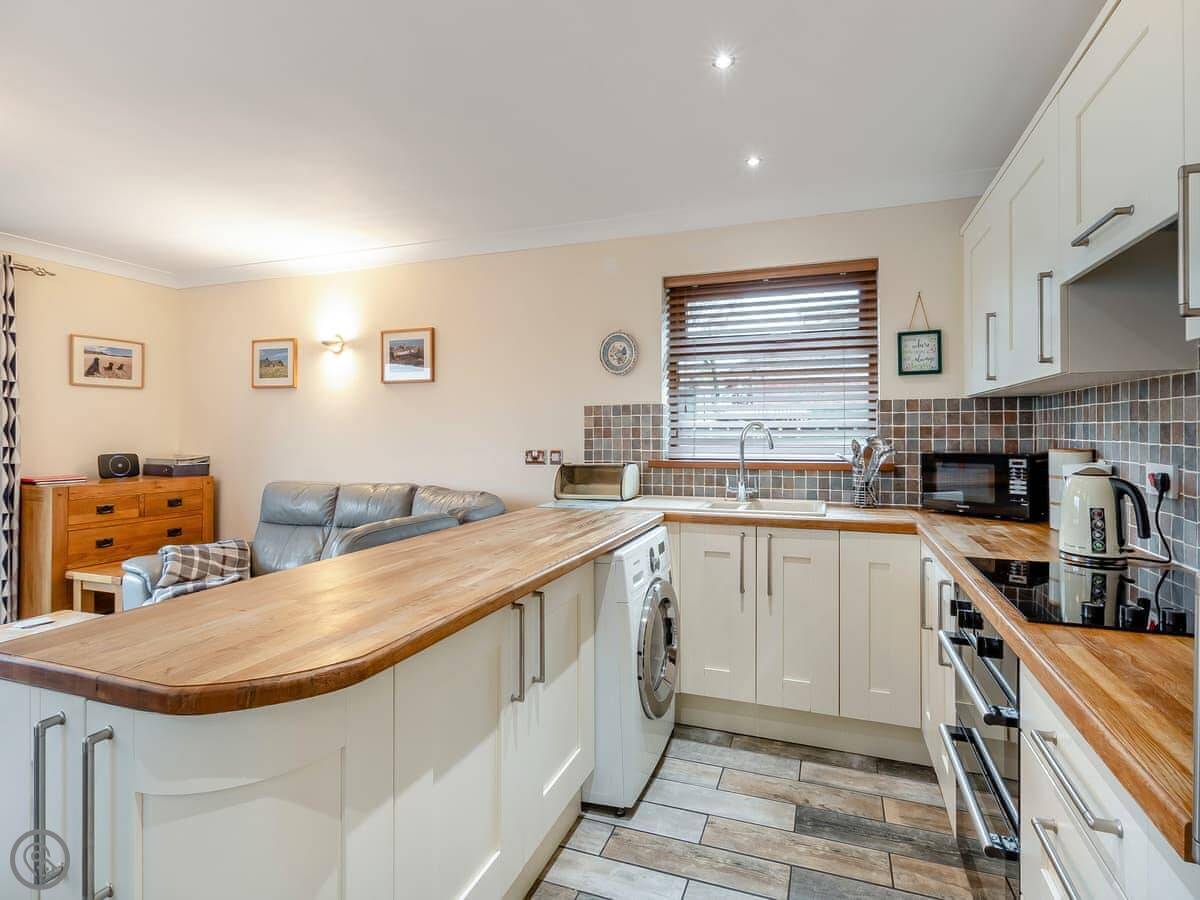 It's for two people. One bedroom, one bathroom. Got a 4 Star rating. It's modern, so everything works and it's easy to keep warm. The garden is enclosed, which is handy if you're bringing dogs. We take two.