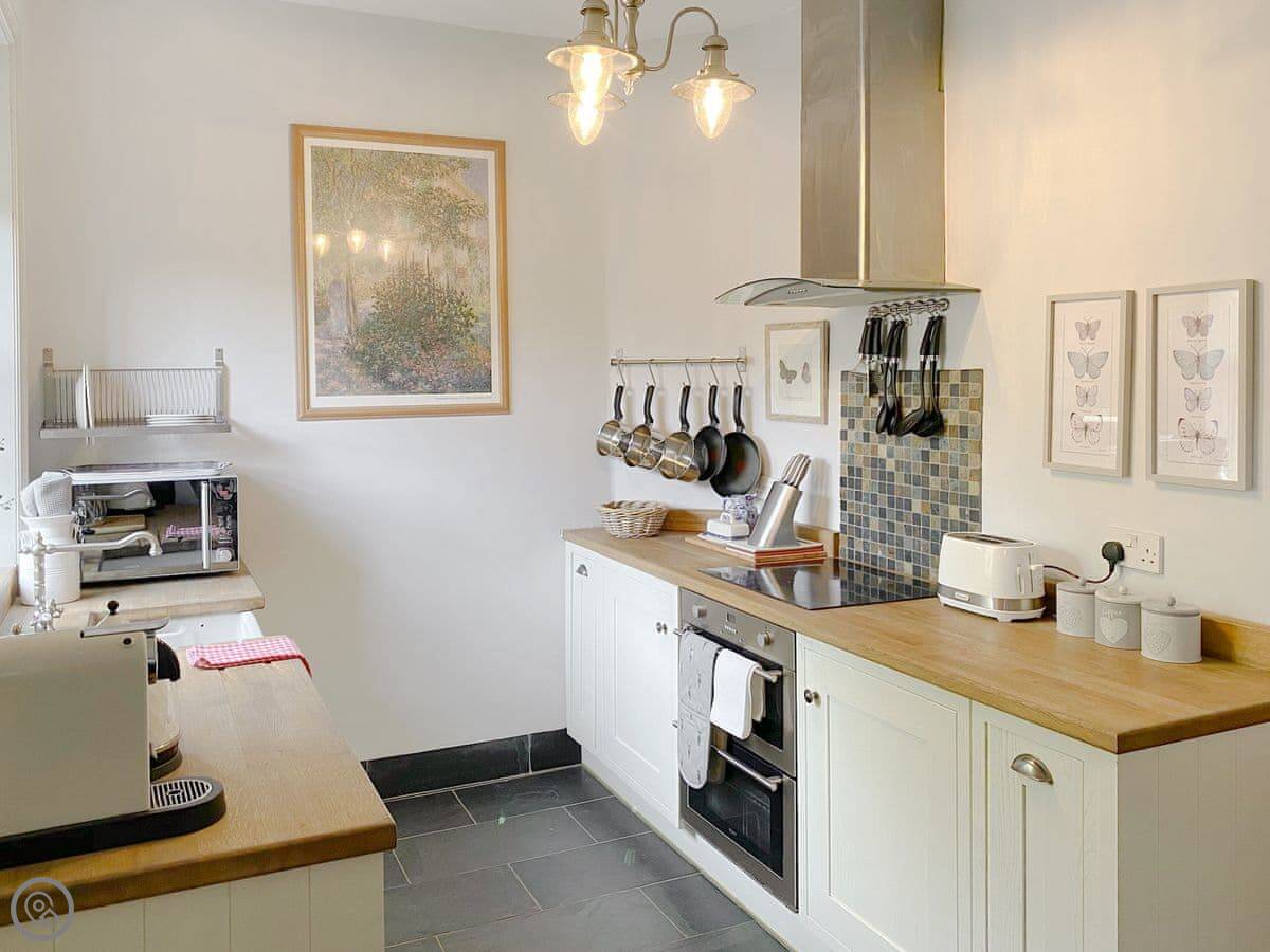 For facilities: there's a washing machine, dishwasher, WiFi, TV, and parking. The garden is enclosed. You can bring one dog. Bedding is included.