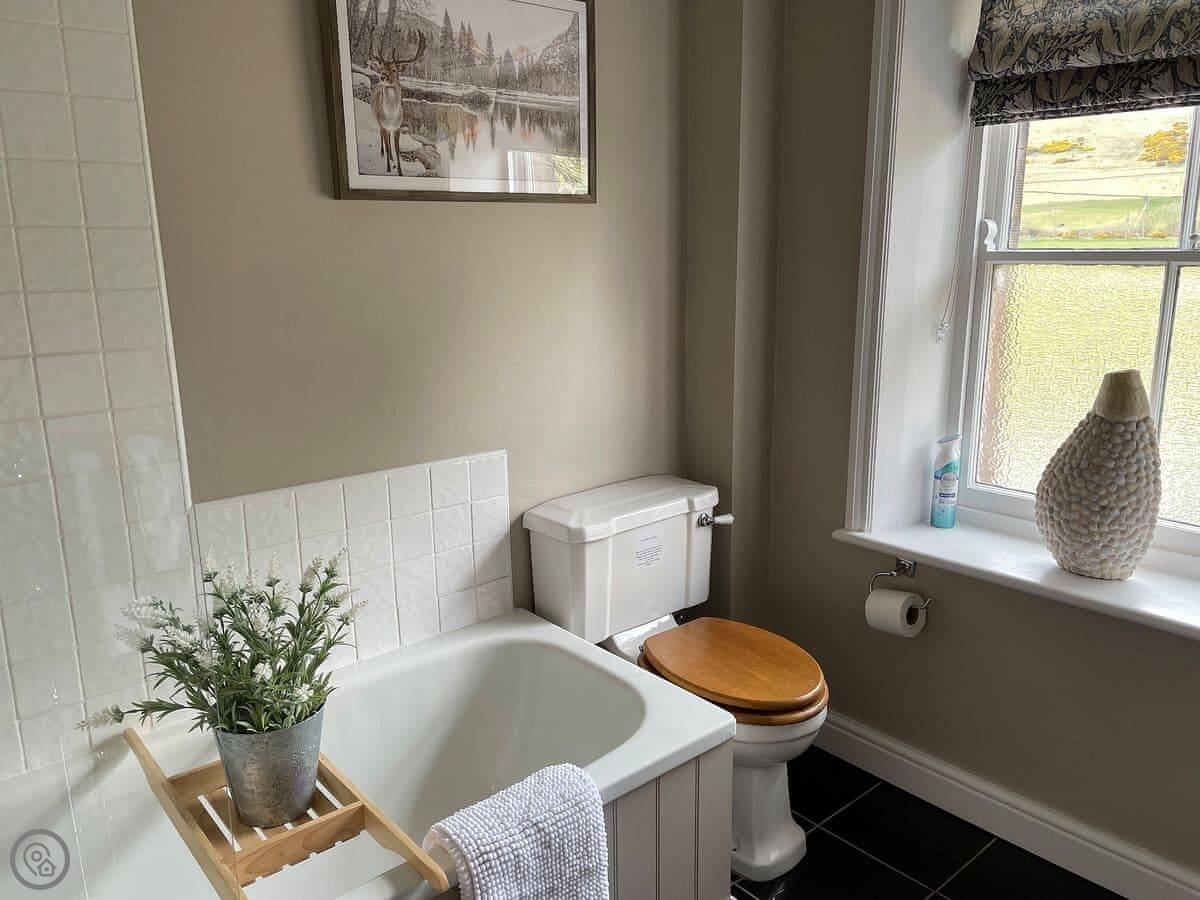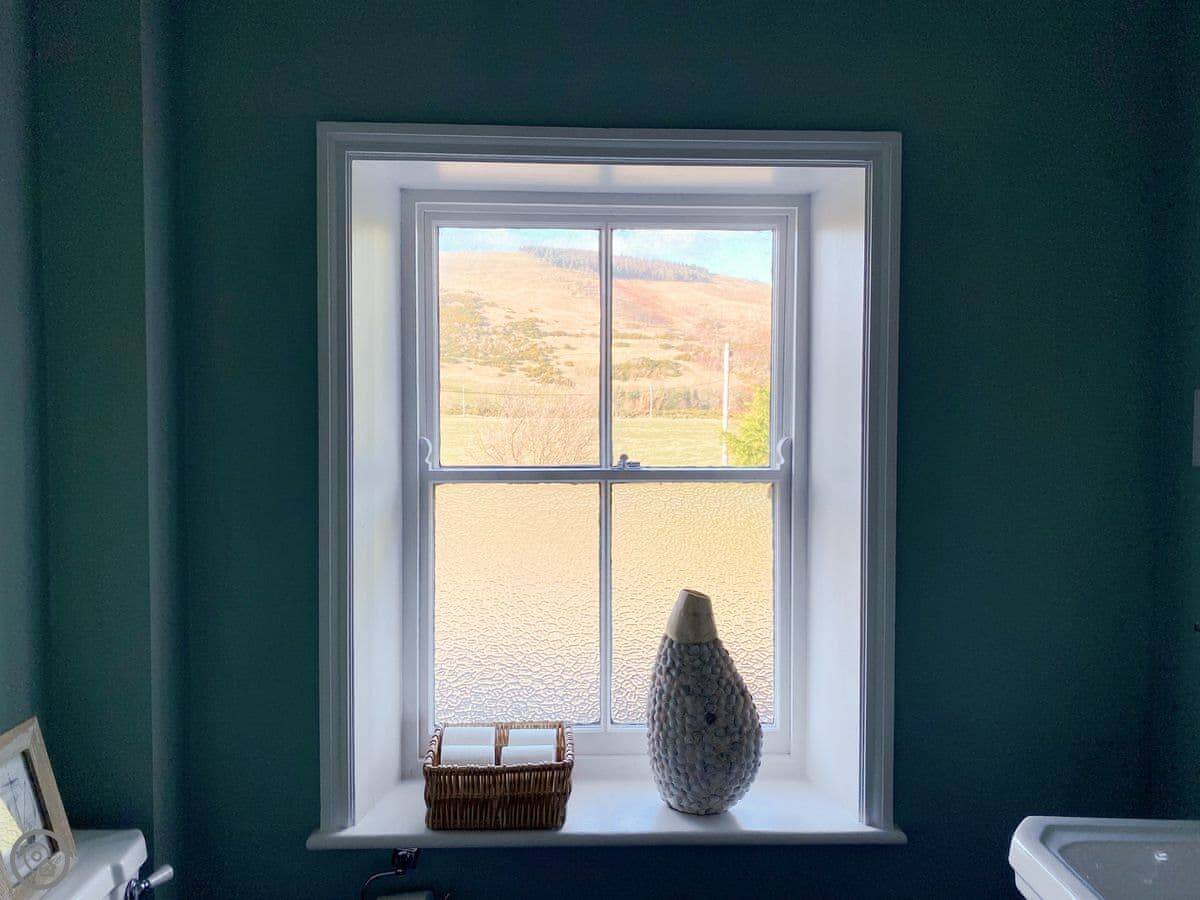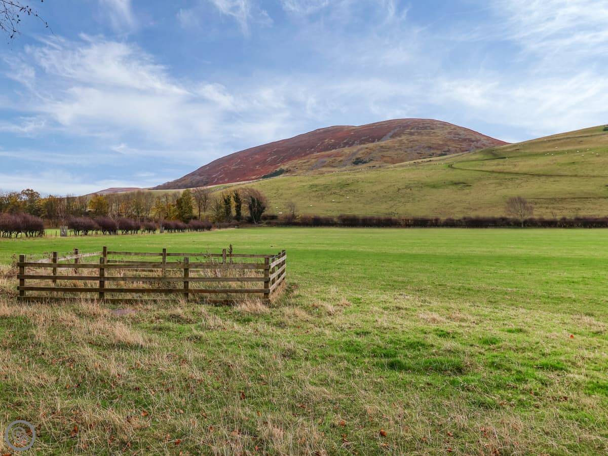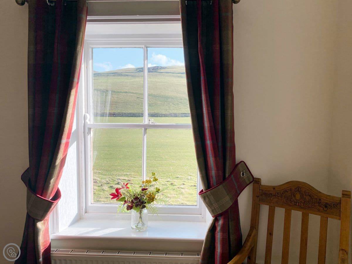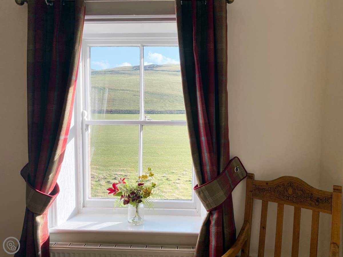 It sleeps four. Two bedrooms, two bathrooms. It's a 3 Star place, so it's comfortable and clean. The kitchen has slate floors, an oak worktop and a Belfast sink. The living room has an open fire. The main thing about it is the view. You look straight out over the College Valley towards the Cheviot Hills. It's all heather and open land.