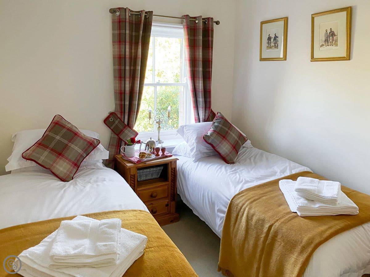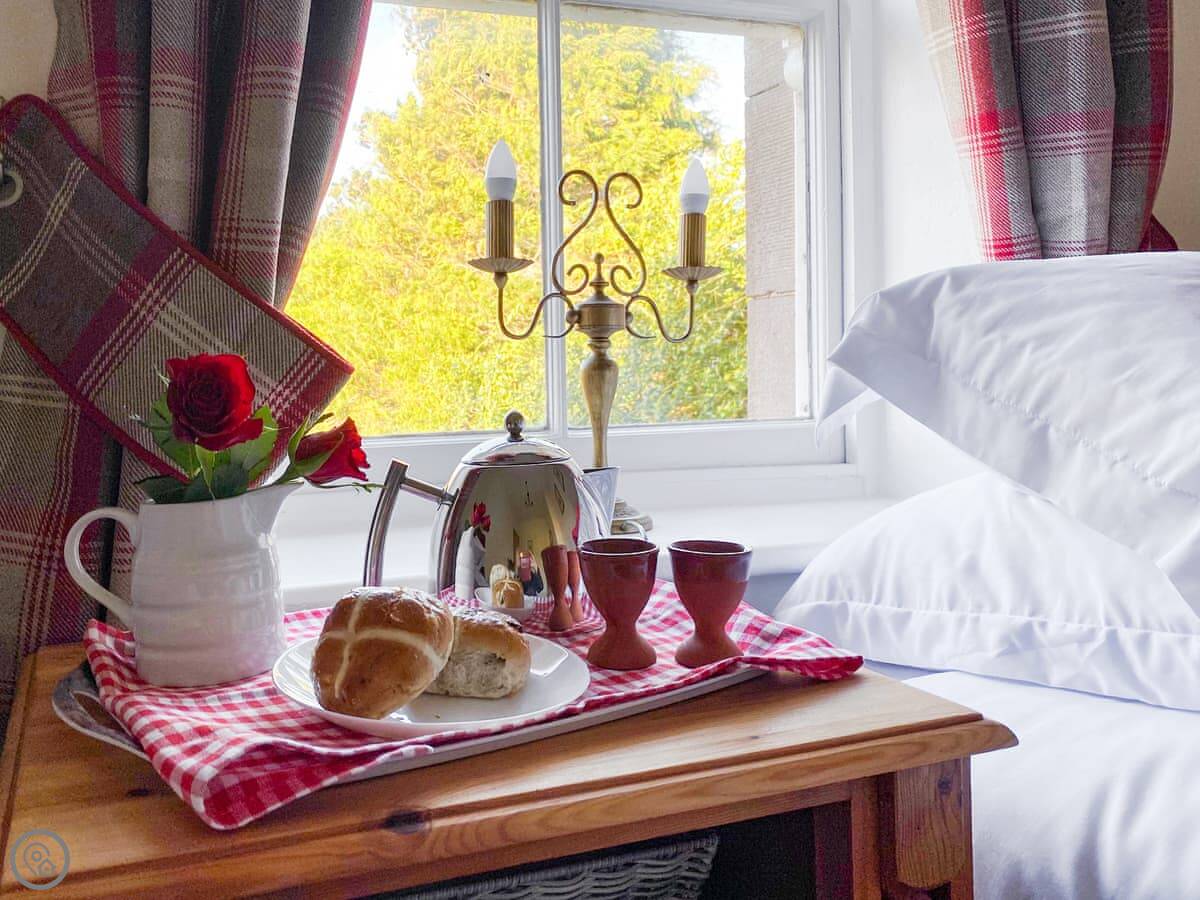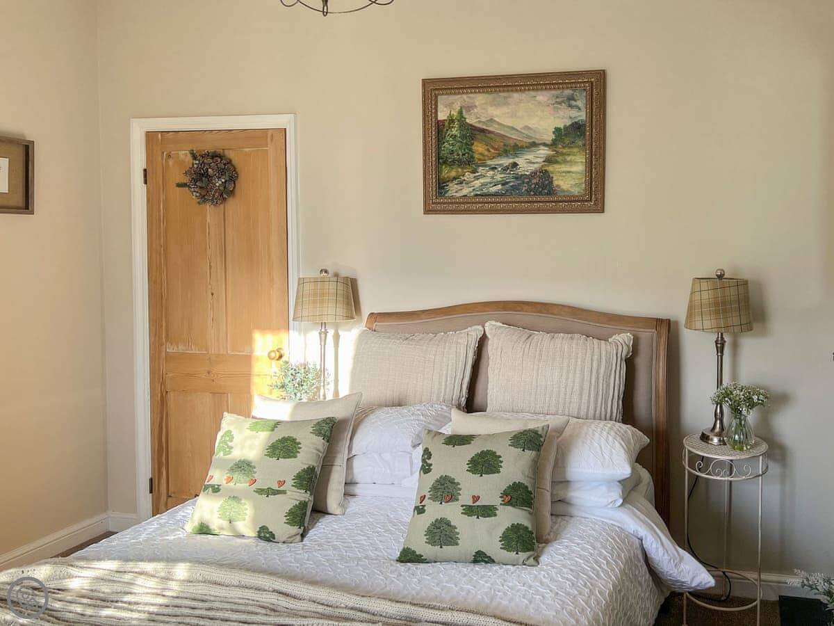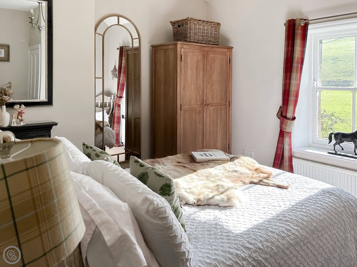 It sleeps four. Two bedrooms, two bathrooms. It's a 3 Star place, so it's comfortable and clean. The kitchen has slate floors, an oak worktop and a Belfast sink. The living room has an open fire. The main thing about it is the view. You look straight out over the College Valley towards the Cheviot Hills. It's all heather and open land.