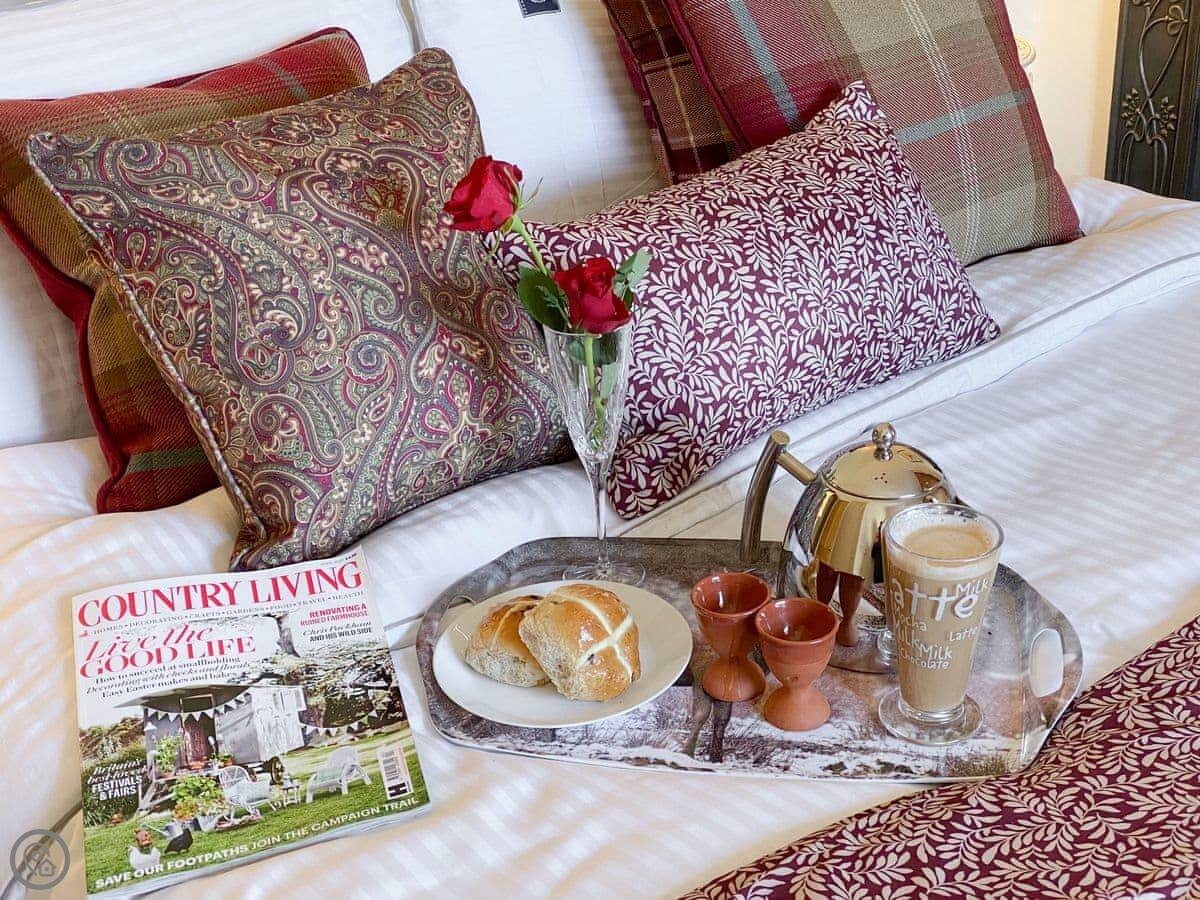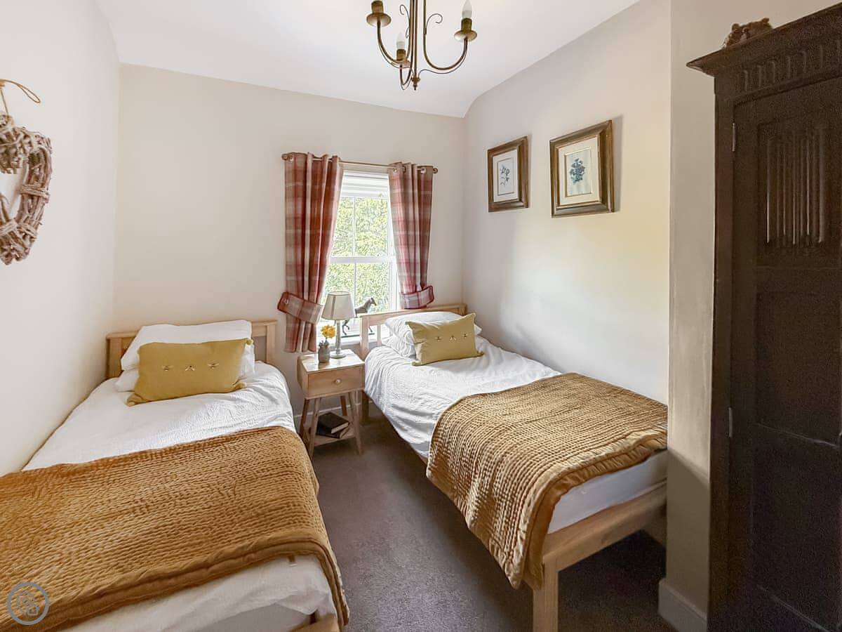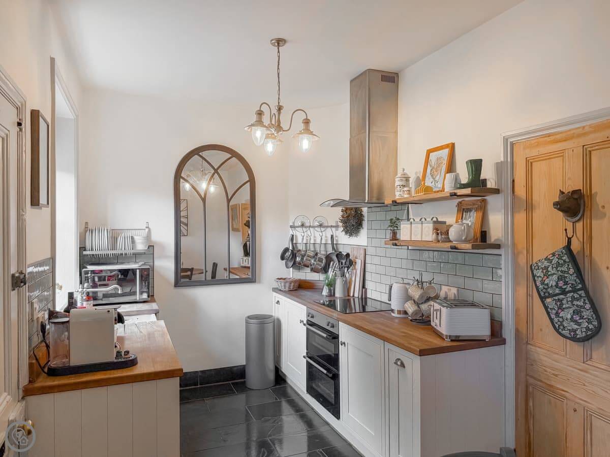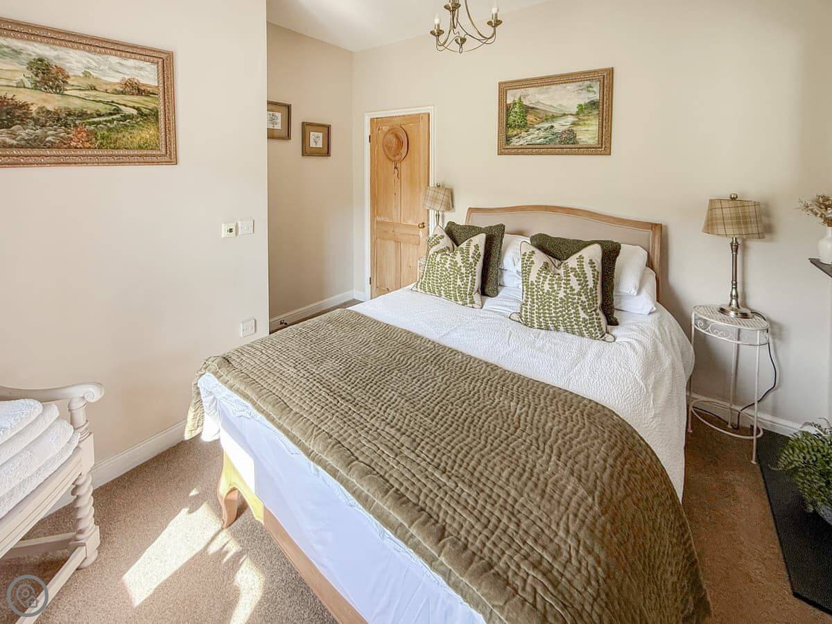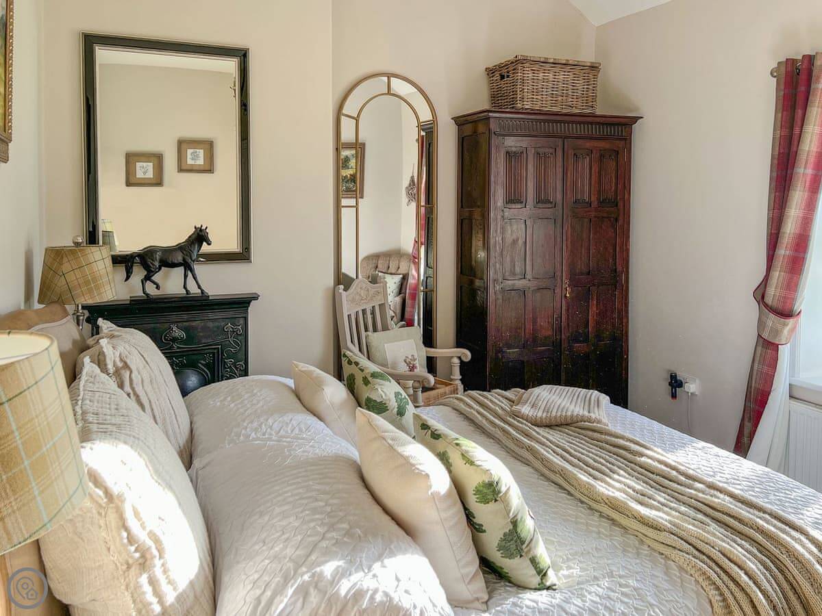 It sleeps four. Two bedrooms, two bathrooms. It's a 3 Star place, so it's comfortable and clean. The kitchen has slate floors, an oak worktop and a Belfast sink. The living room has an open fire. The main thing about it is the view. You look straight out over the College Valley towards the Cheviot Hills. It's all heather and open land.