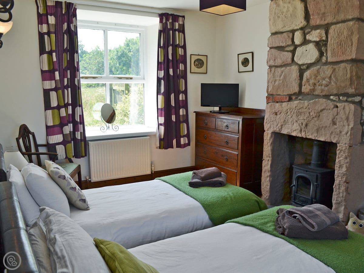 Inside, there's an open fire in the lounge and a wood burner in the kitchen. The kitchen is a decent size. It has a dishwasher and a washing machine. Bedding and towels are included. There's Wi-Fi.