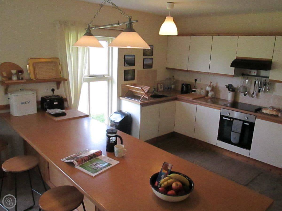 In terms of what's here, it's all the basics. Washing machine, WiFi, parking, bedding and towels are included. You can bring up to two dogs. There's a BBQ and bike storage. We provide a cot and highchair if needed.