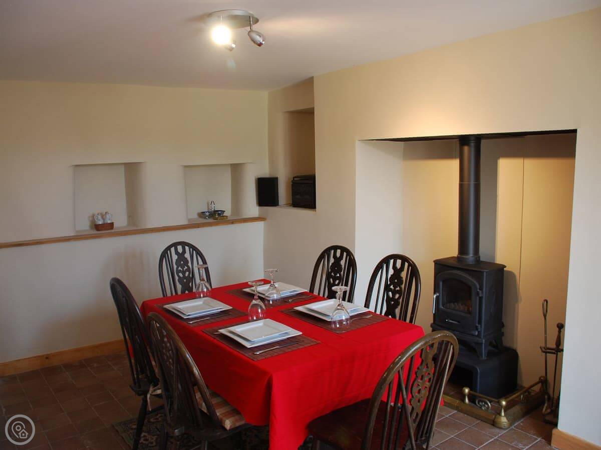 There are two fireplaces. One's an open fire in the living room, the other is a wood burning stove in the other room. We supply the wood for the stove. The kitchen's been updated.