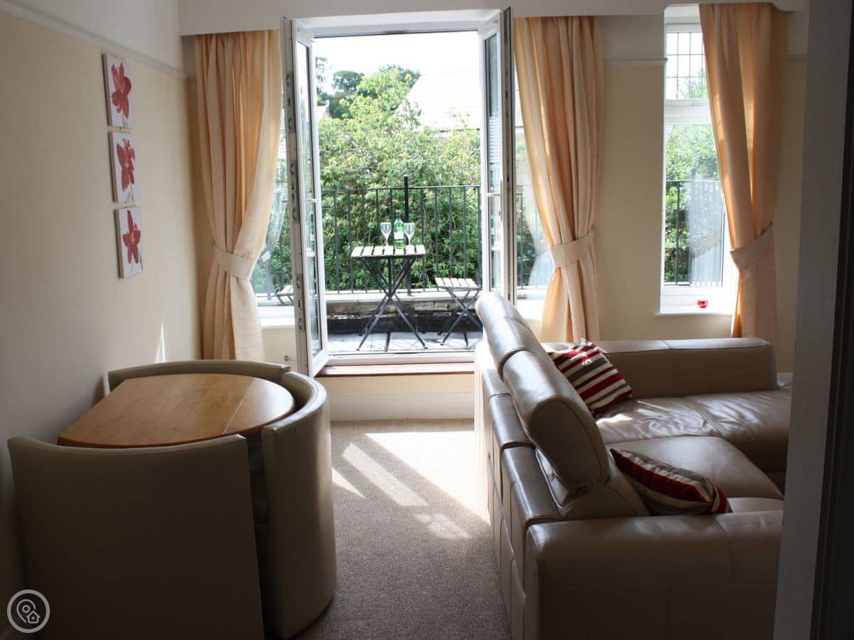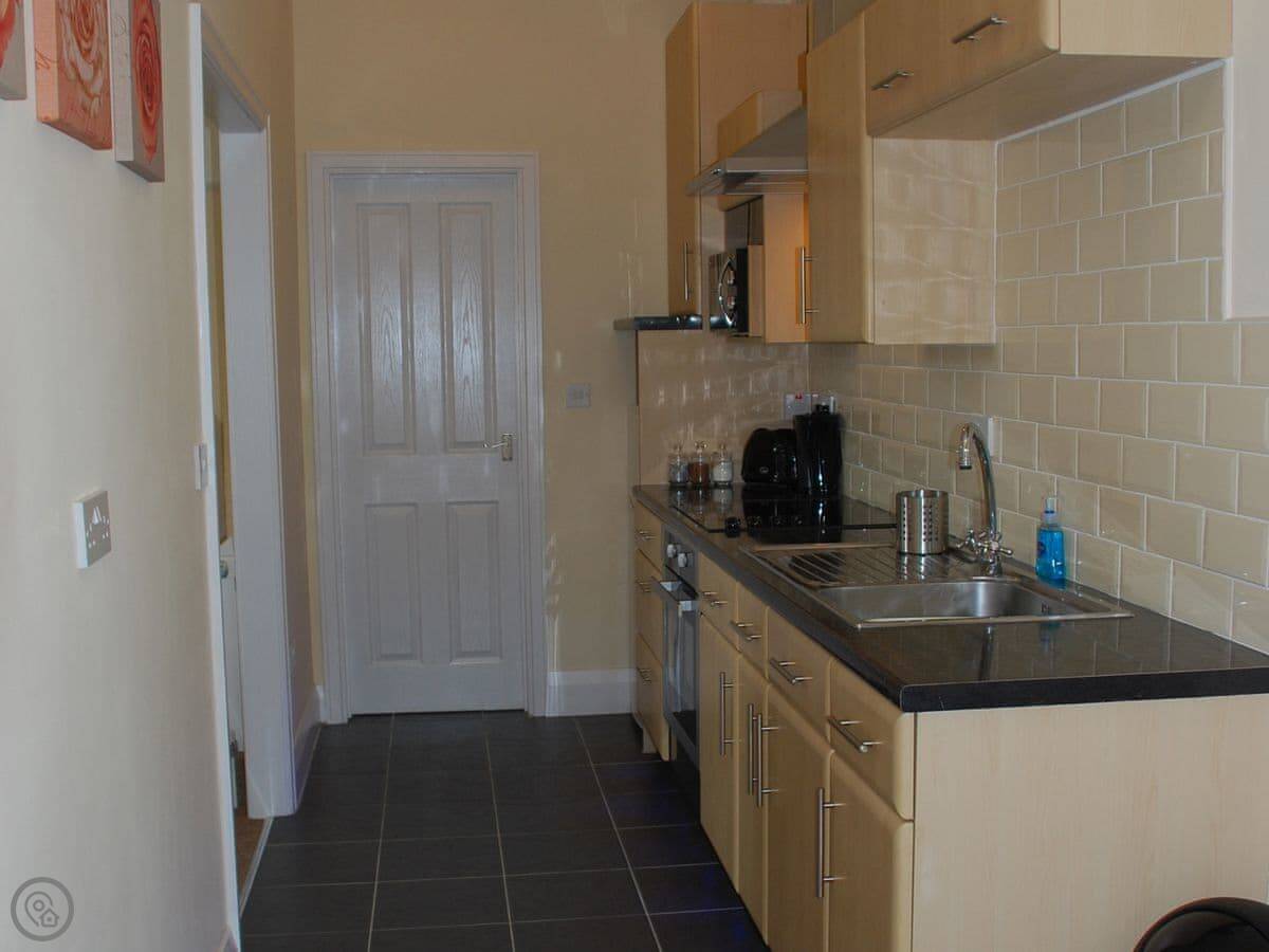 The apartment has its own private external stairs and entrance door, which leads into a newly fitted galley kitchen, off which the lounge, bedrooms and bathroom are accessed. the lounge has luxurious leather sofa to relax on and patio doors that open onto the balcony, a pleasant place to sit out on a summer’s evening. The property also has access to a large garden, making this an ideal choice for a couple or small family.
