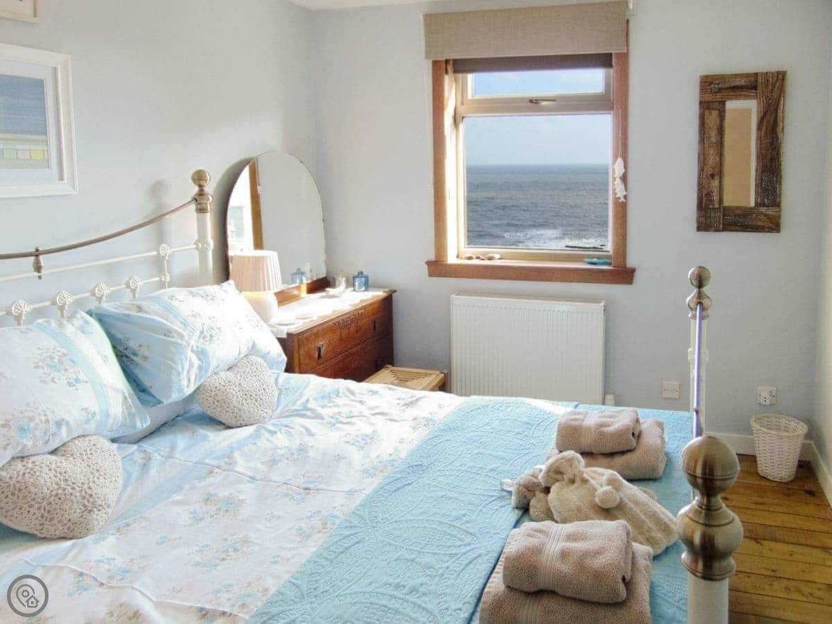 This charming, end terraced former fisherman’s cottage sits in an unrivalled location at the end of a quiet lane in the village of Auchmithie, commanding wonderful views over the sea from the lovely terraced garden. Enjoy a glass of wine whilst looking out for porpoises or dolphins which are frequently sighted here. Take a short stroll to the local restaurant which is well known in the area for serving good food. There is a very good coastal walk from here to Arbroath, seven miles, which takes in the spectacular scenery of the Seaton Cliffs. Arbroath itself has an abundance of other eating places, shops selling fresh caught fish and other gift shops. The town’s historical past is well worth exploring, visit Arbroath Abbey, best known for being the origin of the Declaration of Arbroath or sample the famous ’smokies’, available down by the bustling harbour. Pay a visit to the Signal Tower Museum with its history of Arbroath lighthouse keepers. Inland, the Angus Glens beckon the keen walker, while golfers are spoilt for choice, with many courses in the vicinity, not to mention Carnoustie’s famous links. Nearby is historic Montrose, RSPB Montrose Basin and The National Trust for Scotland property, House of Dun. Shop 2 miles, pub 1½ and restaurant 300 yards.