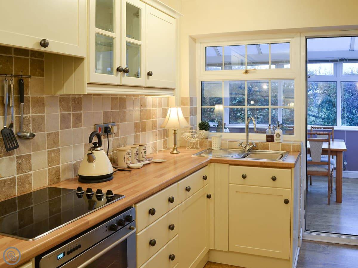 It's got a 4 Star rating, which is good. Two bedrooms, sleeps four, bathroom. The garden is enclosed so it's safe if you've got dogs. The owners let you bring two pets.