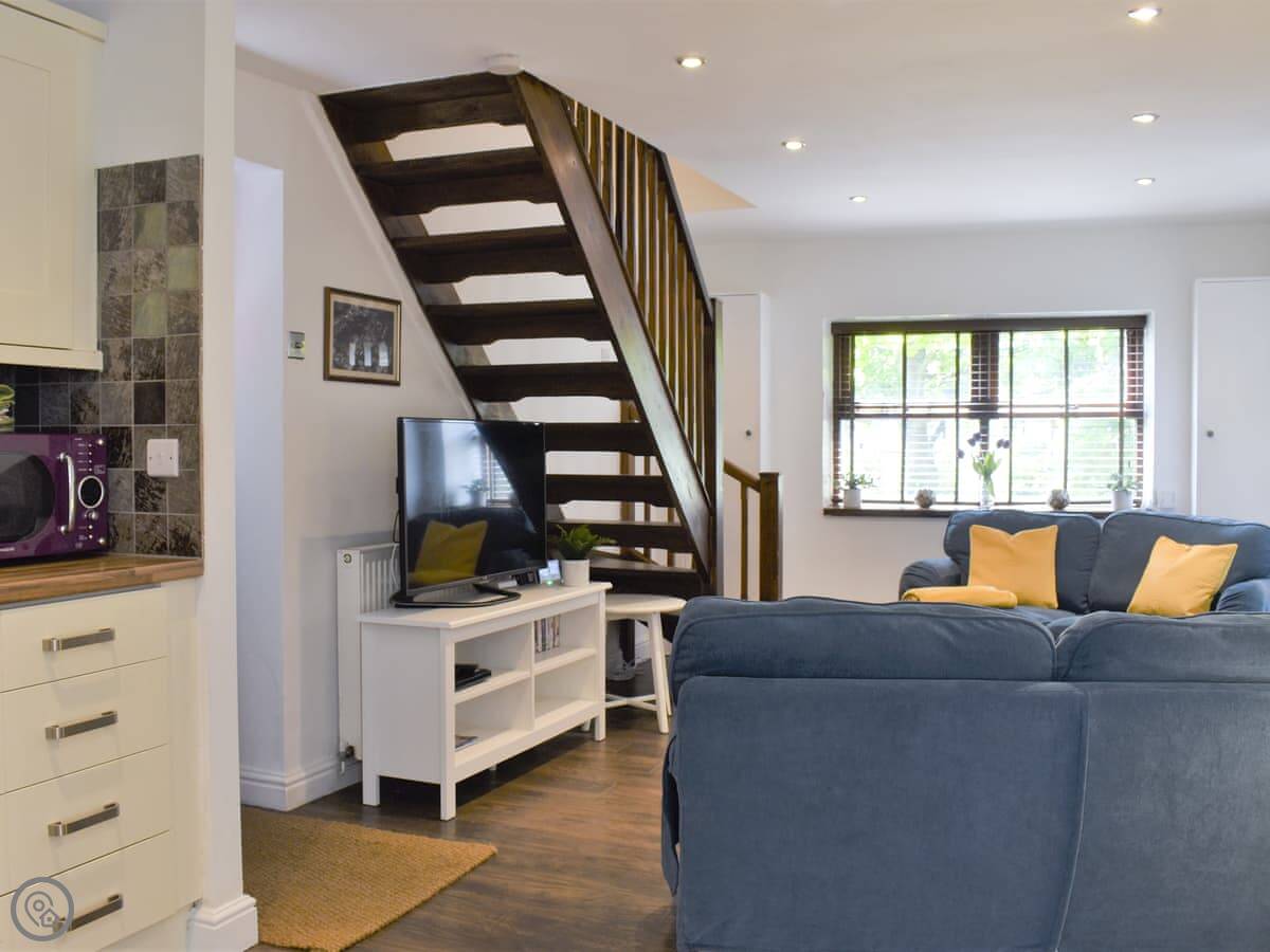 The place is a 4 Star rating. It's been done up well, so it's comfortable and everything works. Now, the stairs. They're in the middle of the living room, and they're the spiral type. They're steep and a bit narrow. Just so you know.