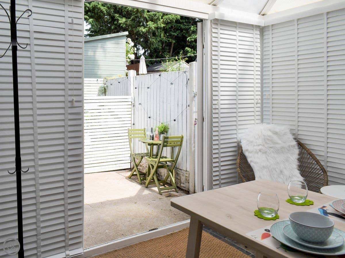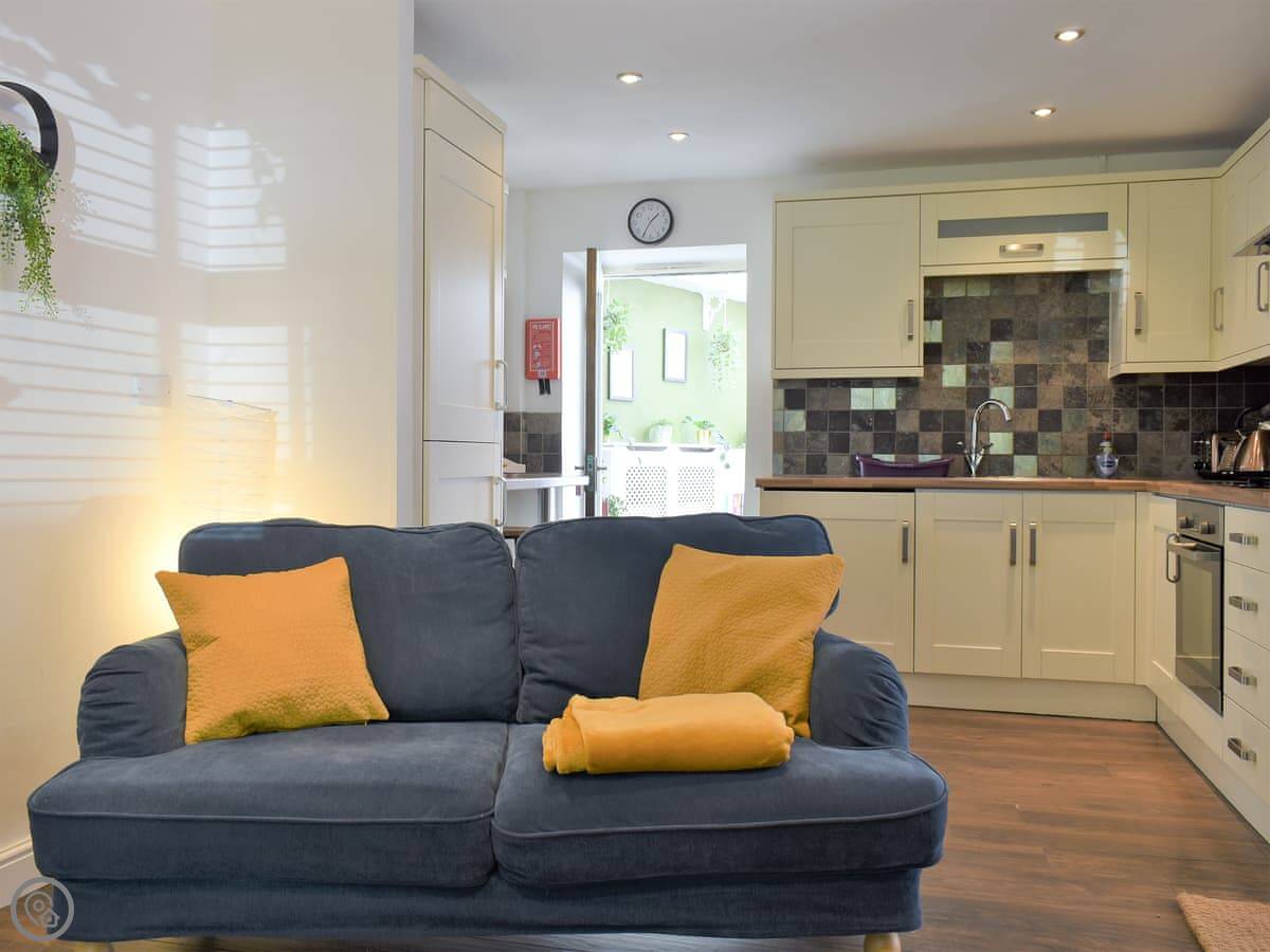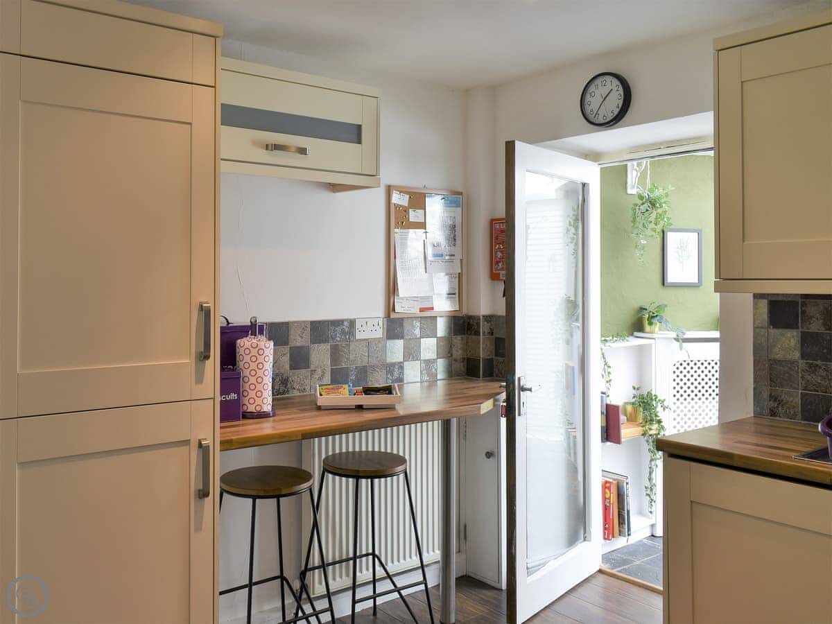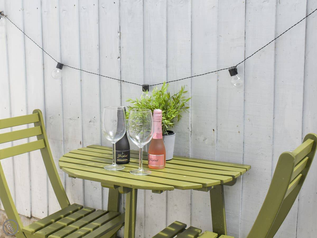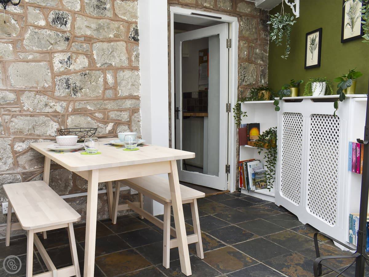It's a small cottage, right on a little lane opposite the castle ruins. You get a decent little patio garden out the back that's fully enclosed, which is handy.