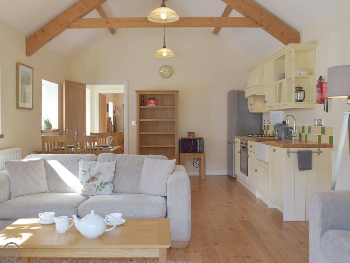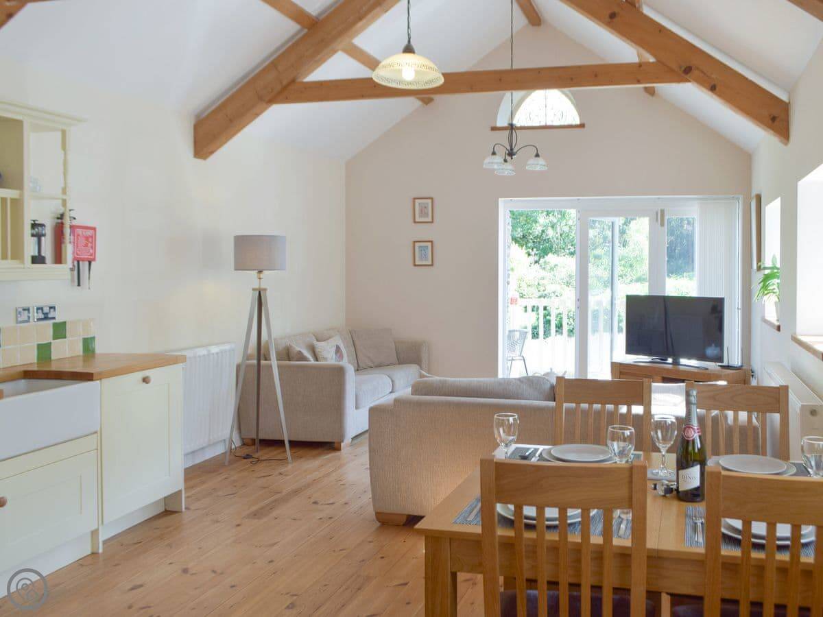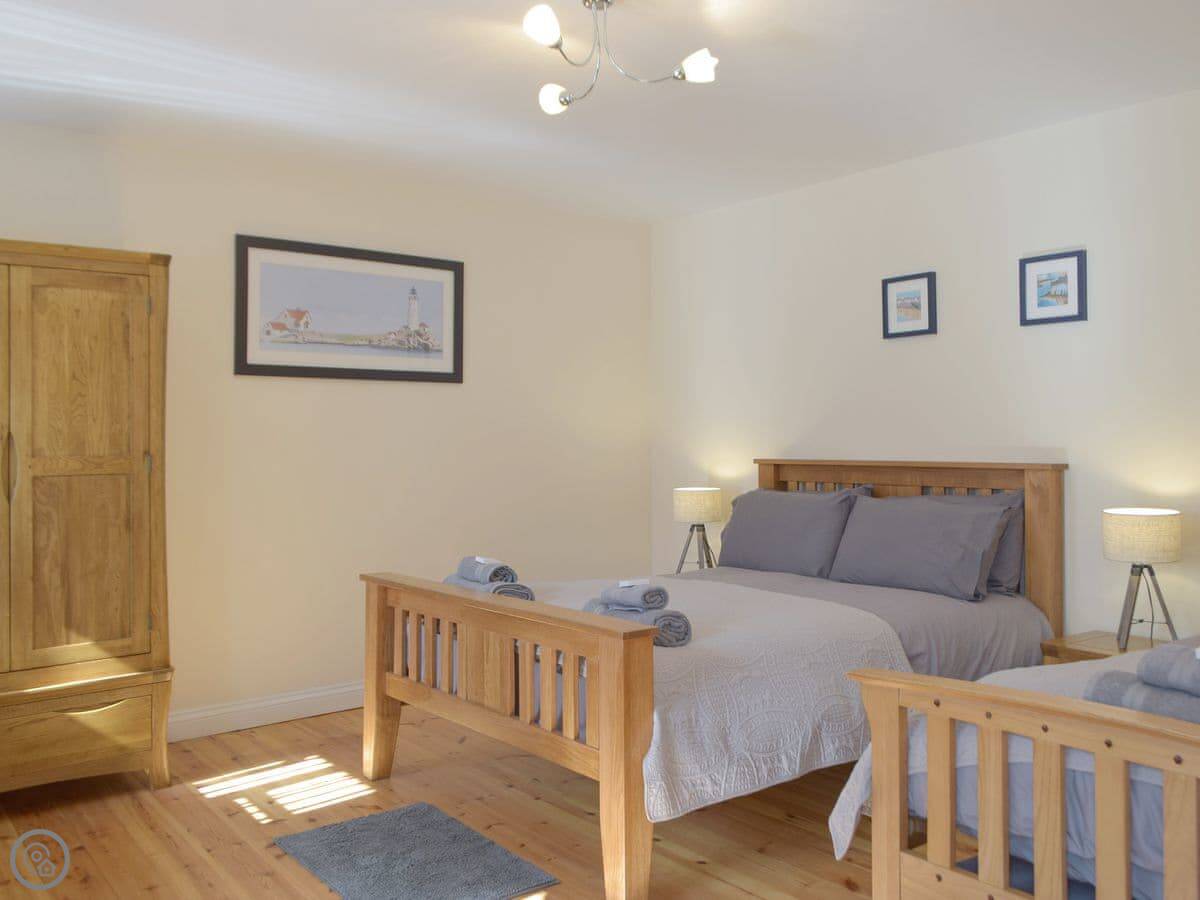 It sleeps four. There’s one bedroom with a king-size and a set of bunk beds, and one bathroom with a wet room shower. It’s got a 4 Star rating, which means it’s well-equipped and comfortable. The whole place is on one level, with a ramp to the front door, so it works well if you have mobility issues or use a wheelchair.