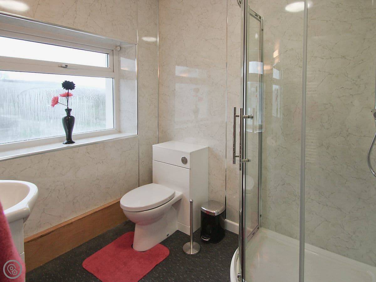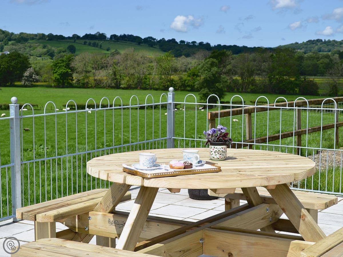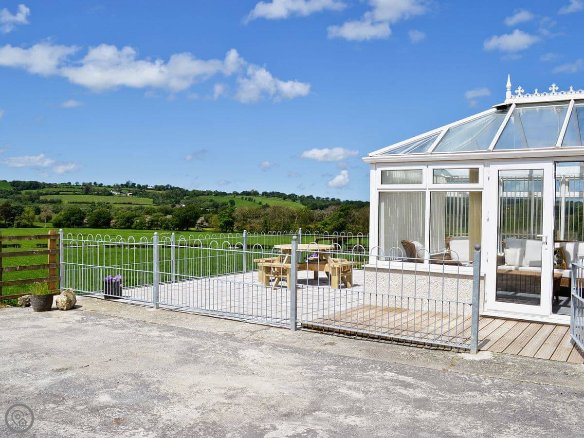 The kitchen has what you need. There's a conservatory off it with French doors, which gets the sun. Outside is a decked area with a table, chairs and a BBQ. You can park three cars off the road. You can store bikes in our barn if you bring them.