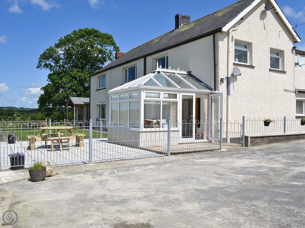 Cob Cottage is on our farm, Godre Garth, just outside Llanddewi Brefi. It's attached to our house, but you'll have your own space. The garden looks out over the fields and down to the River Teify, so it's quiet. We're a working sheep farm, so you'll see the flock.