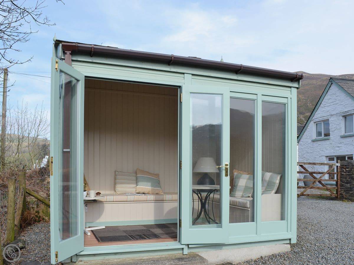 Outside, there's a separate heated garden room with light and power. The garden is fenced and has good views. There is parking.