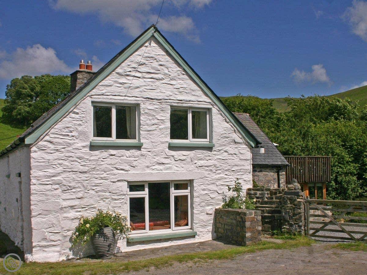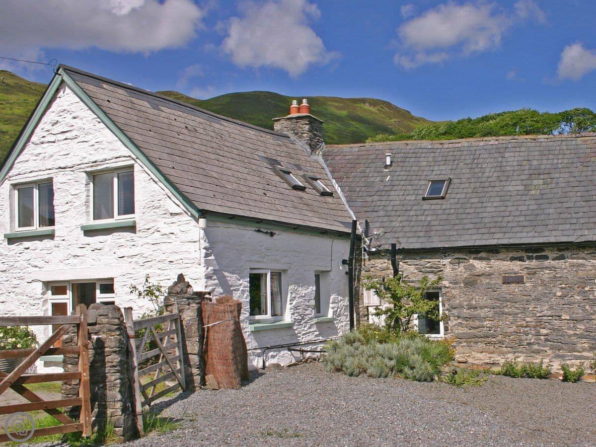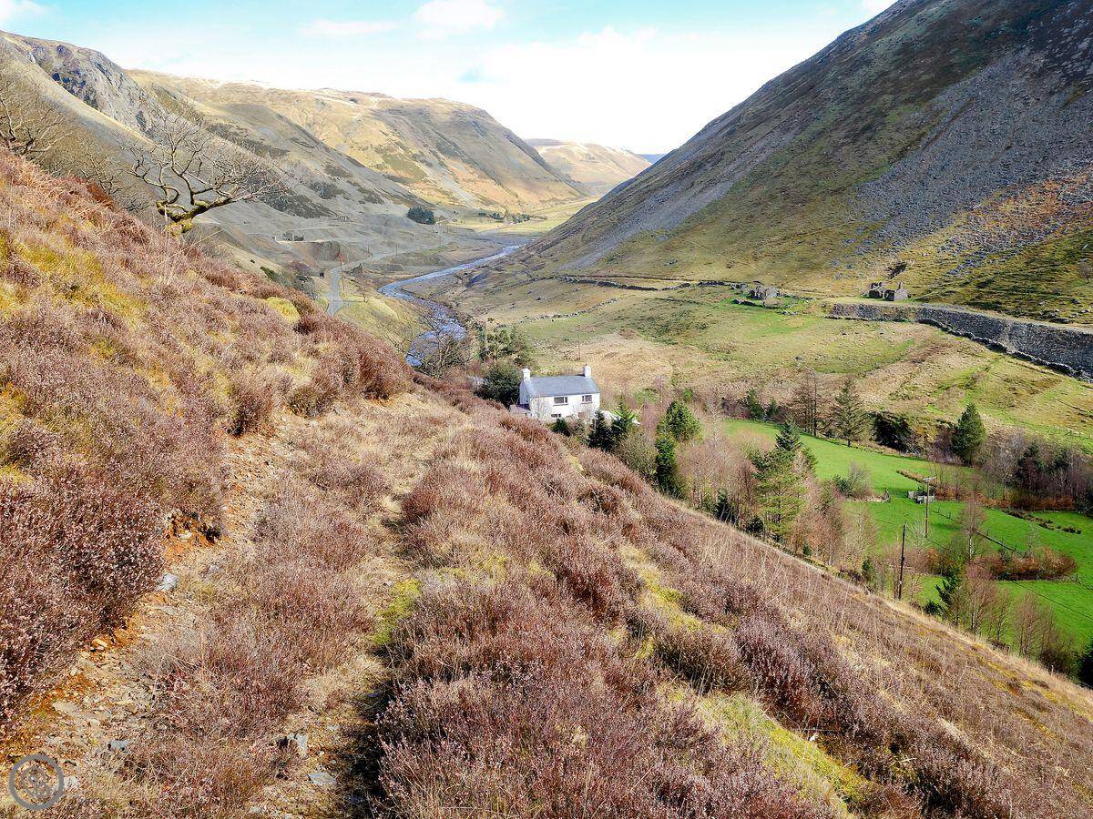 Ty Mari is in Cwmystwyth in mid Wales. It's an old stone cottage that's about two hundred years old, end of terrace. It sleeps six, with three bedrooms upstairs and one bathroom. You can book it with the cottage next door, Penroc, if you need space for ten people. There's a soundproof door between them.