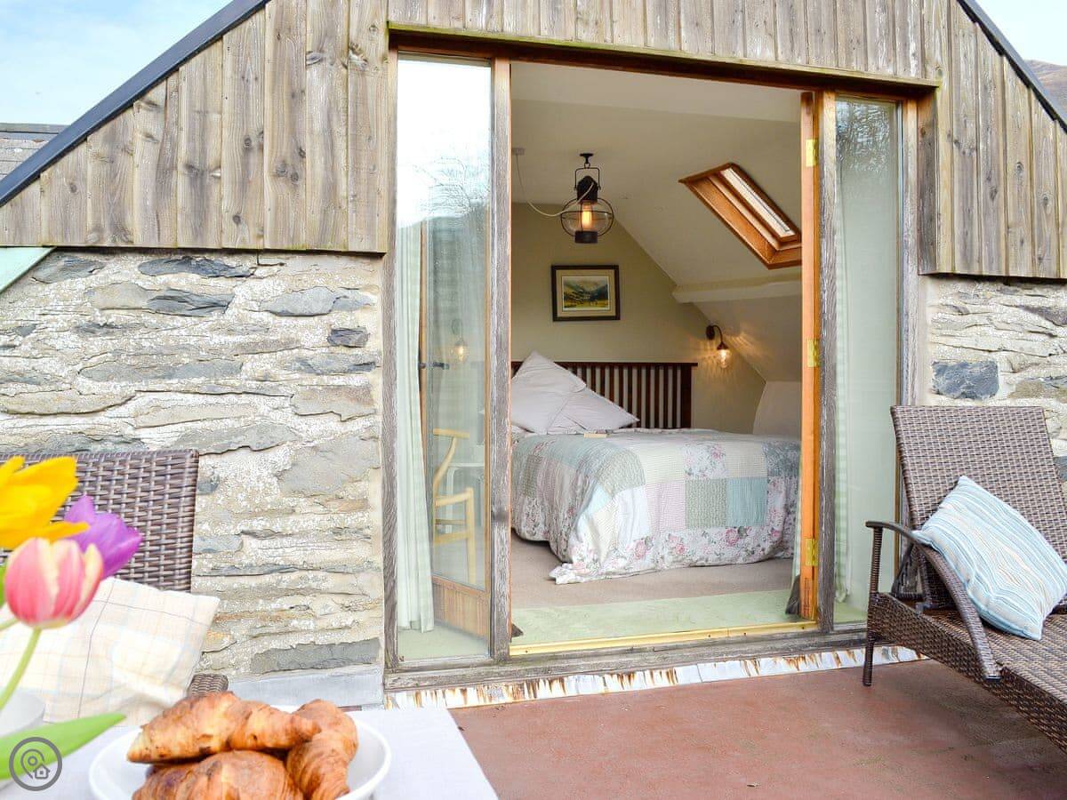 Outside, there's a bit of garden shared with Ty Mari if it's booked, with a bench and a BBQ. You can park right there. The garden fence isn't dog-proof though, so if you bring pets you'd need to keep an eye on them.