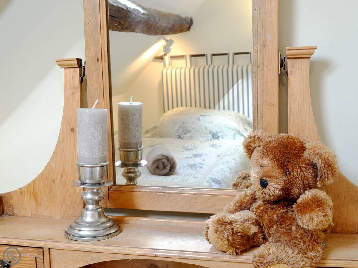 It sleeps four. Two bedrooms upstairs, one bathroom downstairs. It's got a 3 Star rating, which I think means it's comfortable and clean, but not brand new. There's a connecting door to the cottage next door, Ty Mari, if you need more space for a bigger group. You can book them together.