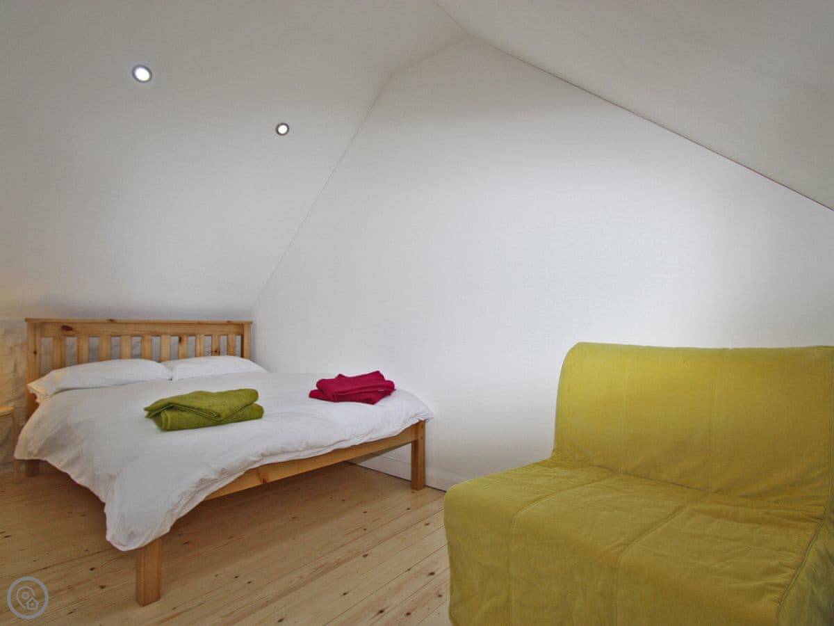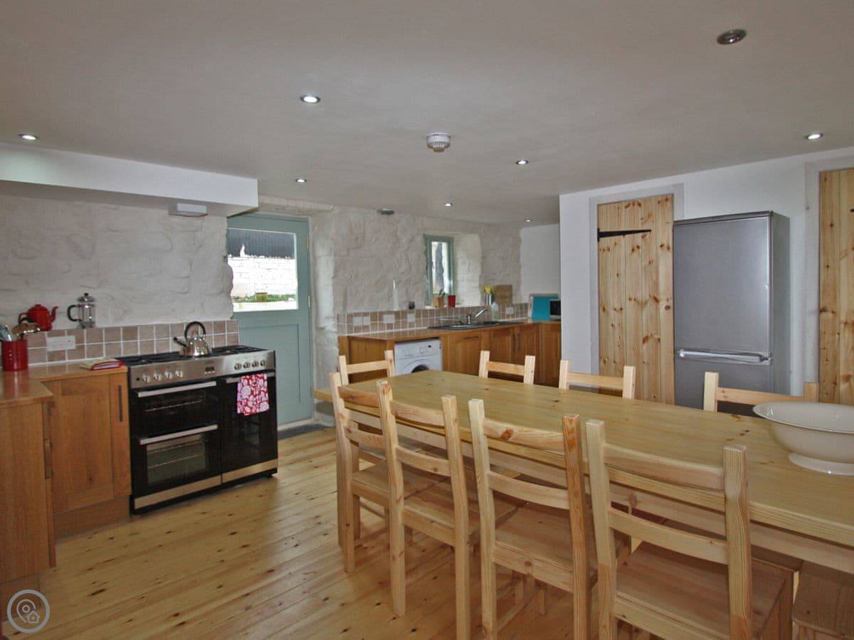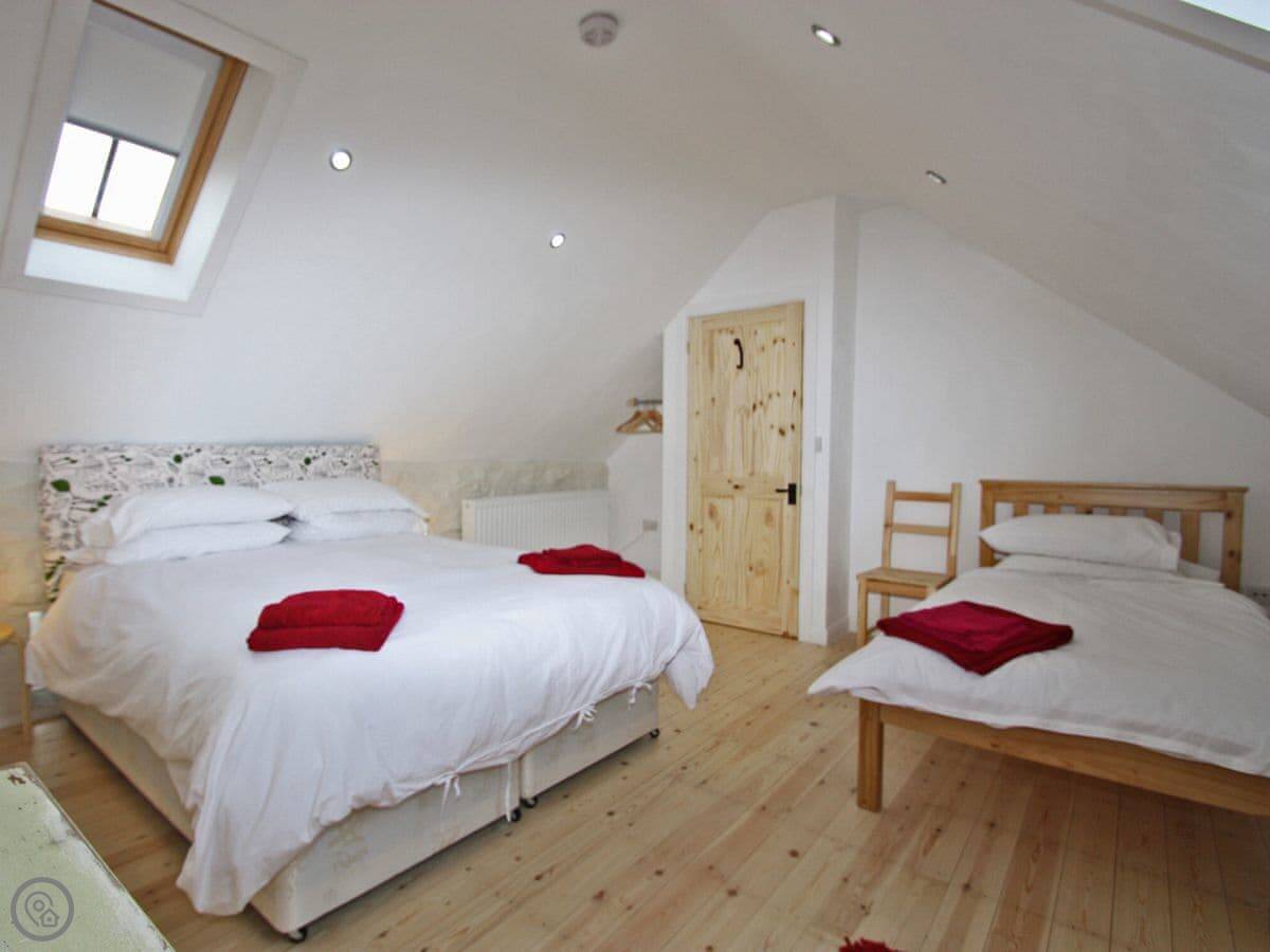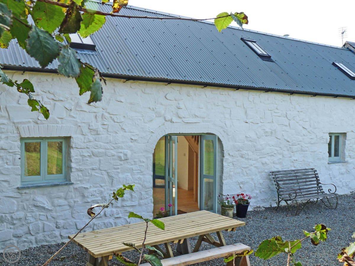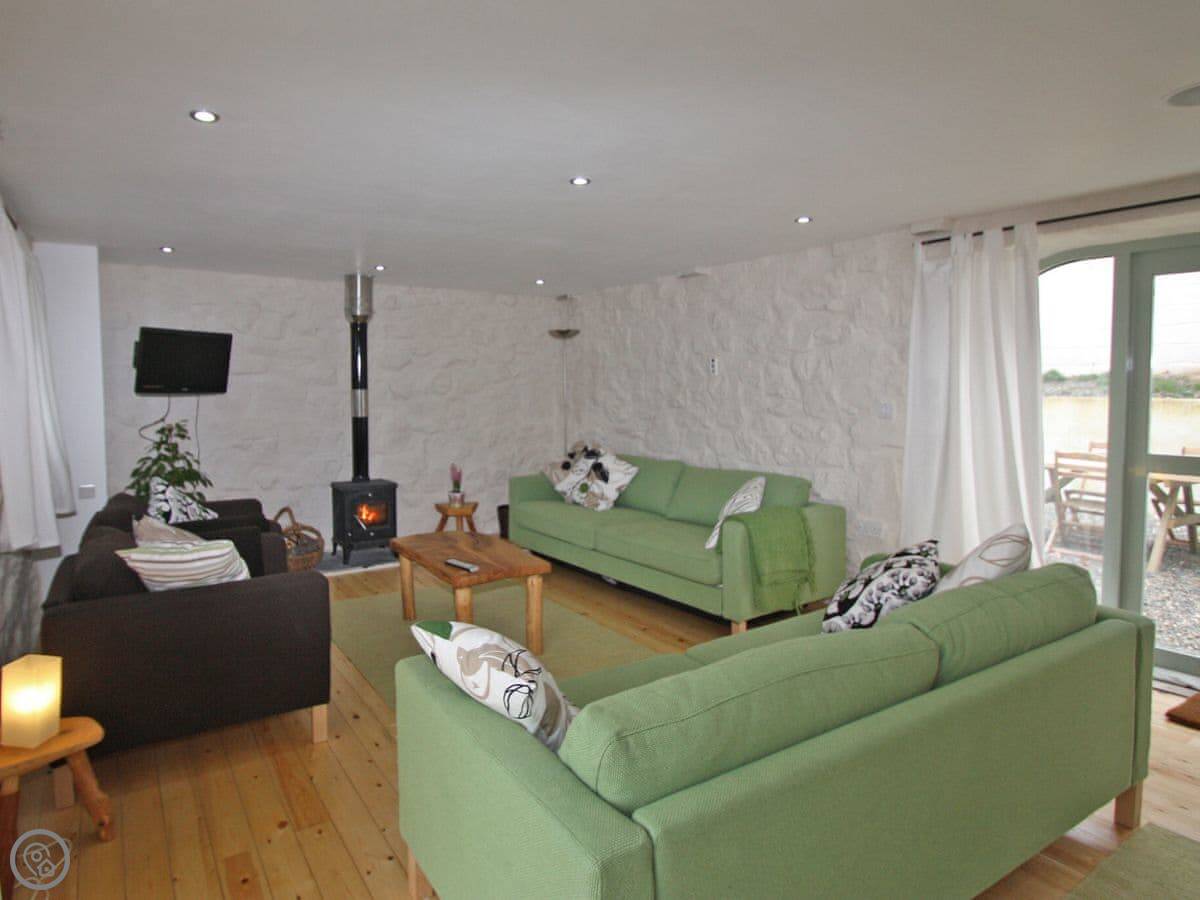 The Barn is on the headland in Talbenny, just outside Little Haven. It's about a mile from the sea. It's a converted stone barn, so the walls are thick. It sleeps eight, in three bedrooms. There are two bathrooms.