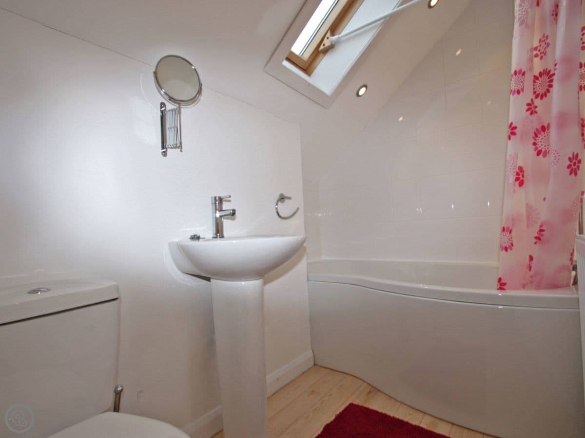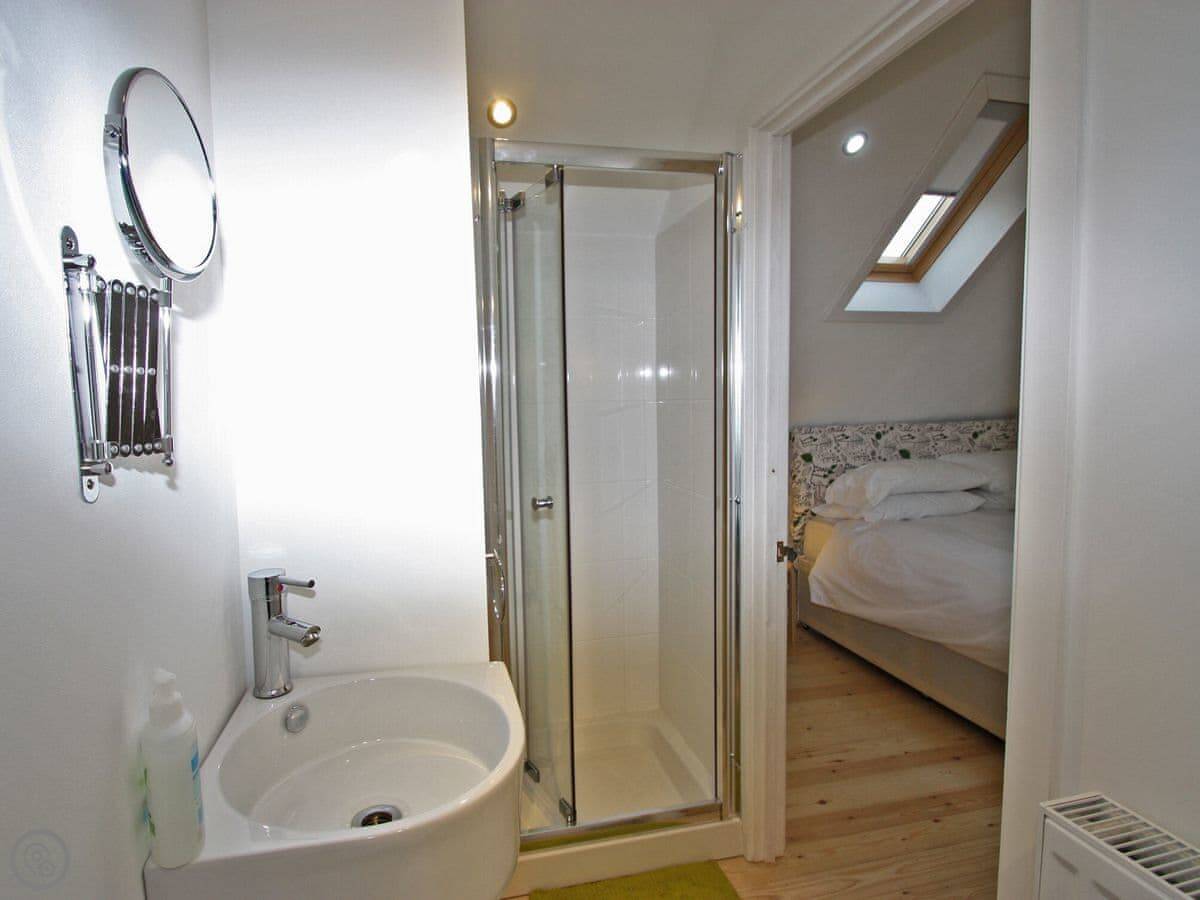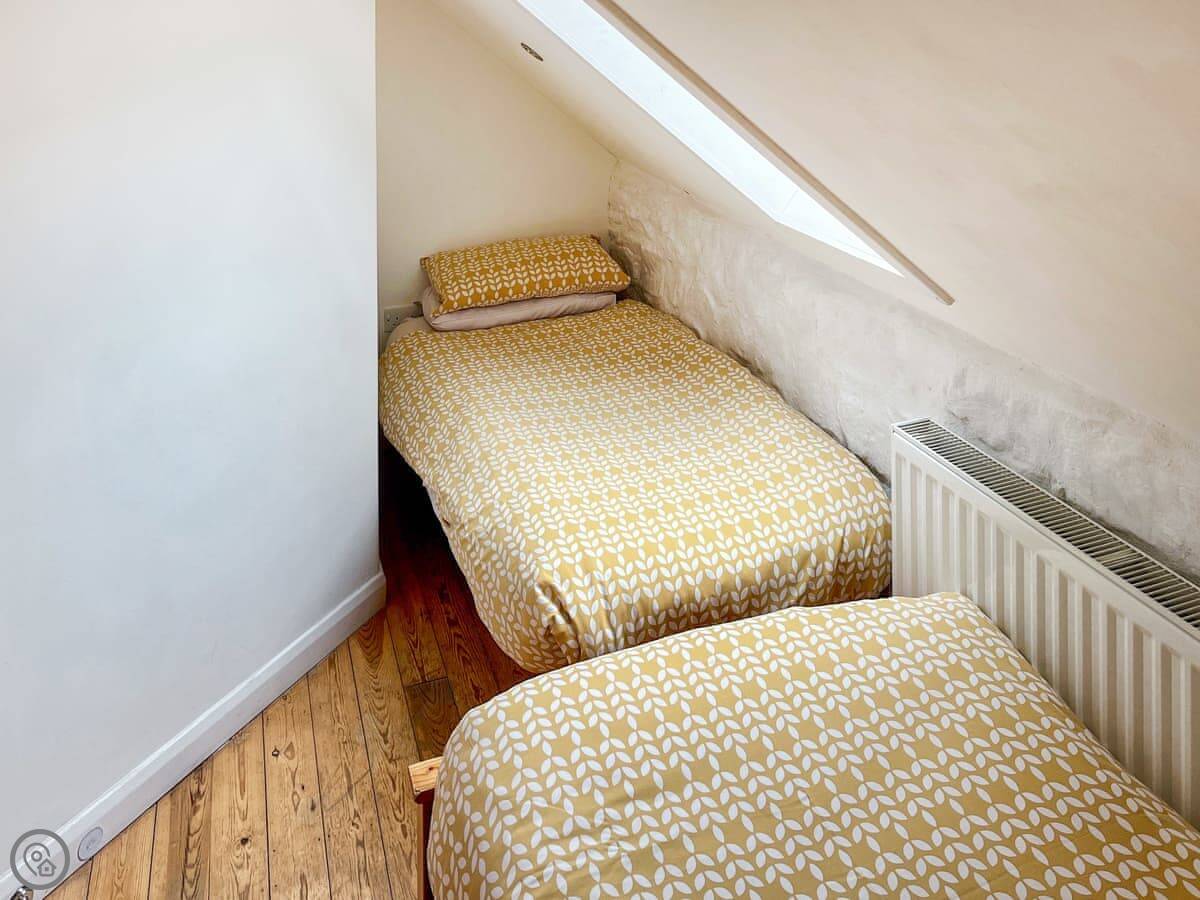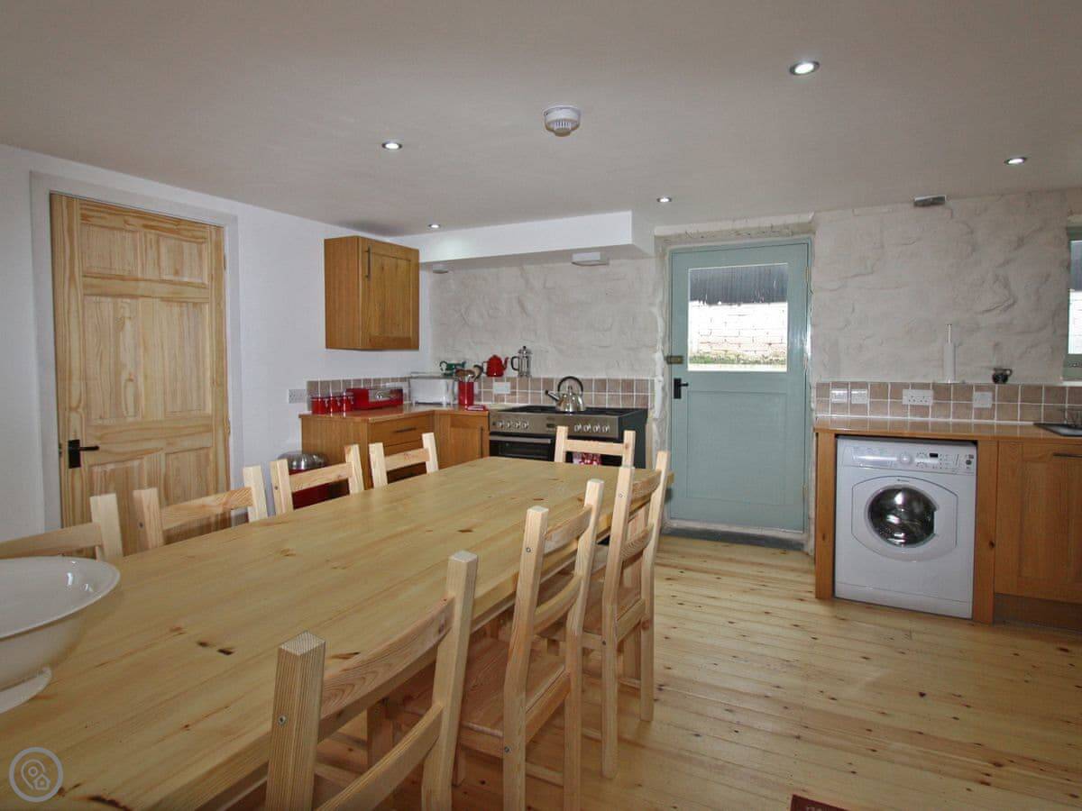 The Barn is on the headland in Talbenny, just outside Little Haven. It's about a mile from the sea. It's a converted stone barn, so the walls are thick. It sleeps eight, in three bedrooms. There are two bathrooms.