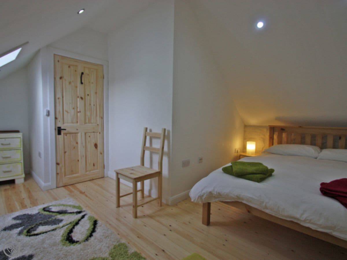 It's a 4 Star place, which means it's well done and comfortable. There's underfloor heating from an air source heat pump, and solar panels. The water is from a spring, filtered at the tap. Some of the furniture is handmade or upcycled.