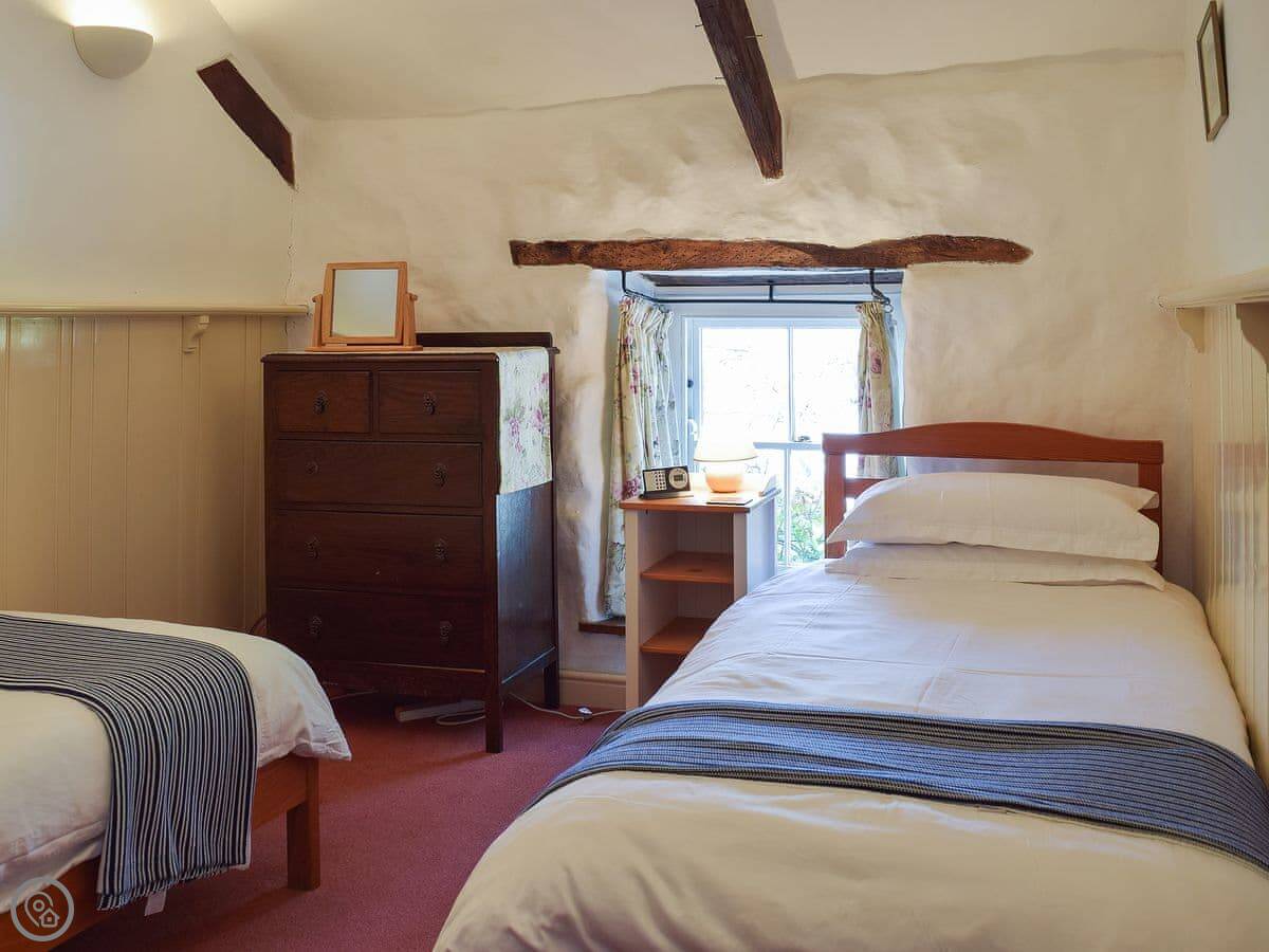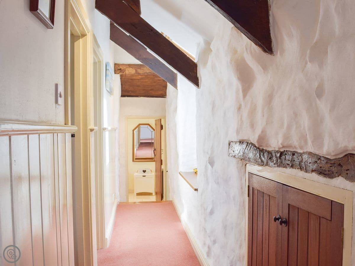 Just a note on the stairs inside. They're not all in one flight. You go up from the kitchen a couple of steps to a utility room with the washing machine, then up another step to the main bathroom. Then three more steps up to the bedroom corridor. It's fine, just how an old place is built.