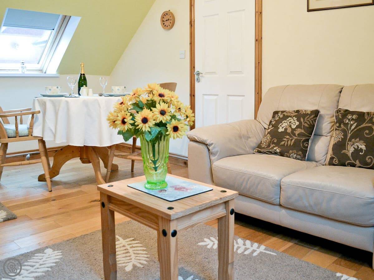 The recently built Cwrt Y Cadno sits above other housing on a winding mountainside road leading from the village of Trimsaran in Carmarthenshire. It overlooks the beautiful Gwendraith Valley and is just a few miles from the coast. Adjoining the owner’s property, this apartment, spread over two floors, boasts an impeccable finish and tasteful interior throughout. From under floor heating throughout and Wifi connection to the complementary Welsh welcome tray and bath products, the quality of provision is clear for all to appreciate. At the end of a busy day spent exploring the many delights the area has to offer, the comfortable living room, with its three generously proportioned sofas, is the perfect place to relax and unwind.