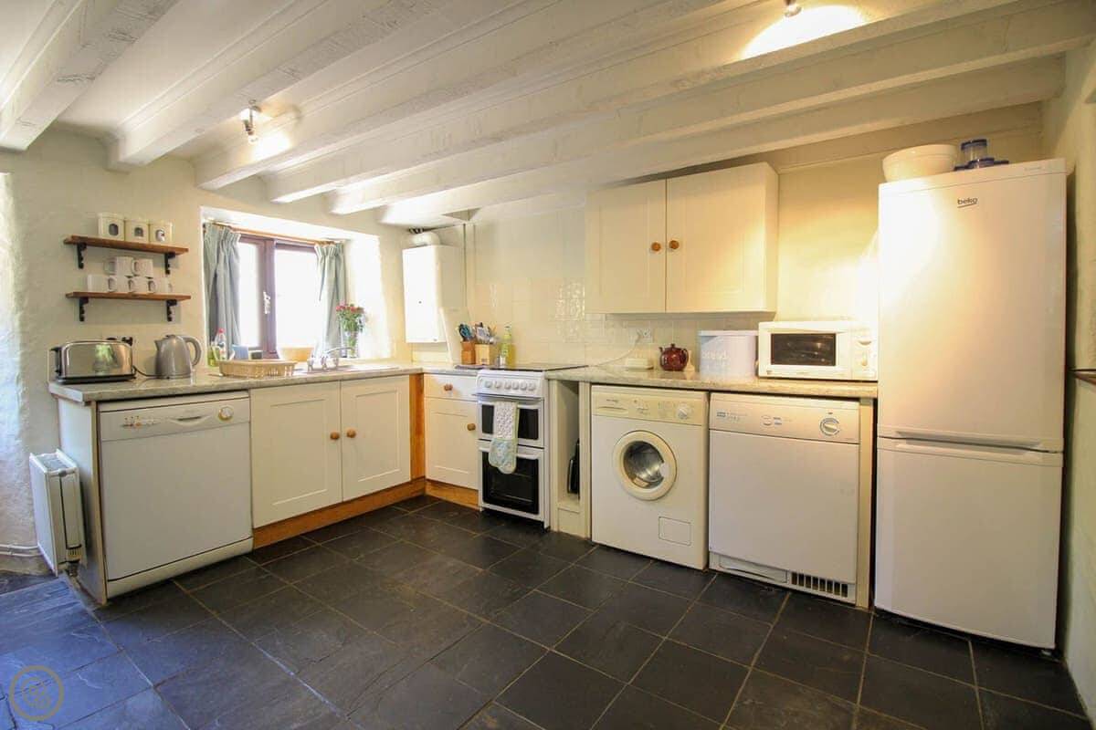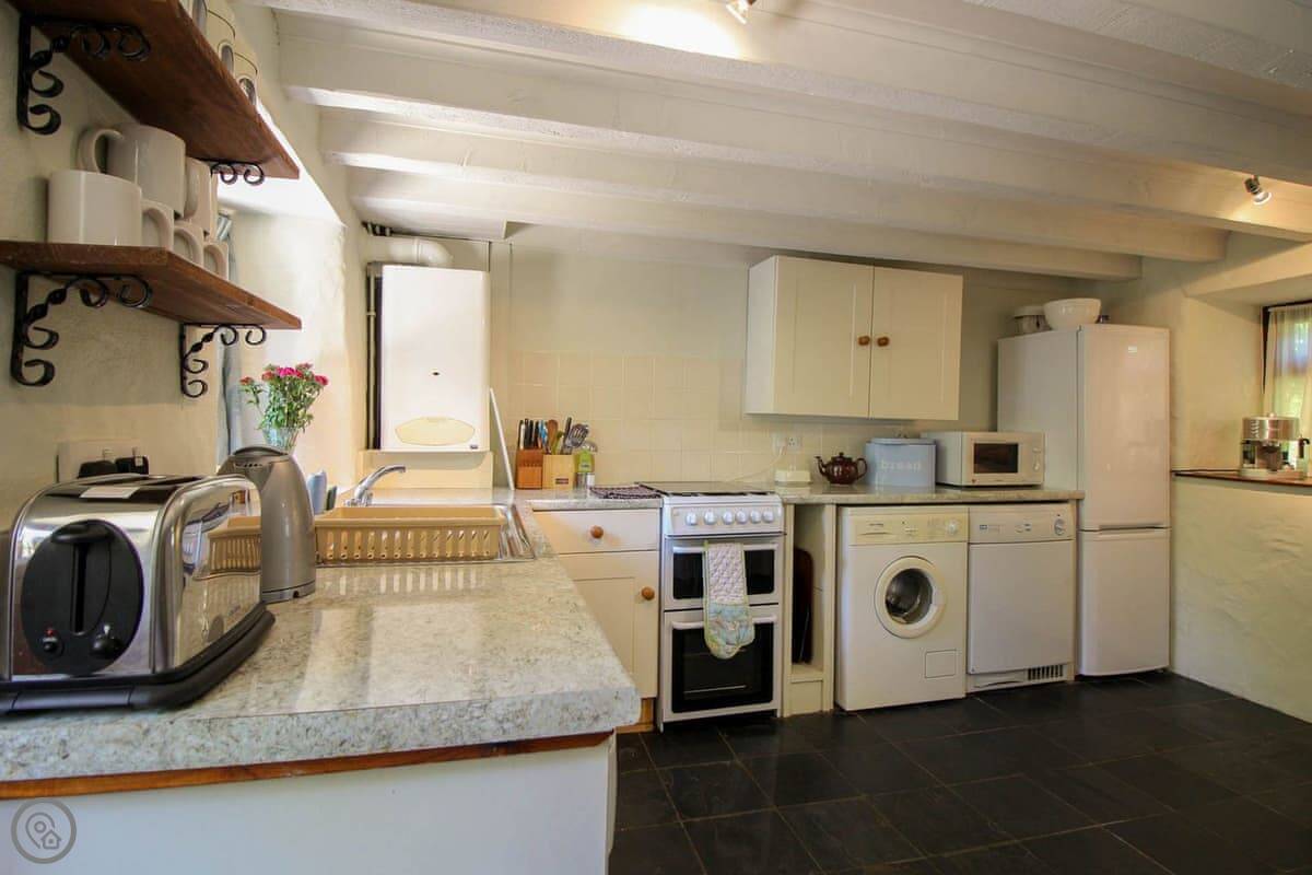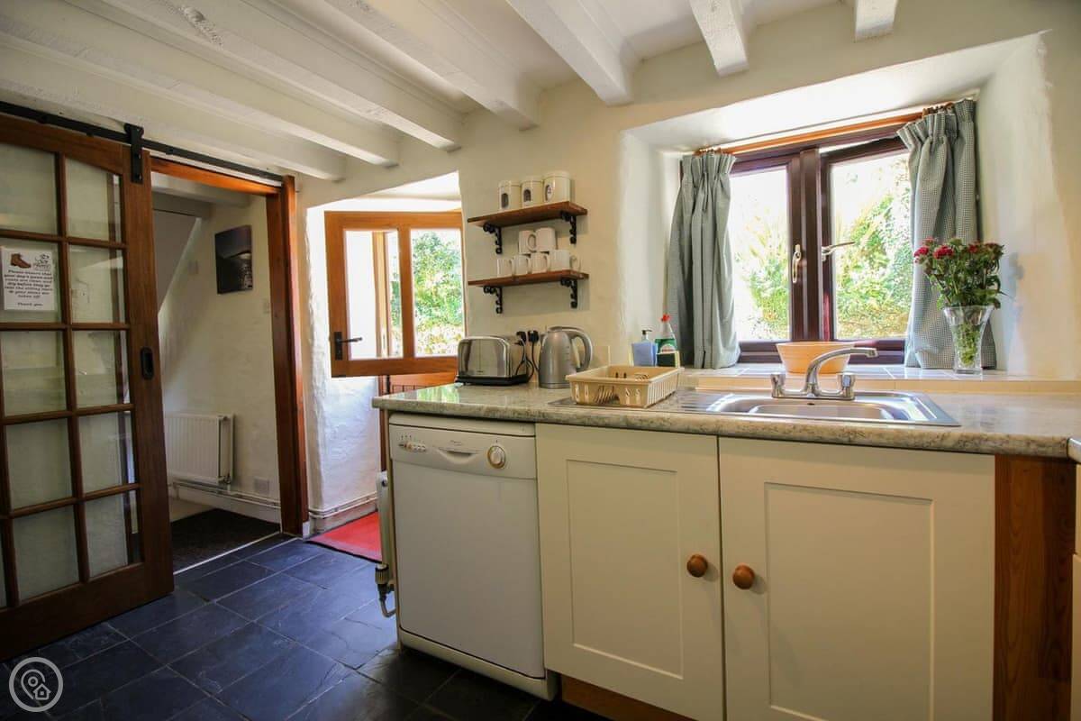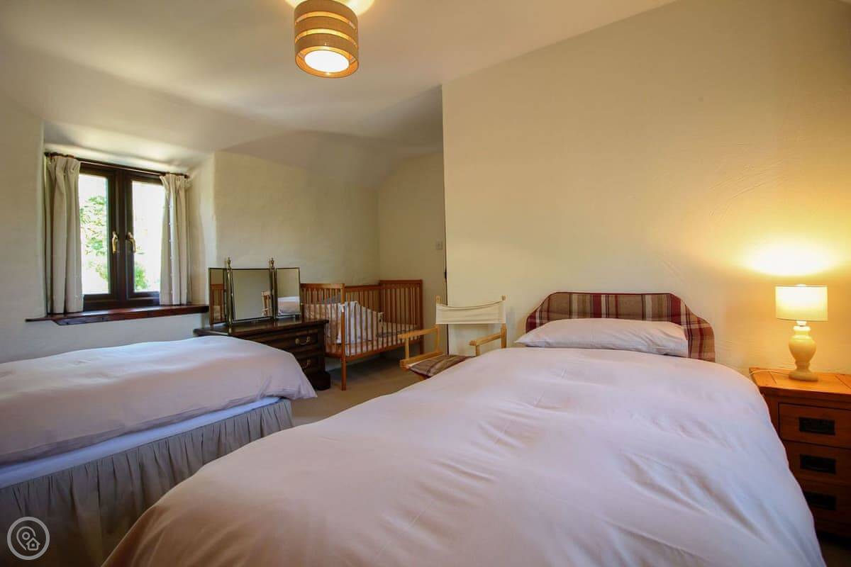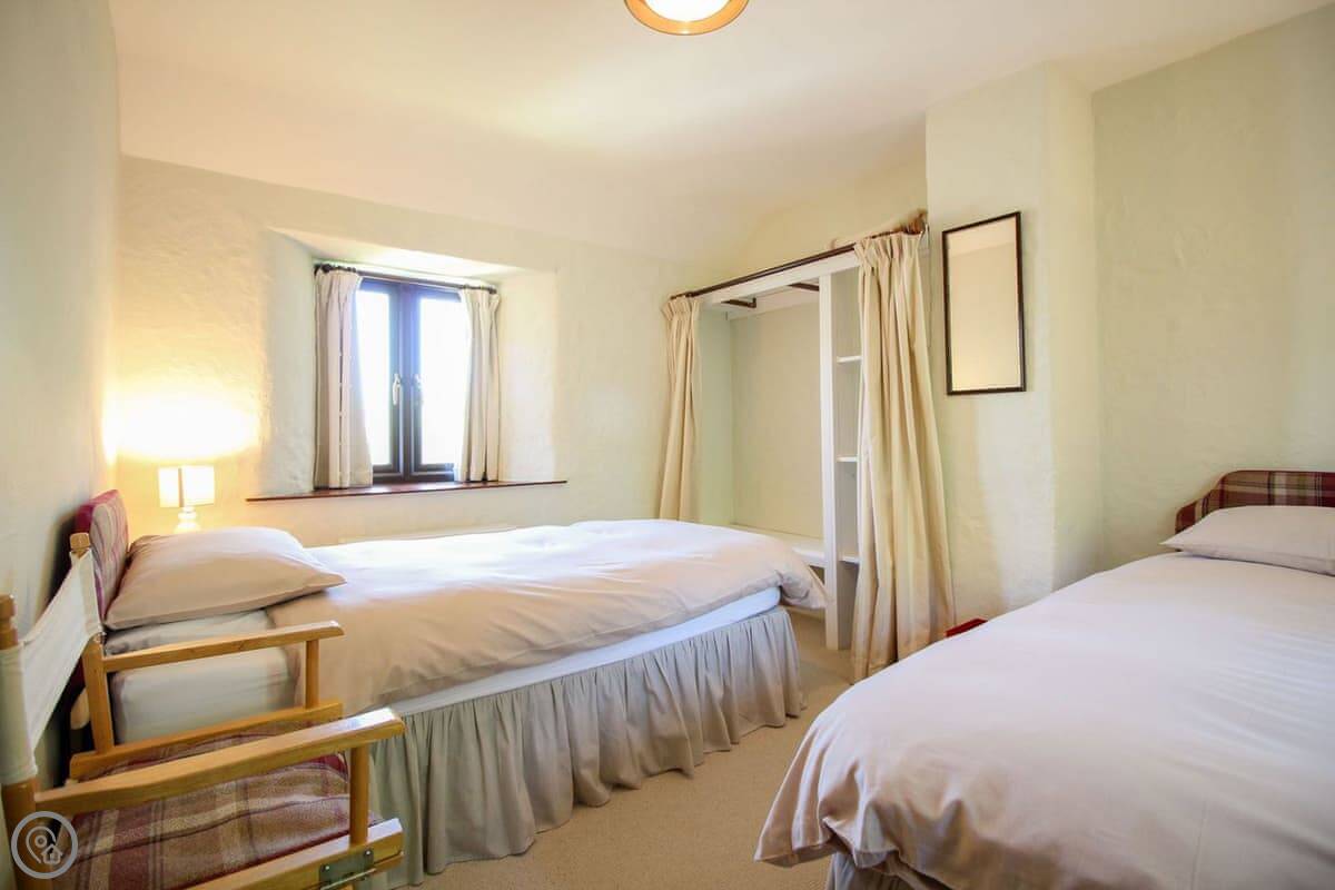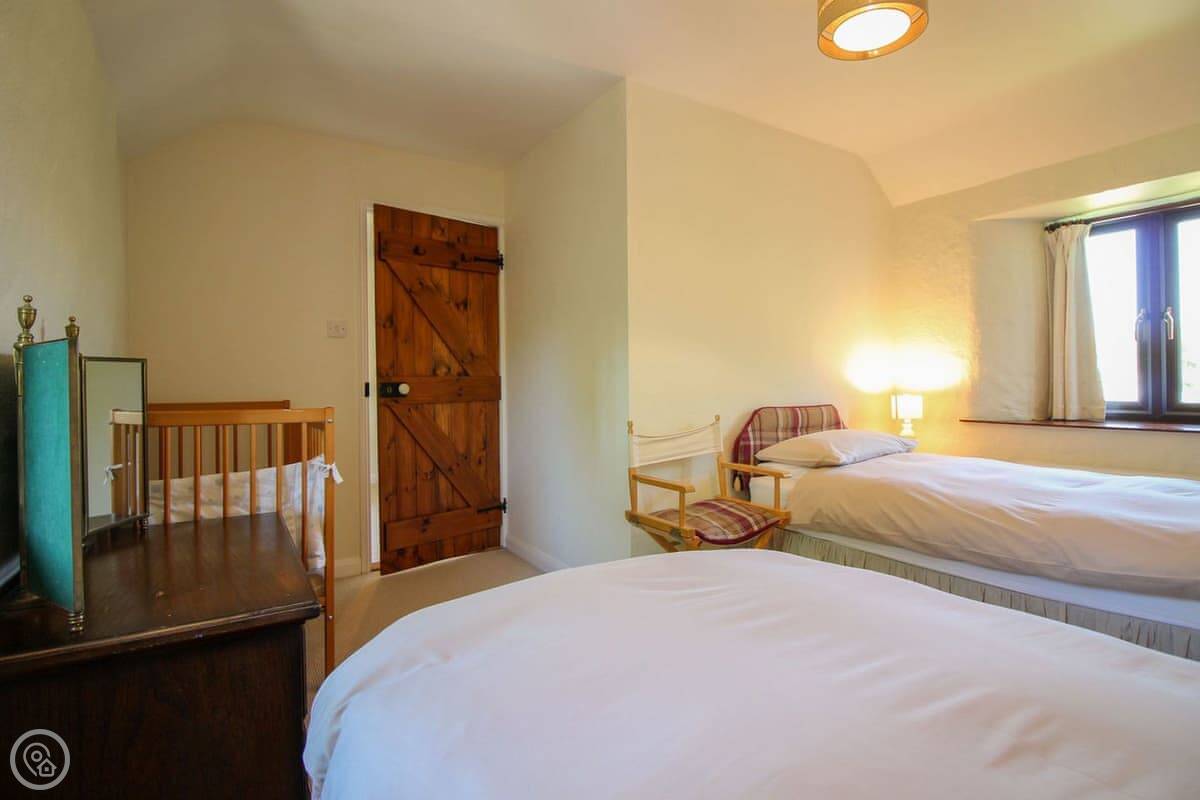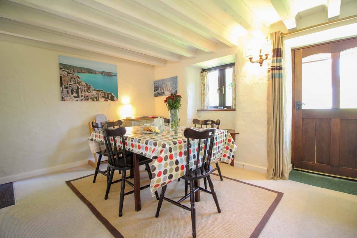 Ruby Farm Cottage nestles behind the main farmhouse and is a stunning traditional granite Cornish Cottage, surprisingly spacious inside with plenty of character features including exposed beams and a stone fireplace . Outside there is a terraced patio, complete with table, chairs and a barbecue, a hidden garden can be discovered up some granite steps which is a delightful spot to soak up the evening sunlight while enjoying a glass of wine. To the front of the main farmhouse is a communal area that is shared with the other two cottages at Ruby Farm, Kernyk cottage and Dingley cottage. There are various outdoor games that the family can enjoy & seats to relax on.
