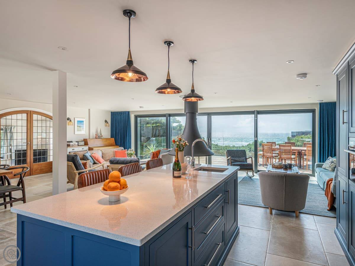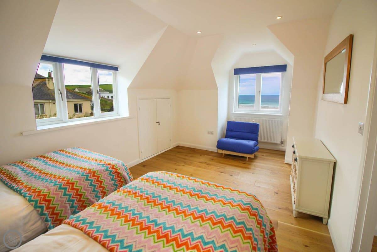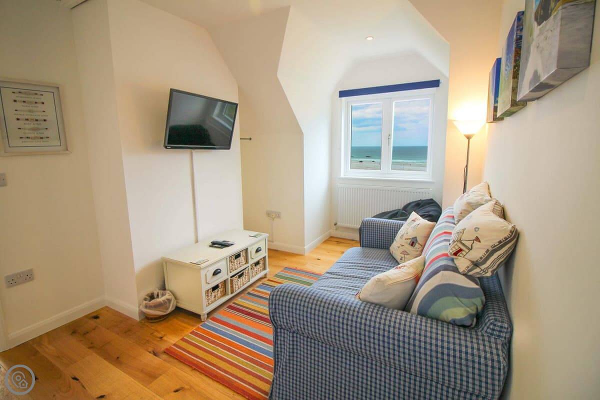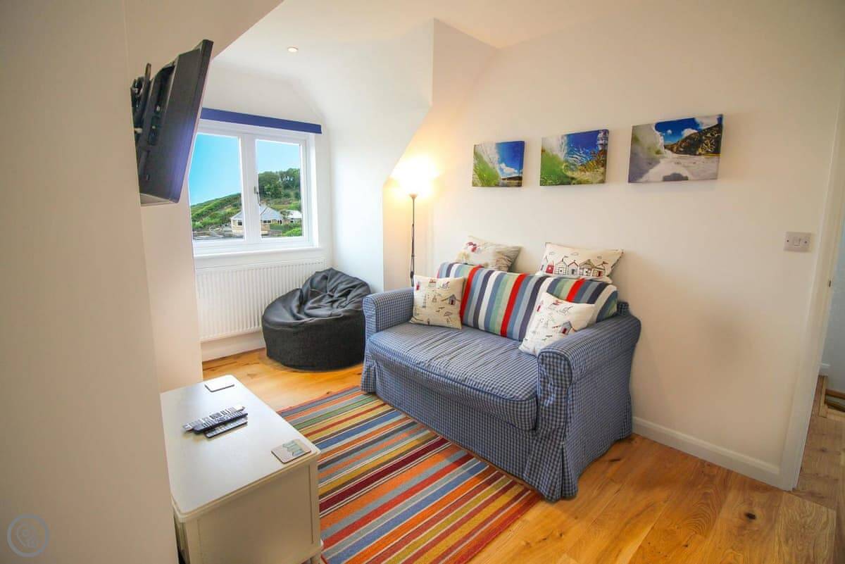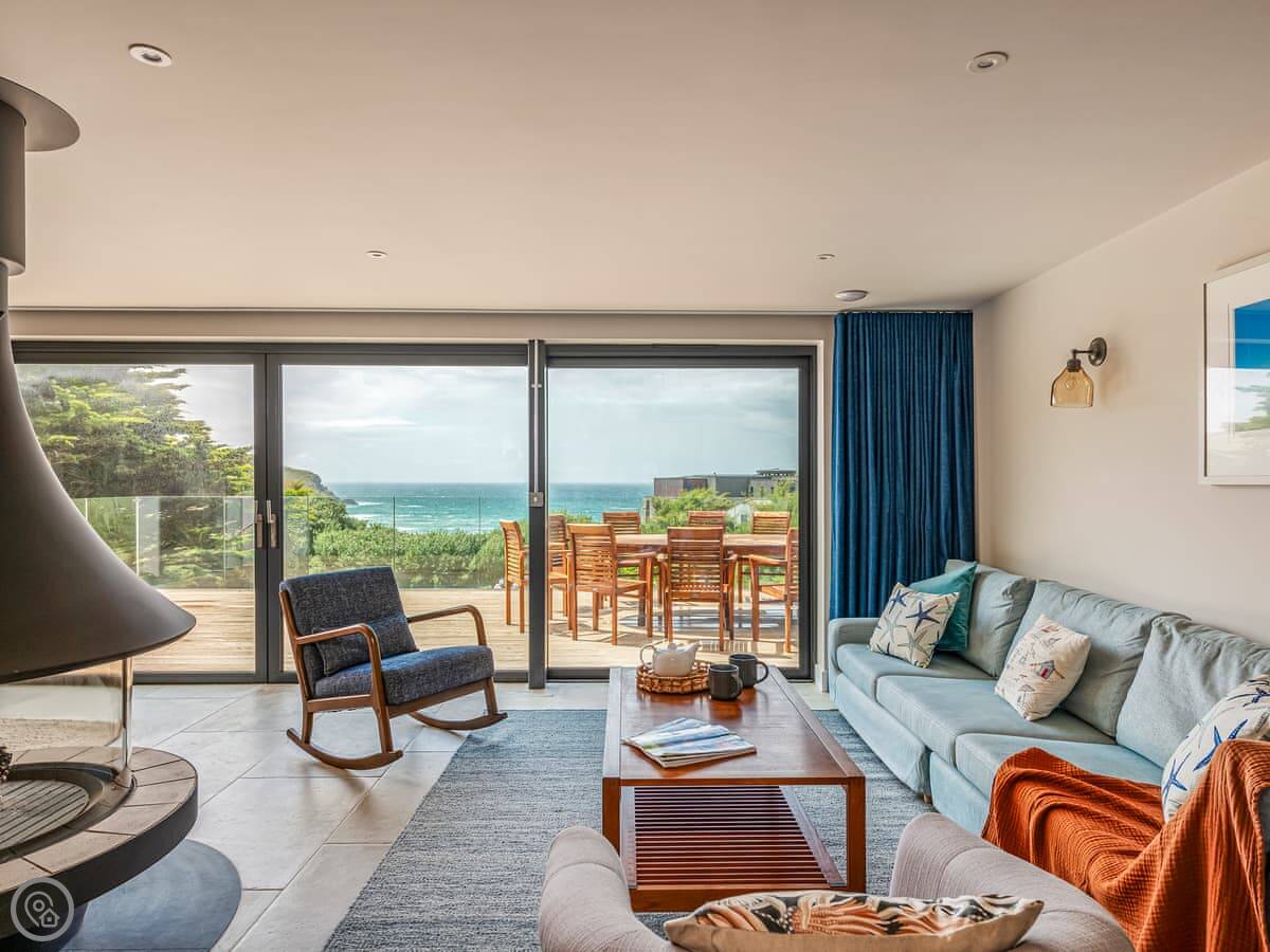 Blue Seas is in Mawgan Porth, right on the north coast of Cornwall. The main thing is the view. You look straight out over the beach and the sea.