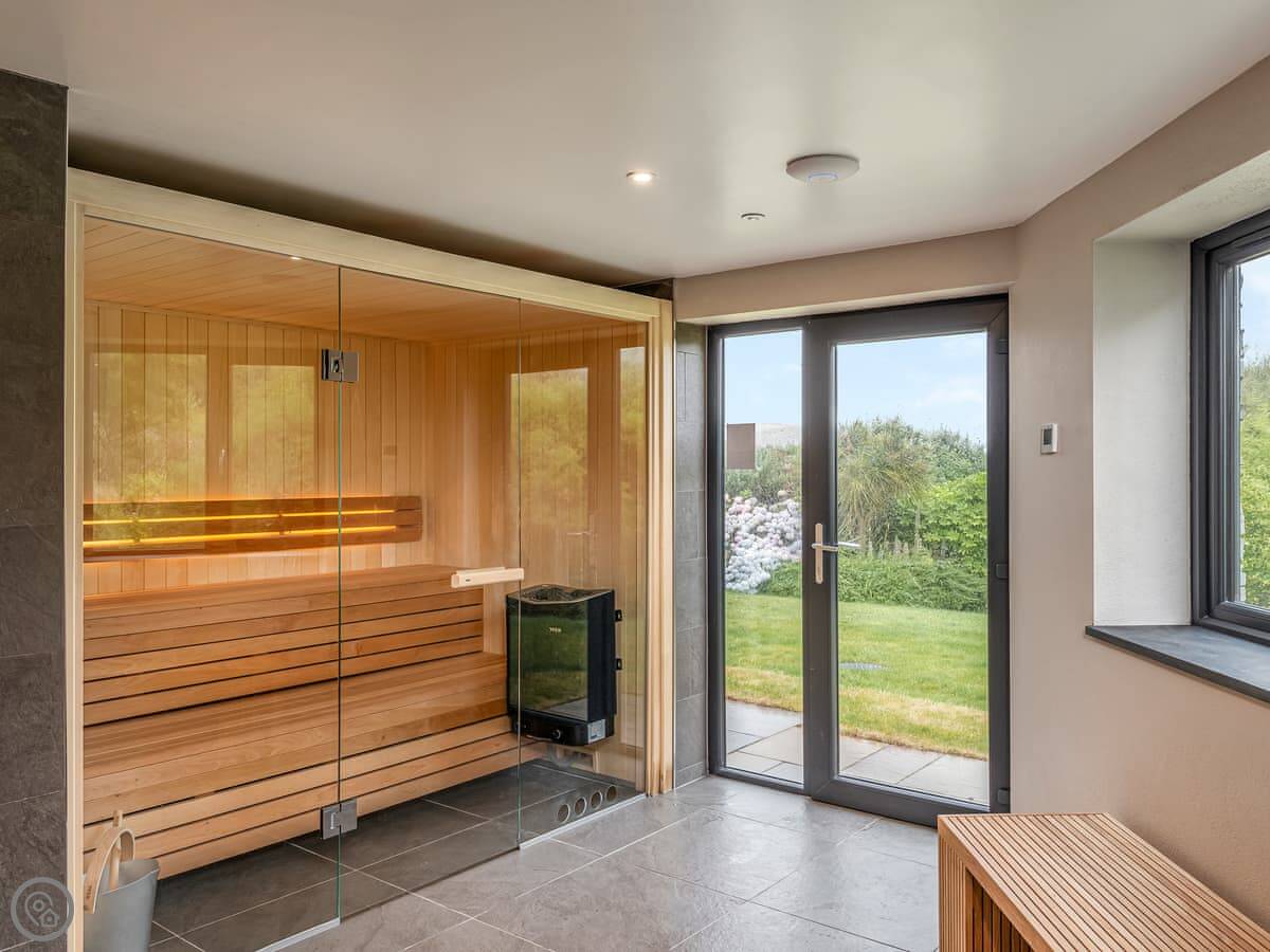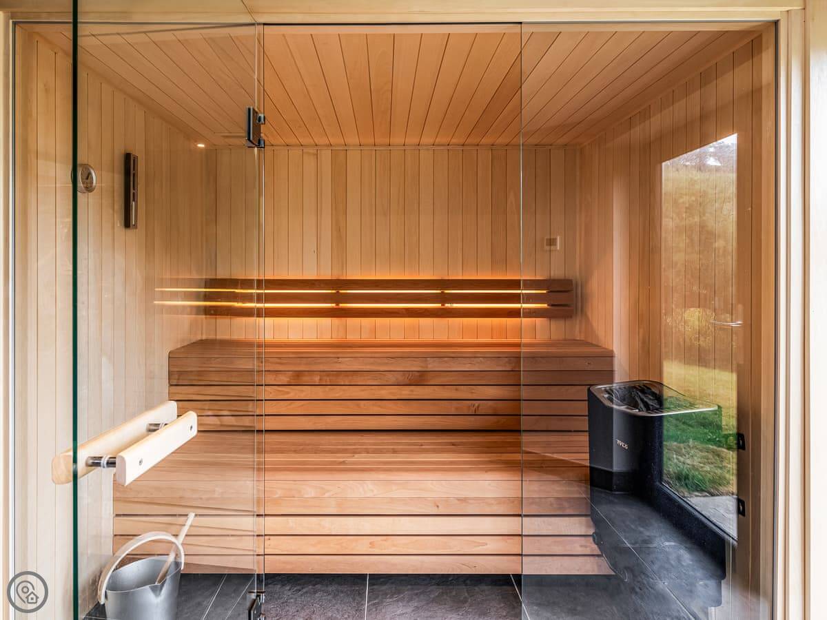 Around the back, separate from the house, there's a spa cabin with a sauna and an experiential shower. There's also an electric vehicle charger, which is free to use.