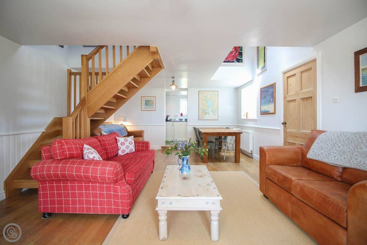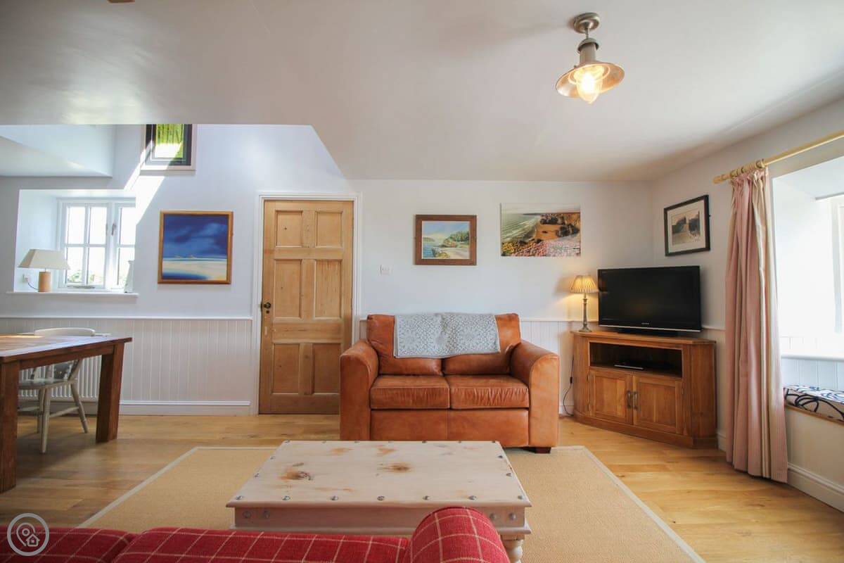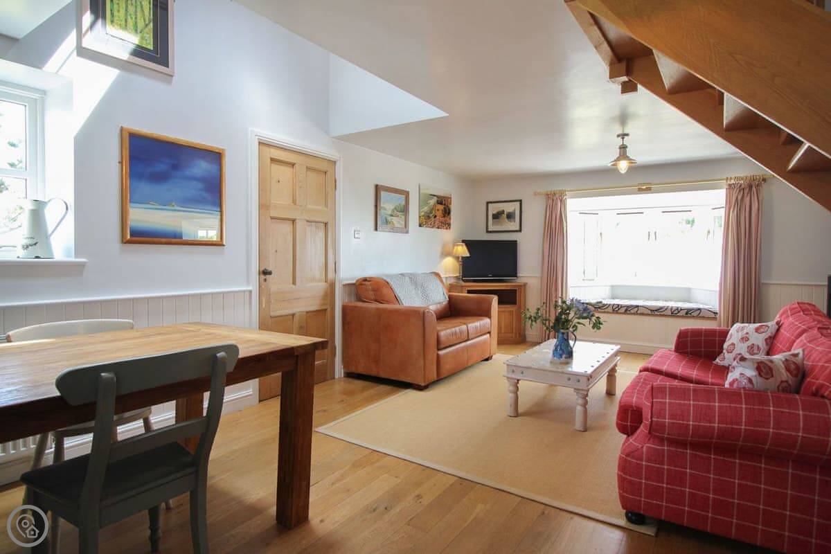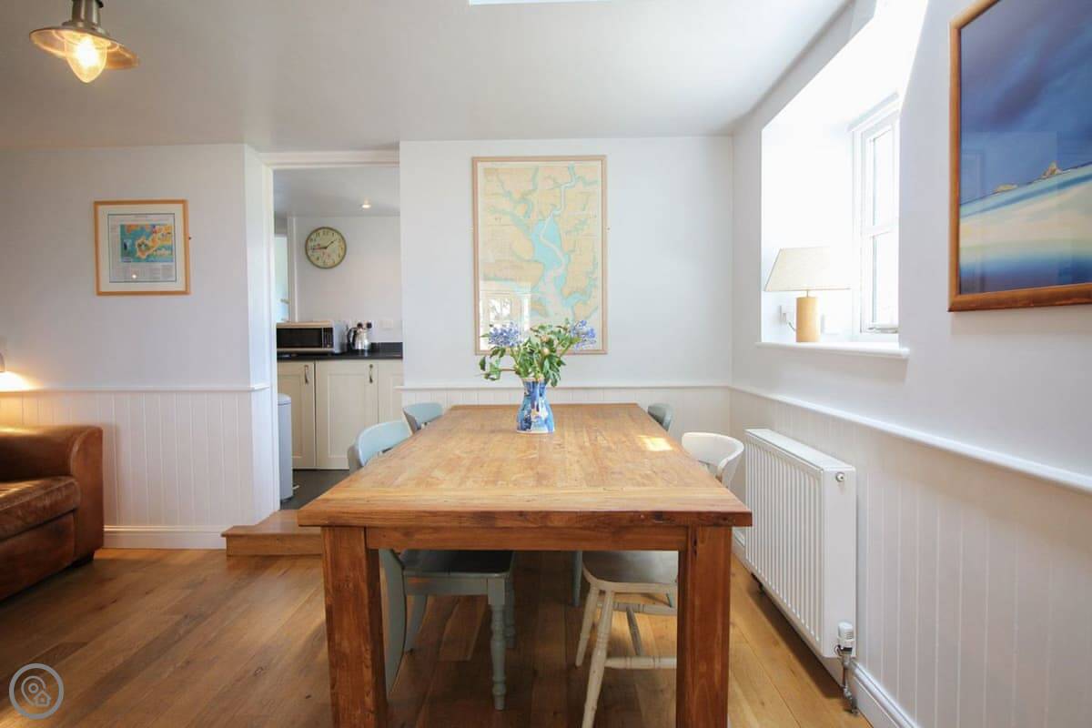 As you arrive, you’ll find private parking for two cars, ensuring convenience from the moment you step foot on this idyllic property. Inside, you’ll discover all the amenities necessary for a memorable holiday experience. The ground floor welcomes you with an inviting open plan living and dining area, featuring a charming window seat where you can bask in the mesmerizing views of the landscape. On a chilly evening sit around the log burner with a good book! Upstairs two spacious bedrooms and a well-appointed bathroom, offering comfort and relaxation after a day of exploring the peninsula’s hidden gems.