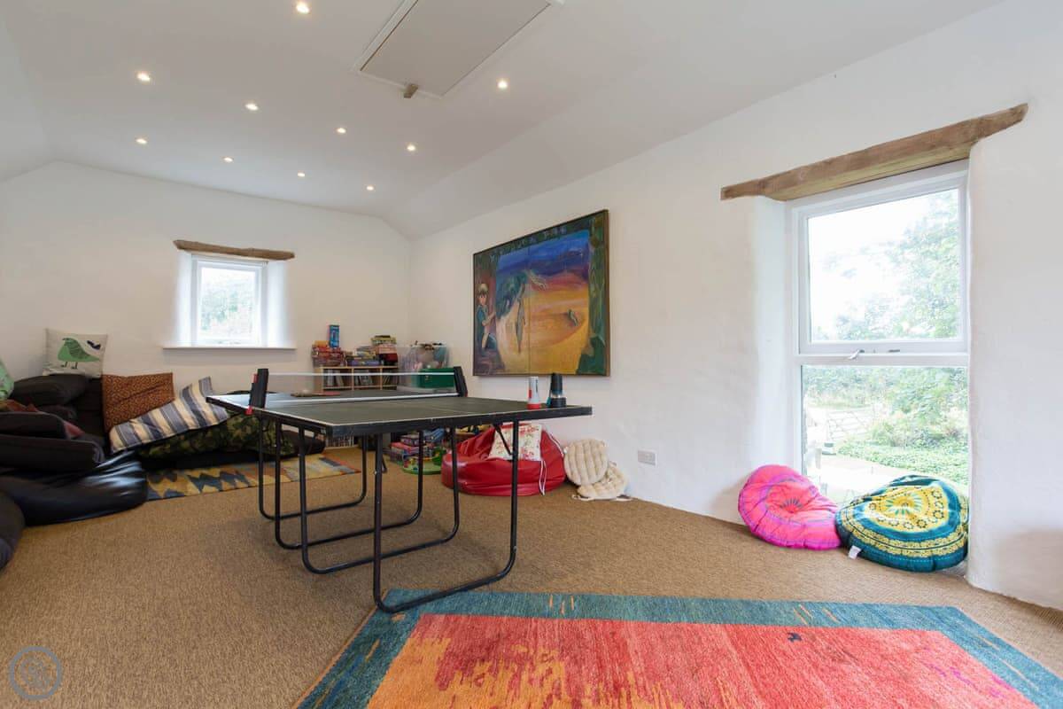 There is a shared, large games room complete with table tennis table, a TV for playing DVDs and a wood burner. This dog friendly property has easy going owners that own very friendly golden retrievers that are used to guests petting them. Many guests, particularly the kids, also enjoy helping to feed our dog friendly sheep, pigs, and poultry.