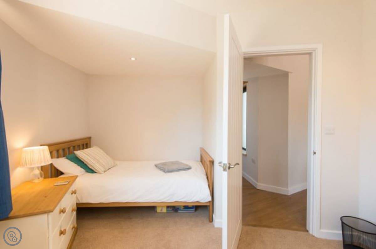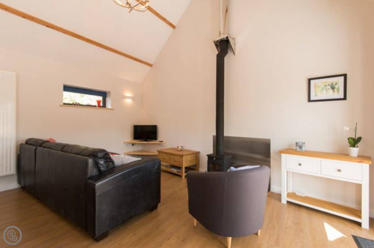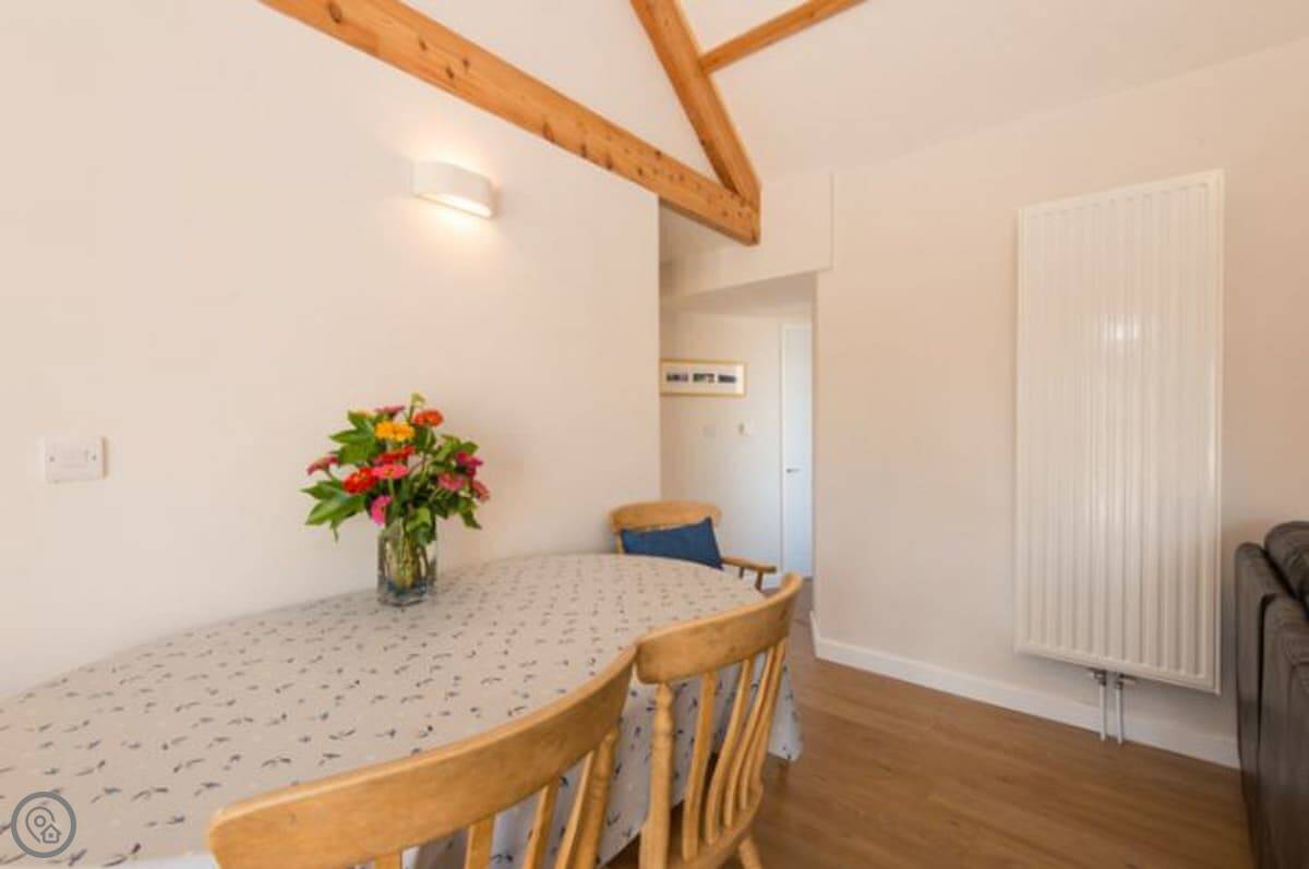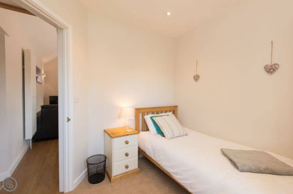 It sleeps four. Two bedrooms, one double and one with two single beds. There's one bathroom, which is a wet room on the ground floor. It's got a 4 Star rating, so it's comfortable and well-equipped.