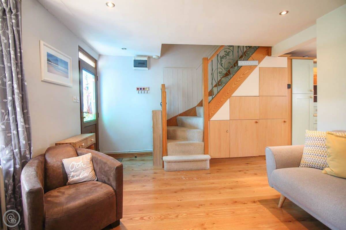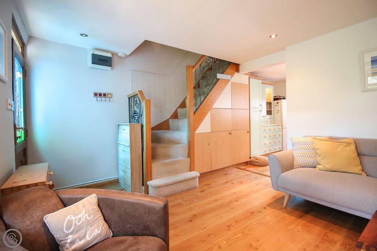 This is a stunning little cottage loaded with character features including a beautiful sun trap of a garden, ideal for an afternoon glass of wine, reading a book or admiring the glorious rural valley. Inside you are surrounded by thick cob walls, a bay window and a classic traditional fireplace, tastefully furnished and well equipped this cottage will ensure a magical holiday in the heart of Cornwall. The inviting living room, with wood burner and comfortable sofas is the perfect place to relax anytime of year. An open doorway leads through to the well-equipped kitchen/dining room where you’ll love cooking up a holiday feast! Stairs leading from the living room take you up to the first floor and two tastefully decorated bedrooms, one double with views over the quiet lane to the front of the property, and one twin room with views over the pretty back garden. Completing this charming property is a family bathroom on the first floor. There is a stairgate at the top of the stairs.