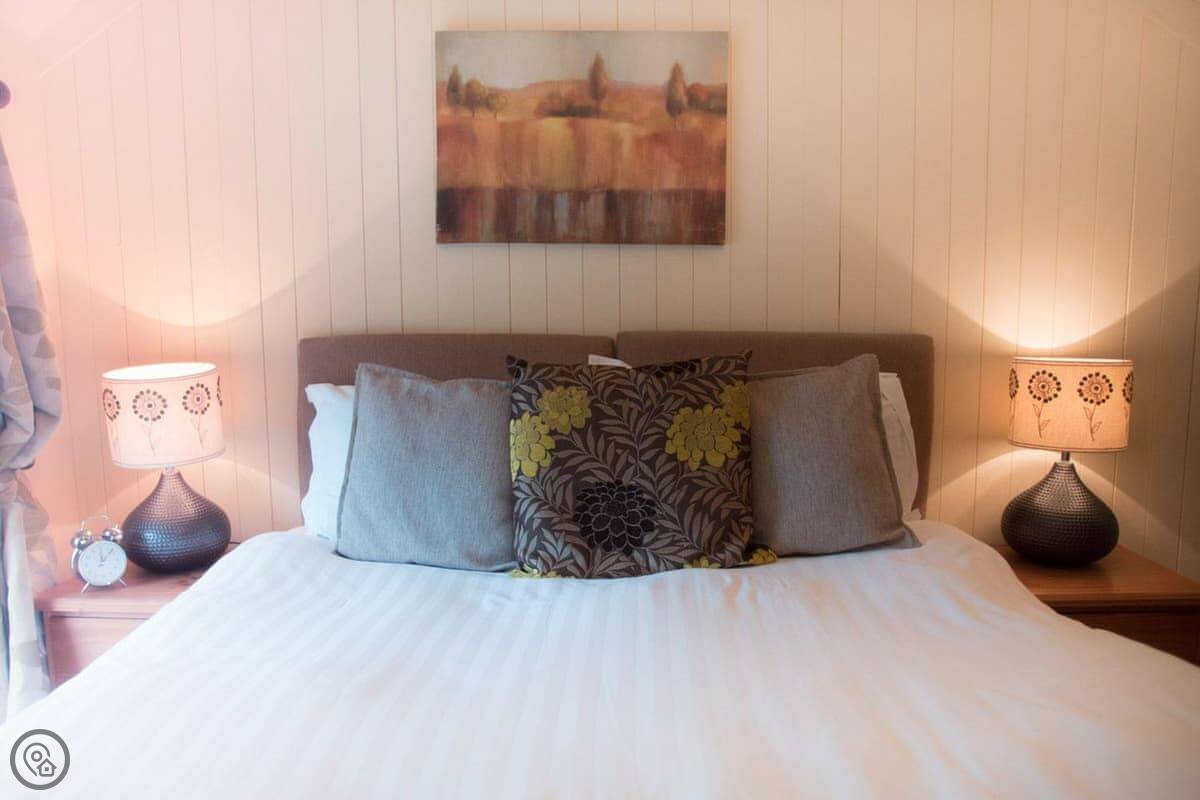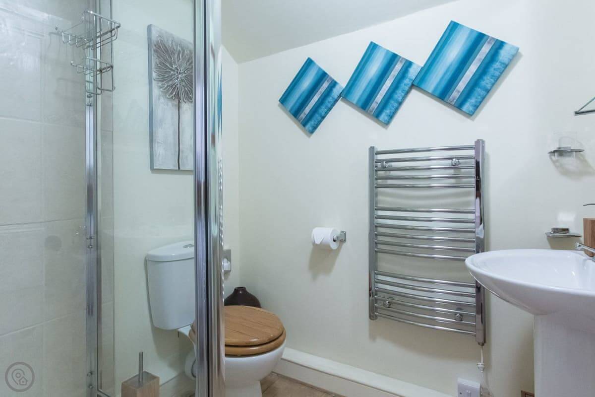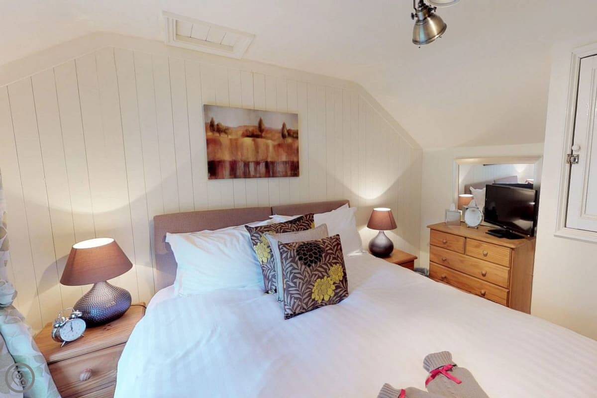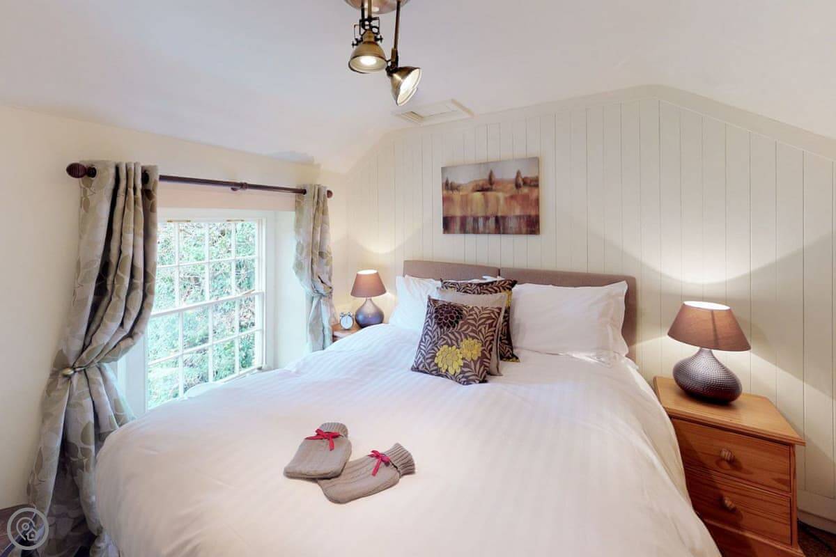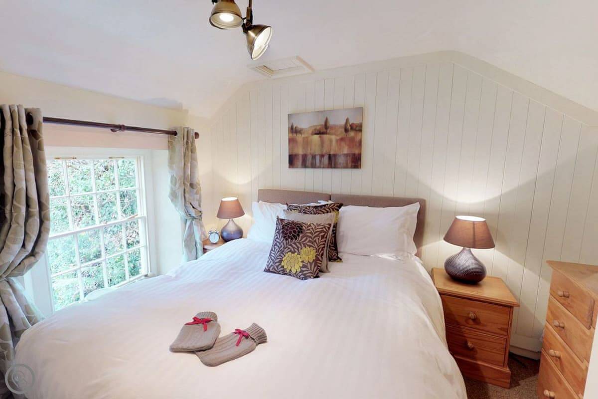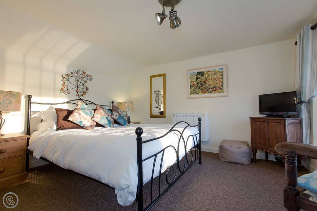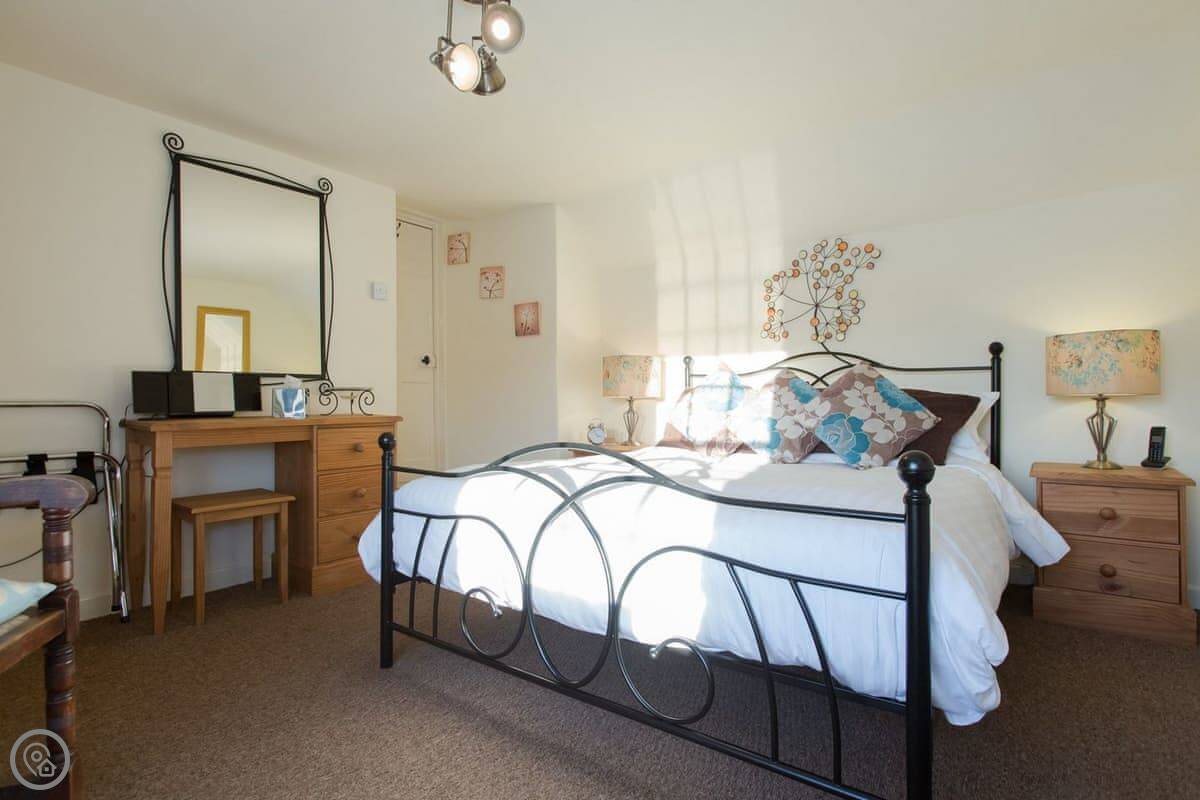 It sleeps four. Two bedrooms, both with kingsize beds, and two bathrooms. The main bedroom looks out over the river, which is nice. There's a bathroom with a big slipper bath where you can look at the view. The place has been done up recently.