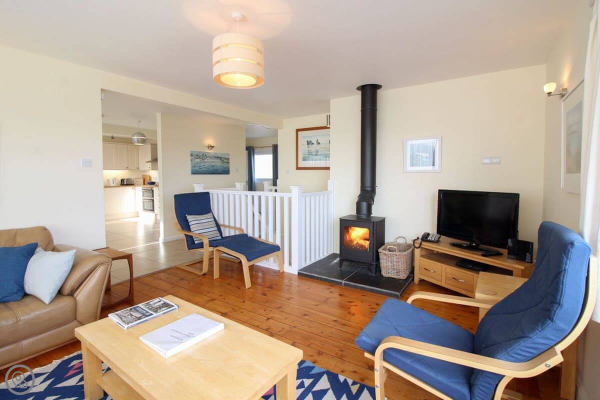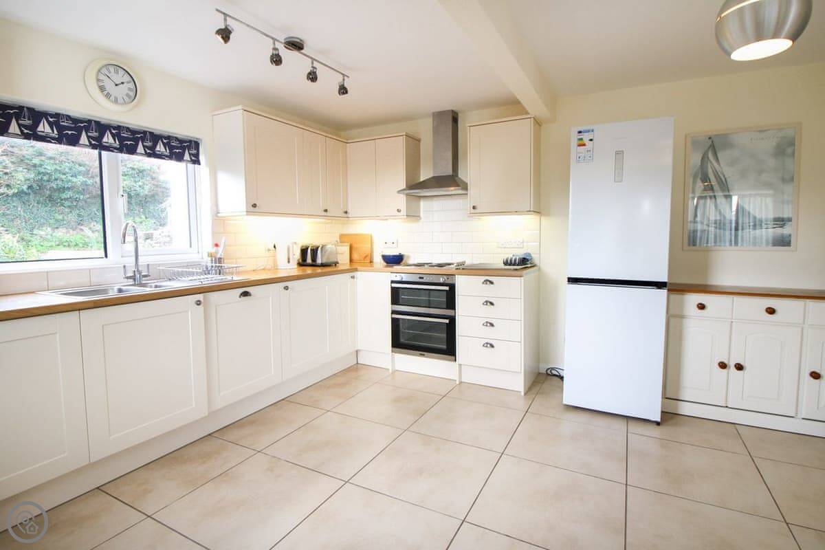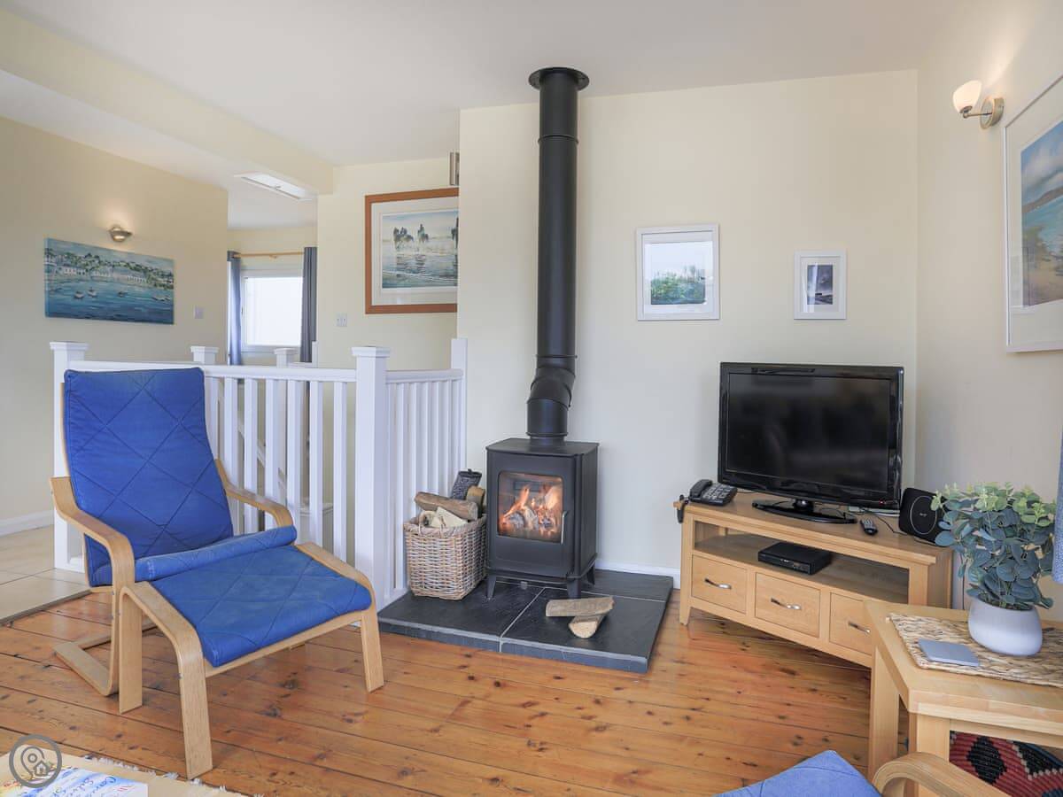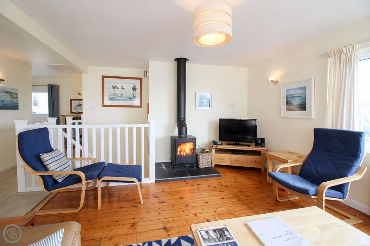 It's got a 4 Star rating. That means it's well equipped and comfortable. There's a wood burner for cooler evenings. The driveway fits two cars, which is useful in St Mawes.