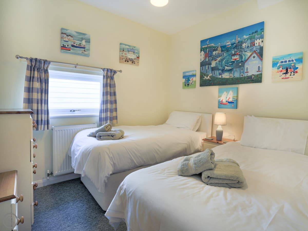 The walk to the harbour is down a steep hill. You should know that. Coming back up is a good climb. Everything you need is down there: pubs, restaurants, a few shops, a butcher, a post office. The beach is about half a mile.