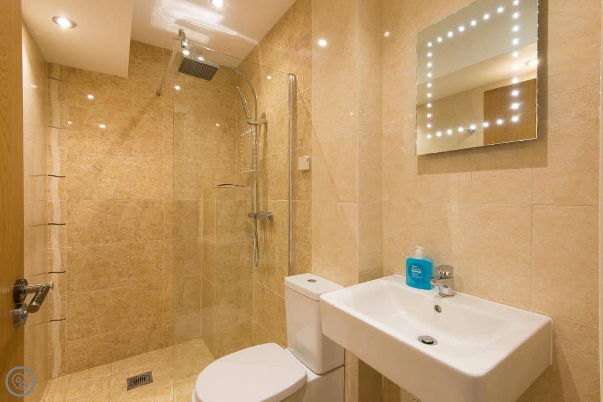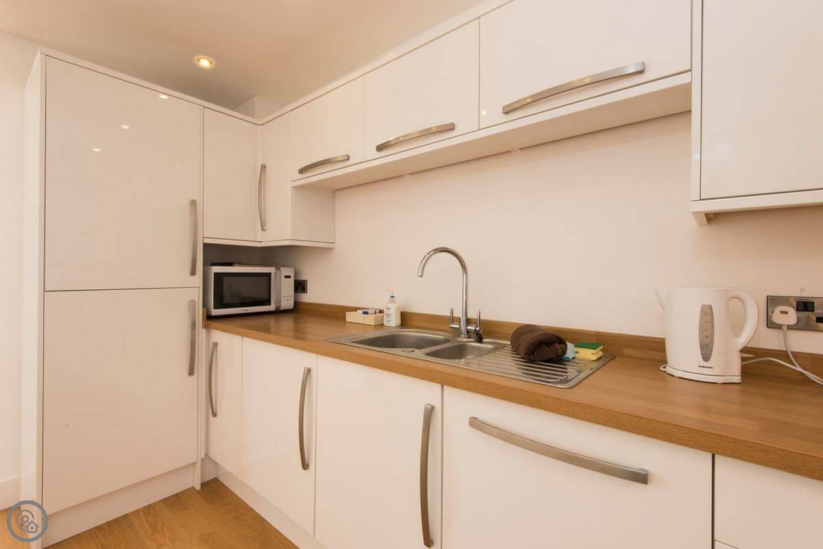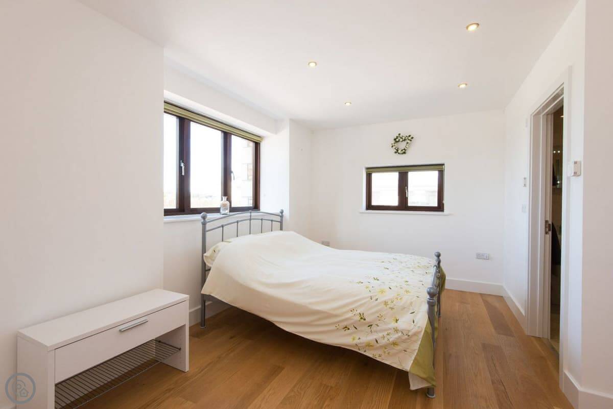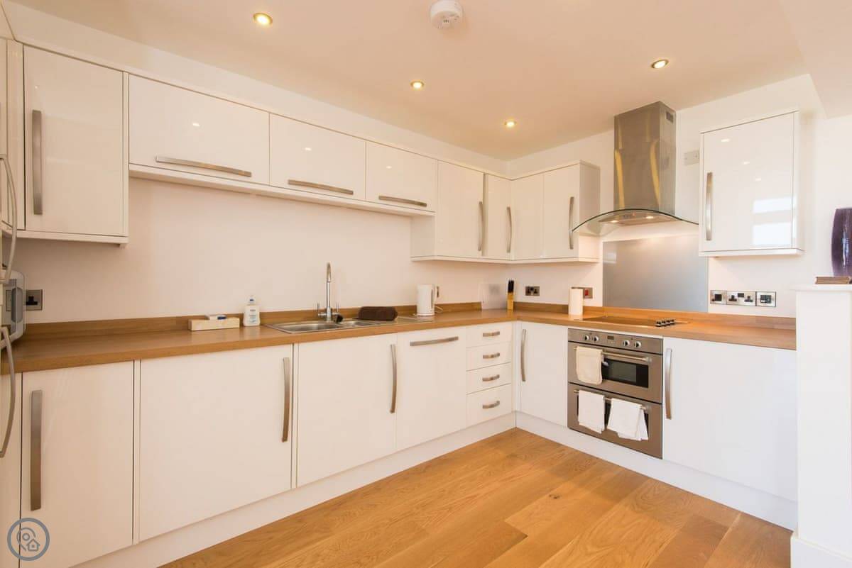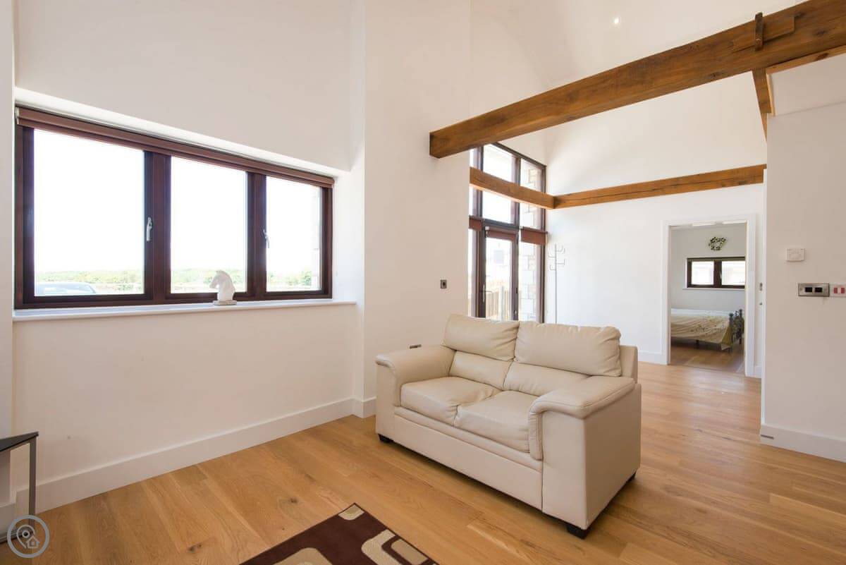 It's got underfloor heating and it's generally quite warm and efficient. The main room is all open plan, kitchen and living area together. It's a good size. The bedrooms are spacious. It's a 4 Star place, so it's comfortable and well-equipped rather than just a basic bolt-hole.