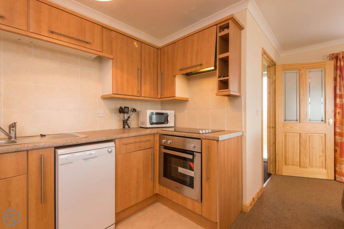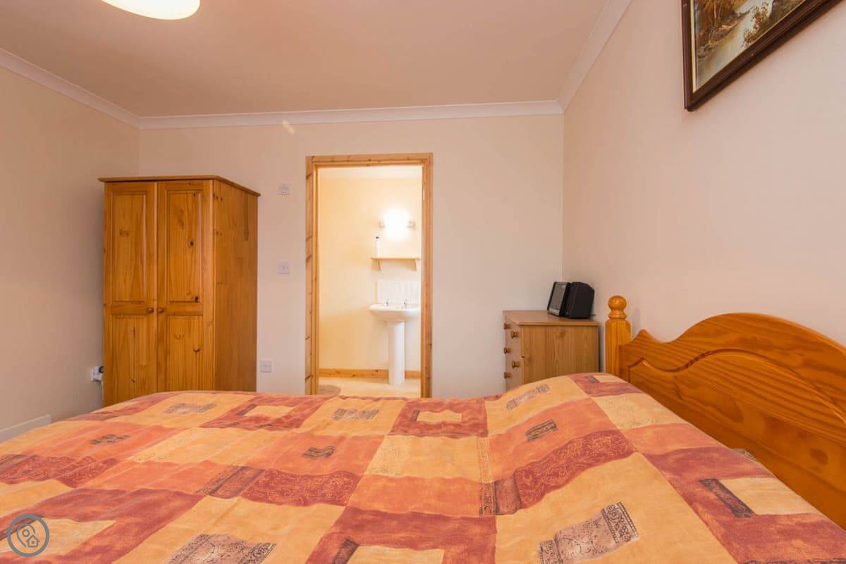 The place is for two people. One bedroom, one bathroom. It's got a 4 Star rating, which means it's comfortable and well-equipped. Everything is on the ground floor. The bedroom is through a door from the main living space. The shower is in the en-suite.