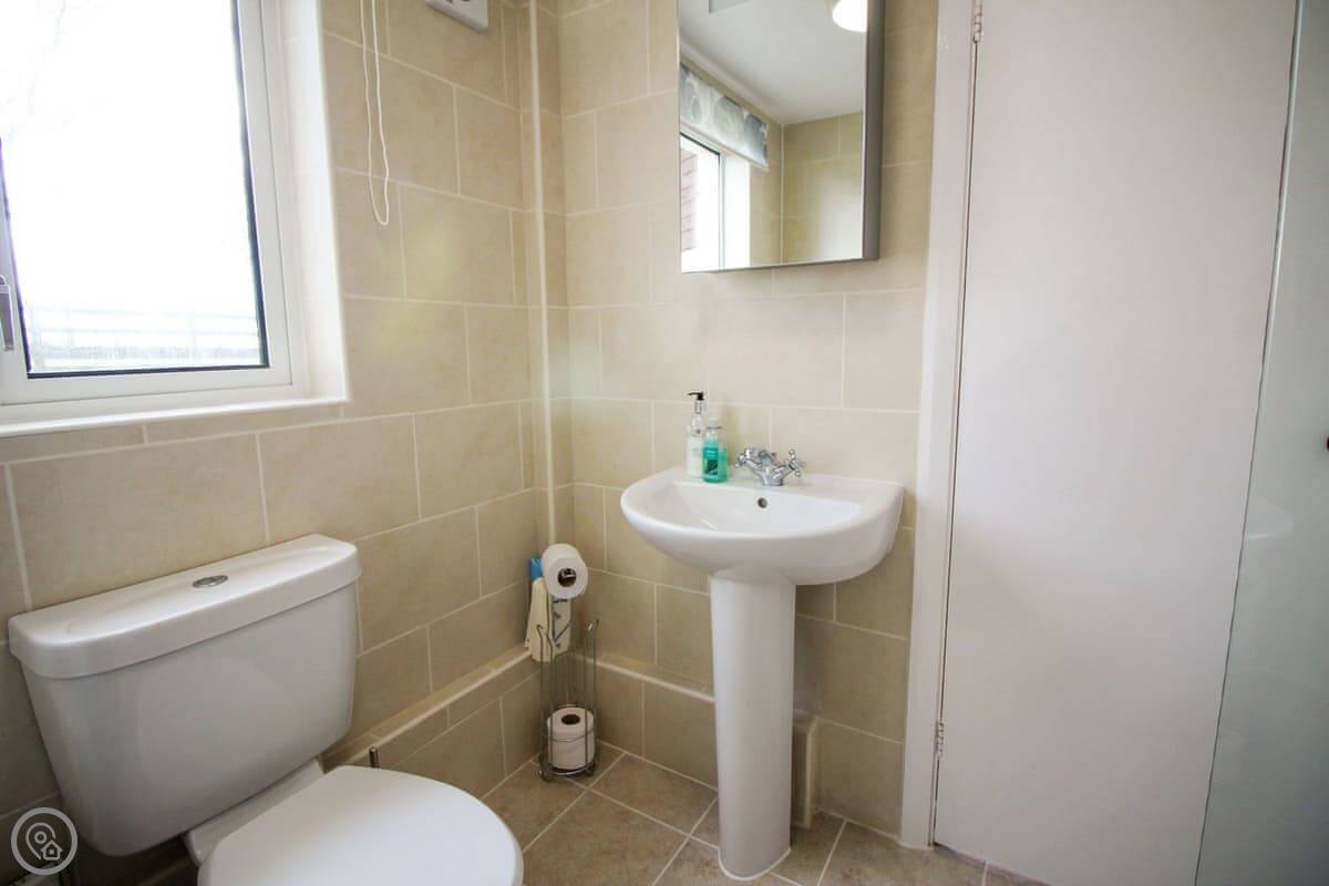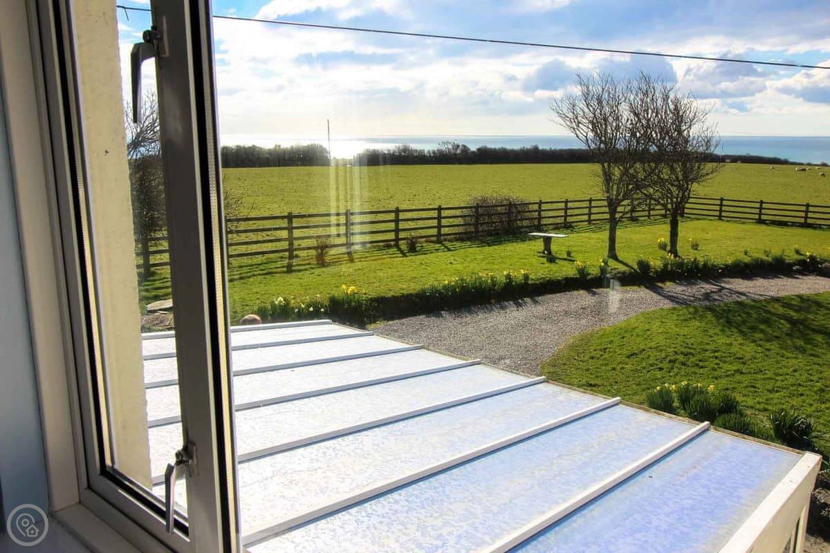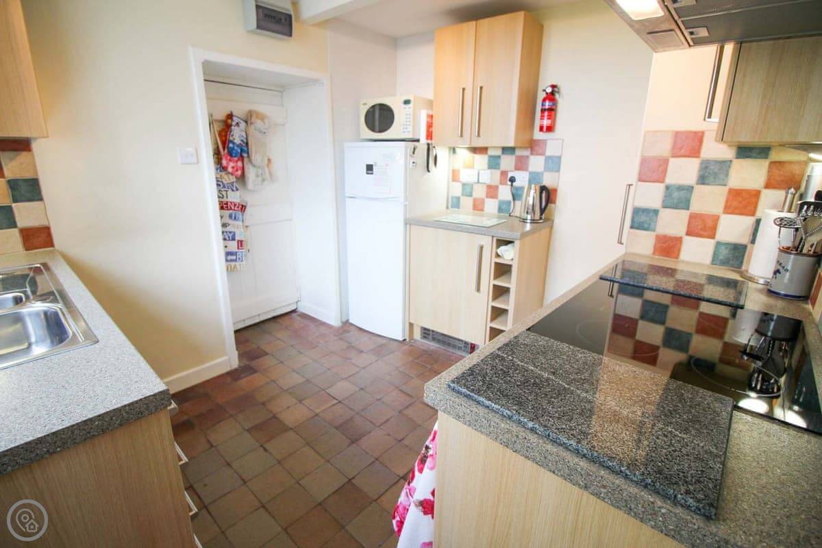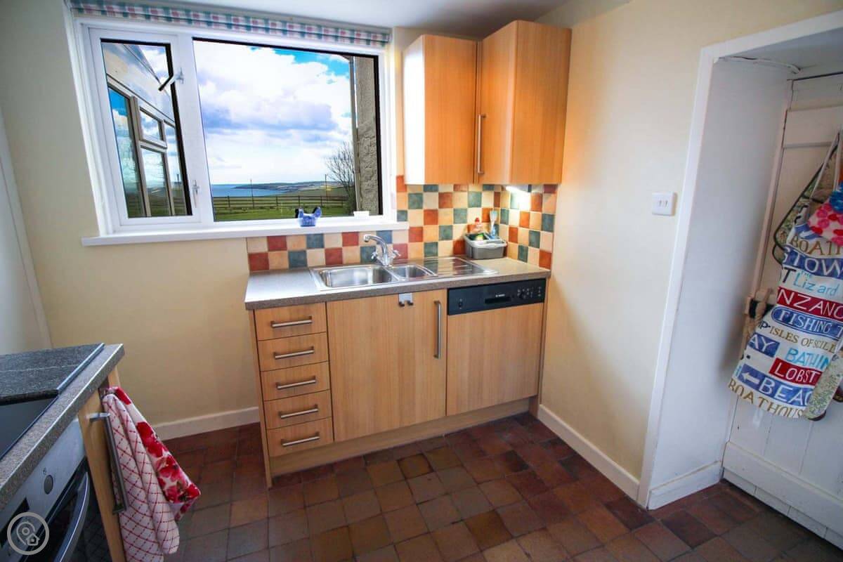 Downstairs there's a living and dining room with an open fire. The kitchen has what you'll need. There's also a conservatory with sofas, which is a nice spot when the sun's out.