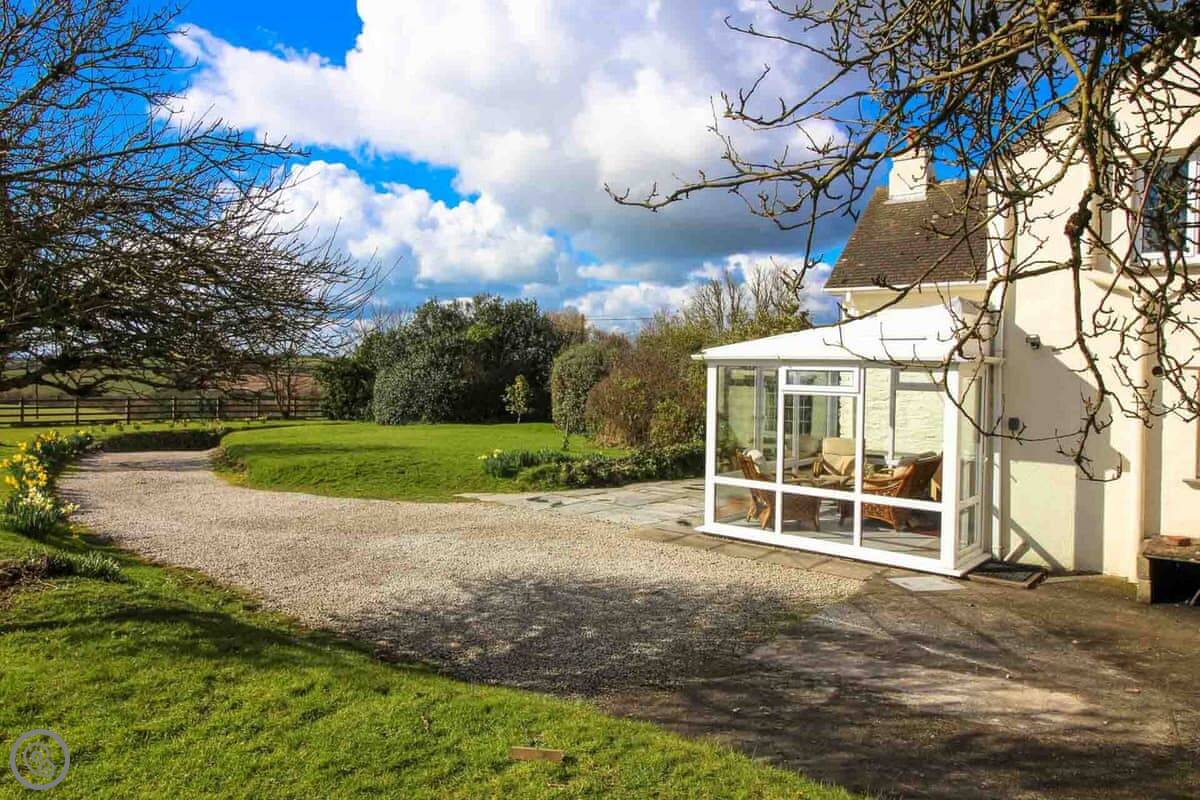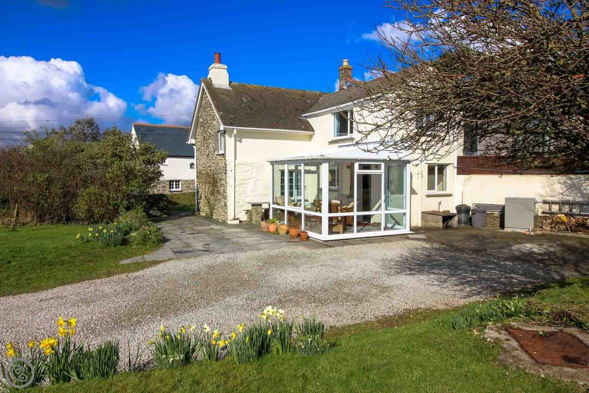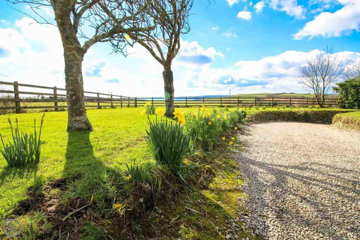 The cottage is set back from the main Tregony to St Mawes road. You can hear a bit of traffic sometimes, but you're also up on a bank so the view is good. There's parking for one car on the drive.