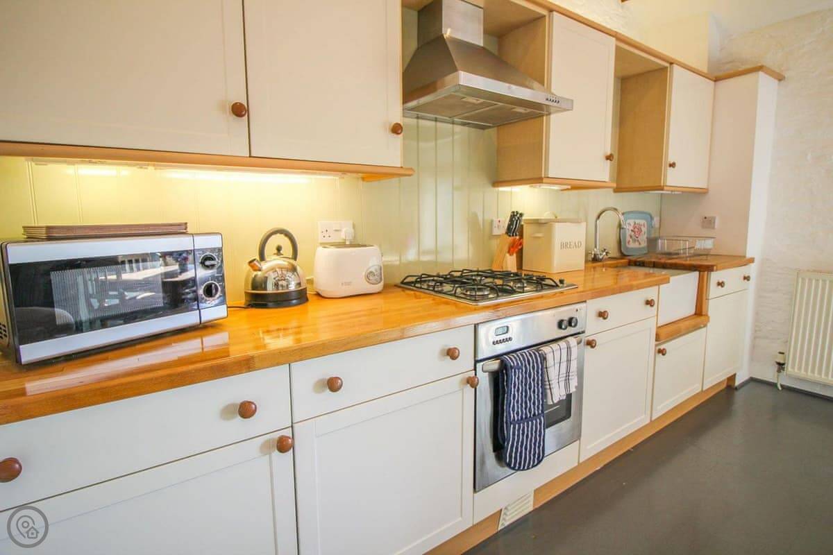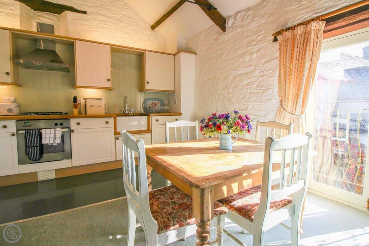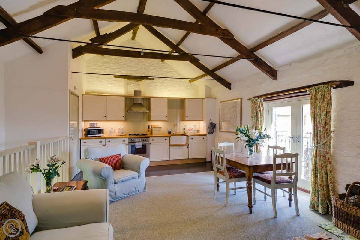 Situated at the end of the row of cottages, the entrance to Tor View is up a flight of wooden steps, as the entrance is on the first floor through a stable door situated on the cottage’s sunny balcony. In the living area there are three small, shuttered windows overlook the Manor’s courtyard. Neighbouring cottage, Lambs Barn at Trevadlock Manor can be ideal for larger parties as it has a co-joining door with Tor View so that the two are interlinked upstairs and the shared space can then sleep up to ten. The Granary at Trevadlock Manor offers an open plan living space with exposed beams and painted stone walling provides a huge amount of atmosphere. The living area is spacious and comfortable and there are French doors open onto Juliette balcony. The Forge at Trevadlock Manor is second in the row and offers two bedrooms, one double and one twin. and the open plan living space is spacious and comfortable. The Dairy at Trevadlock Manor is furnished to a high standard and offers two bedrooms, one double and one twin. The West Wing at Trevadlock Manor offers a step into history. From the ancient front door, a flagstone floored hallway takes you through to the stunning living and dining room with enormous Delabole slates on the floor and a granite lined open fireplace. There are historic features all around this beautiful section of the house, and upstairs there are two airy bedrooms with comfortable beds.