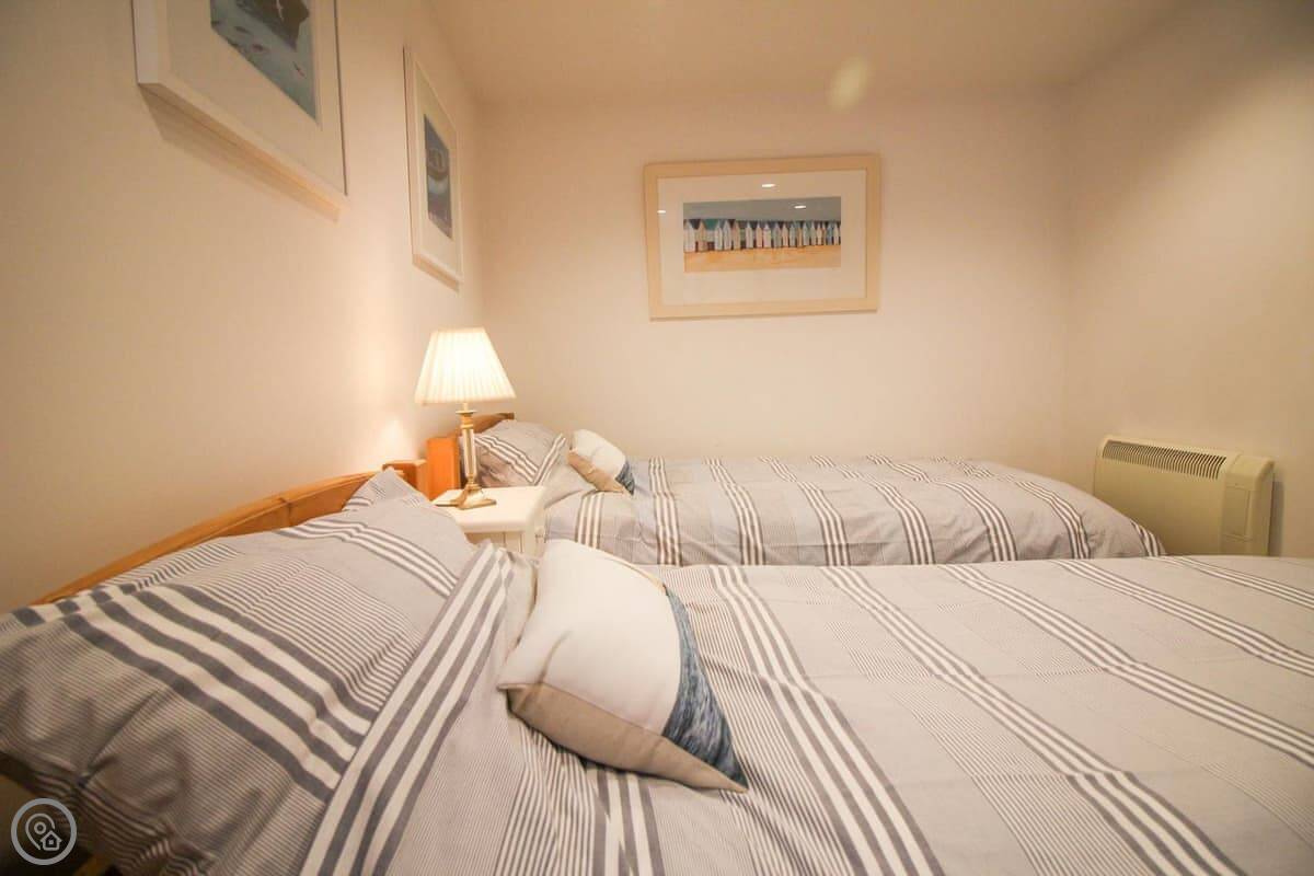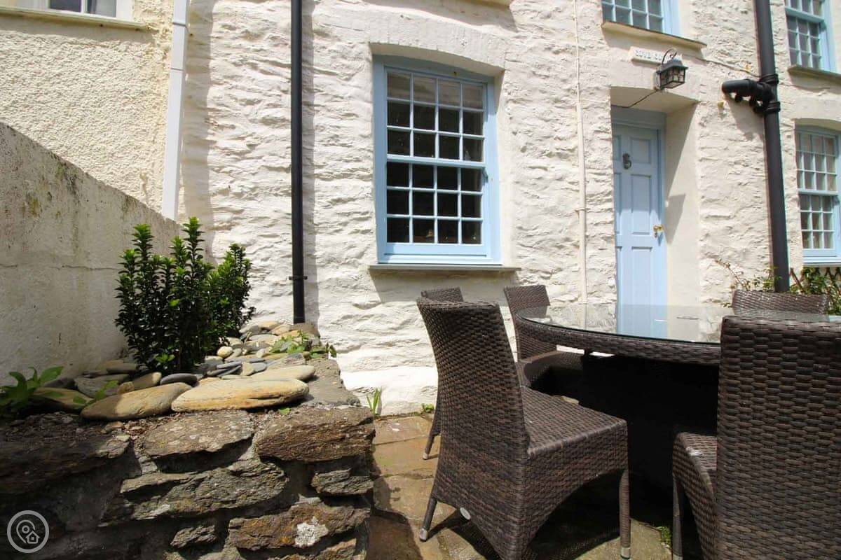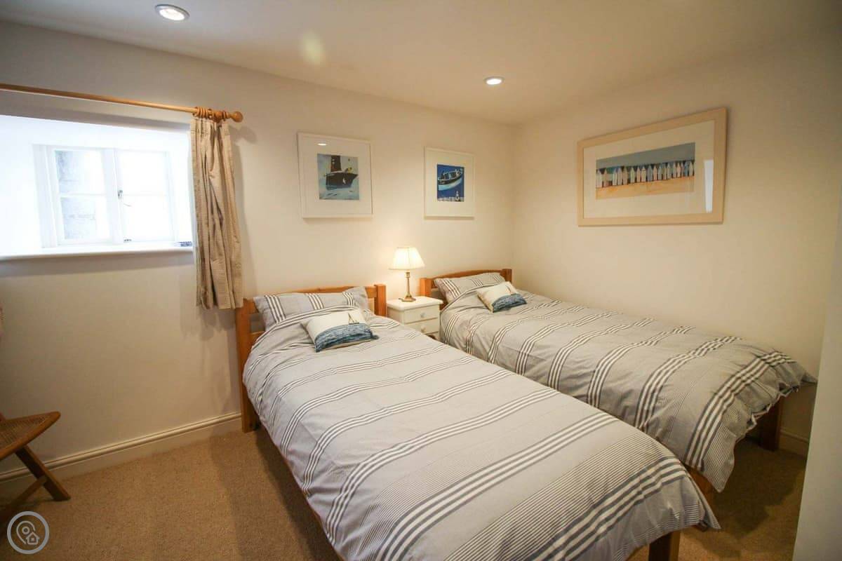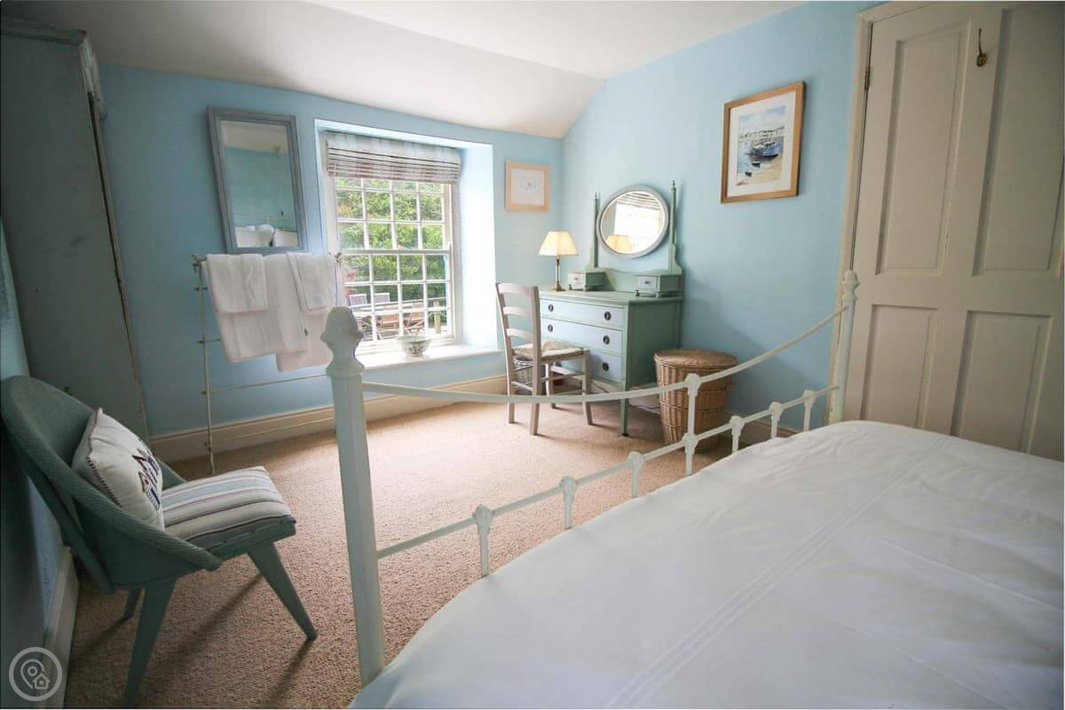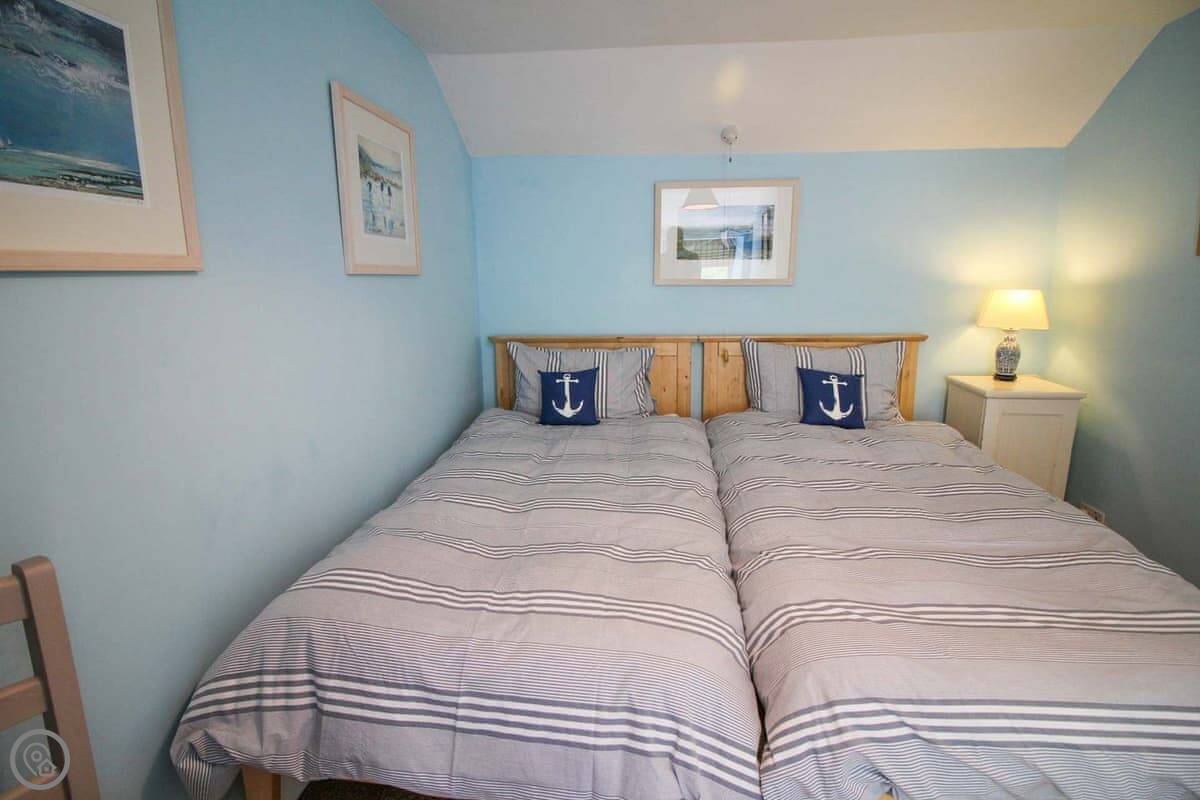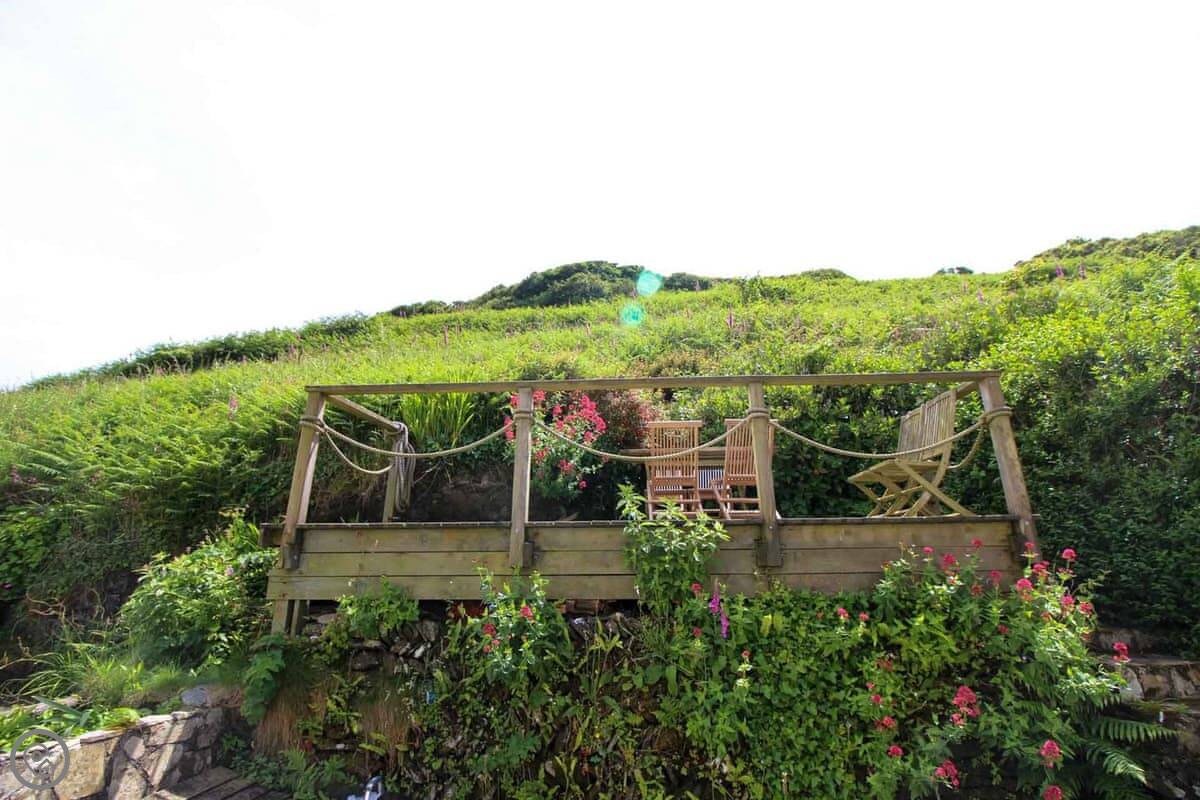 Cove Cottage is brilliantly located a stone’s throw from the harbour and beach right in the heart of the quintessential Cornish fishing village of Portloe. The entrance level is open plan with a spacious living area at one end and kitchen and dining areas at the other. There is an open fire in the living area to keep you warm in the winter and the TV only has on demand TV there is no Freeview. The terrace makes a great suntrap and is surprisingly quiet being this close to the harbour, there is also a raised decked area with amazing views.