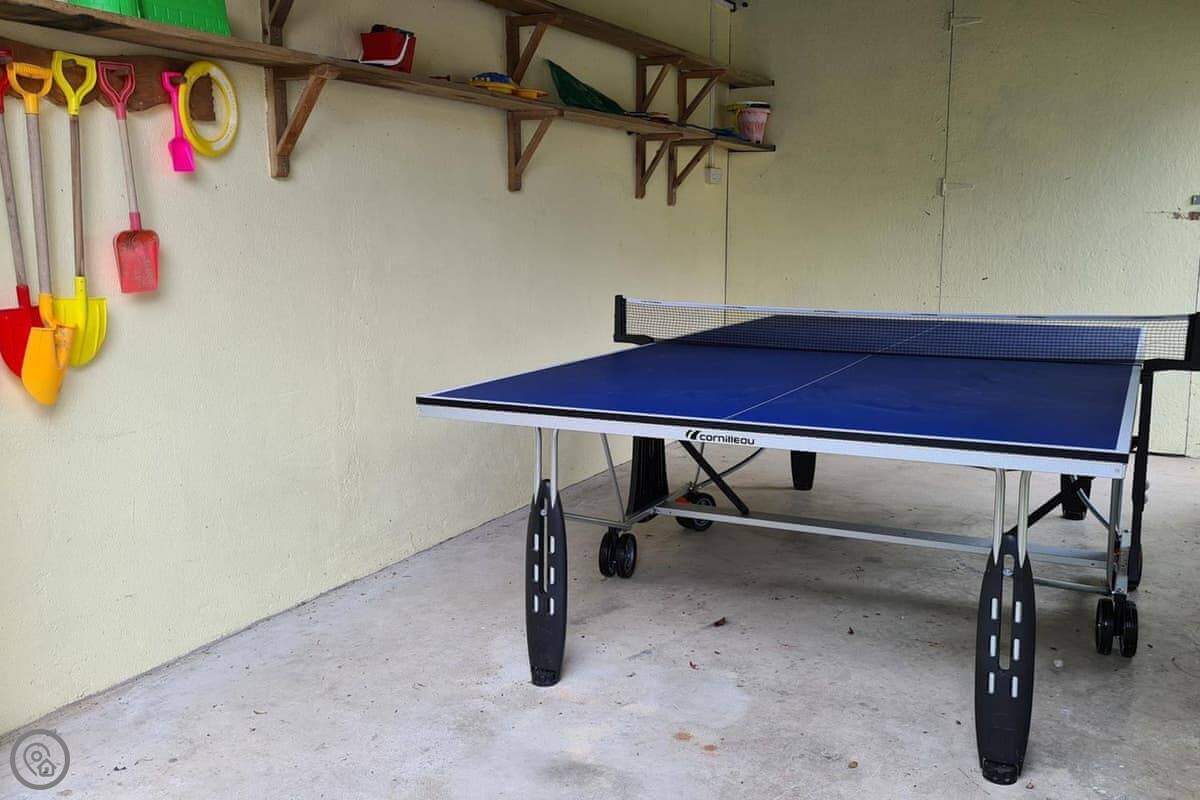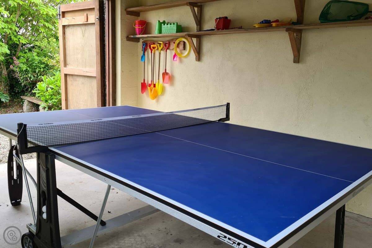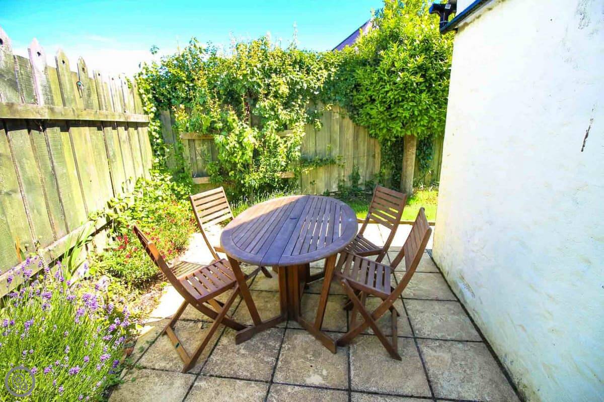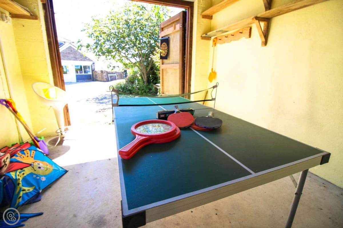 Across the road, there's a separate games room with a full-size table tennis table you can use. The garden is private but it's not huge, it's got a seating area. Parking is off-street on site.