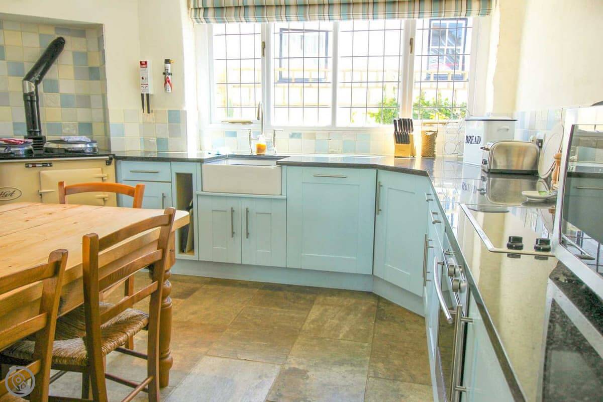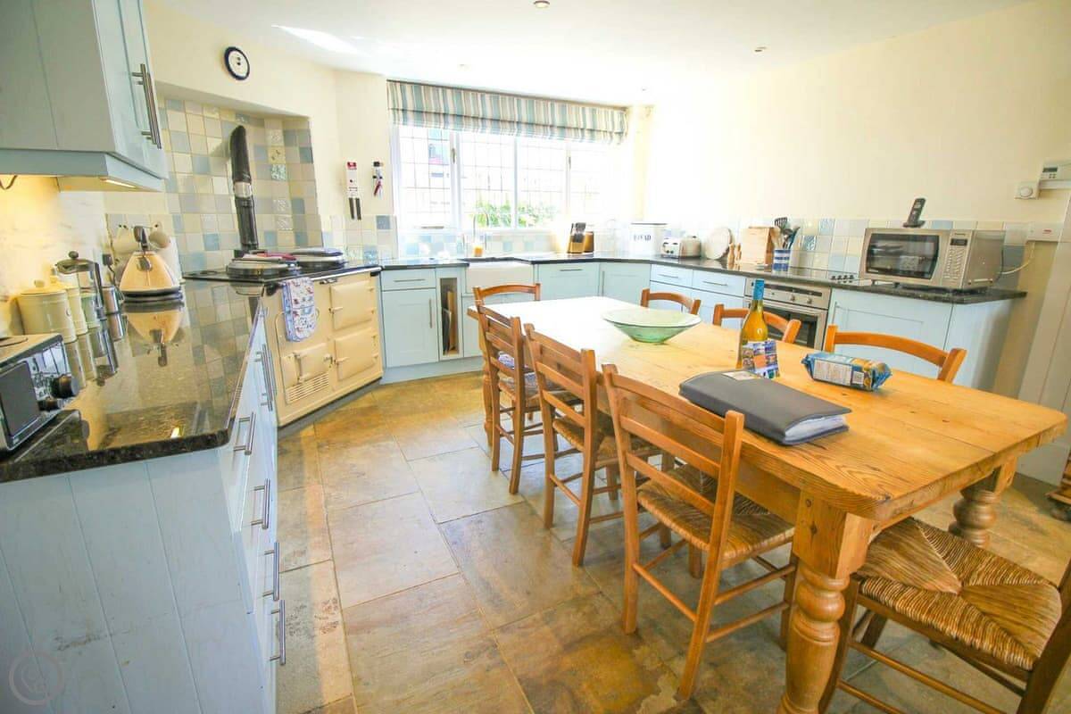 There are three bathrooms, which is handy if you've got a full house. The kitchen and dining area is a good size. There's a wood burner in the living room for cooler evenings.