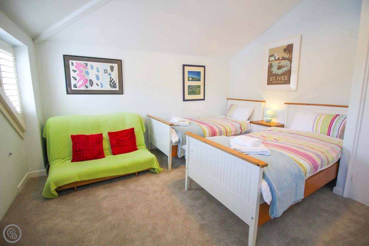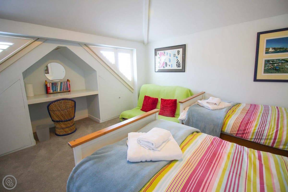 You're about a five-minute walk down the hill to Portscatho harbour. There's a sandy beach there with rock pools when the tide's out. The village shop is well-stocked. There are a few places to eat, including the pub over the road.