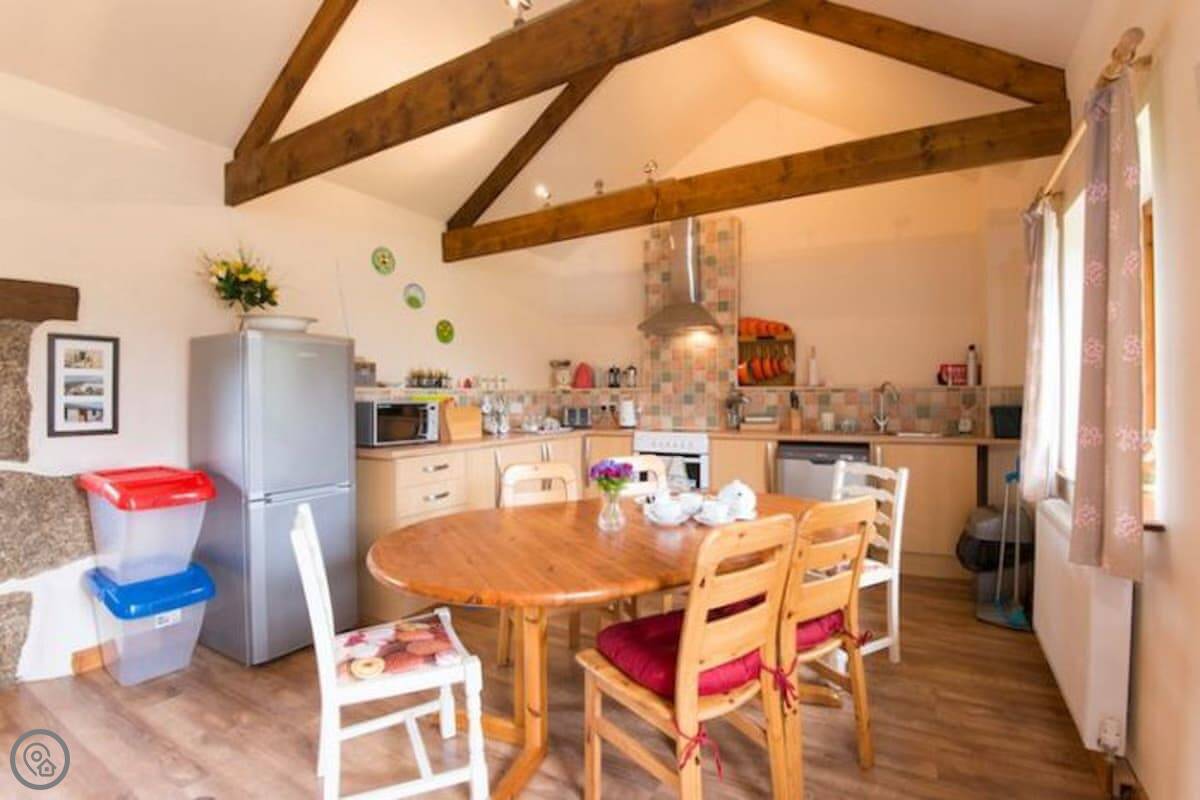 Inside, it's got what you'd need: WiFi, a TV, a washing machine, and a dishwasher. Bedding and towels are included. We've got a cot, highchair, and stairgate if you're bringing a little one.
