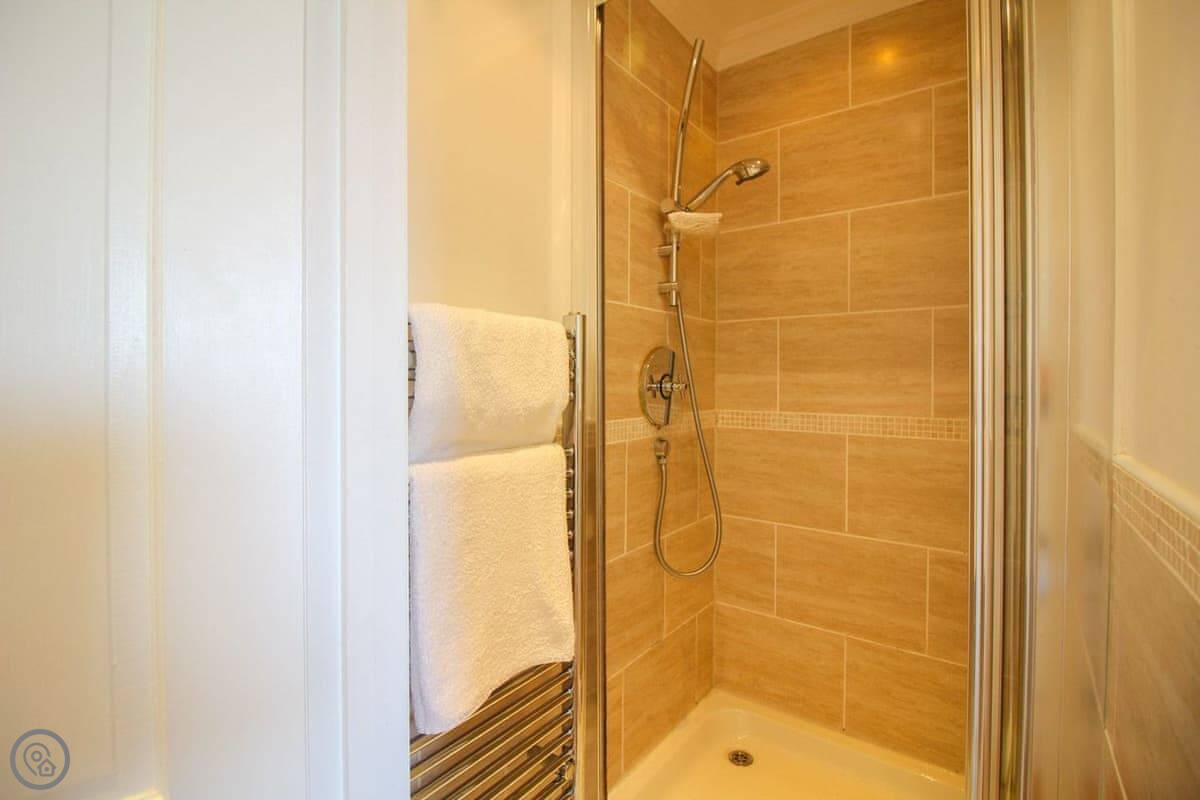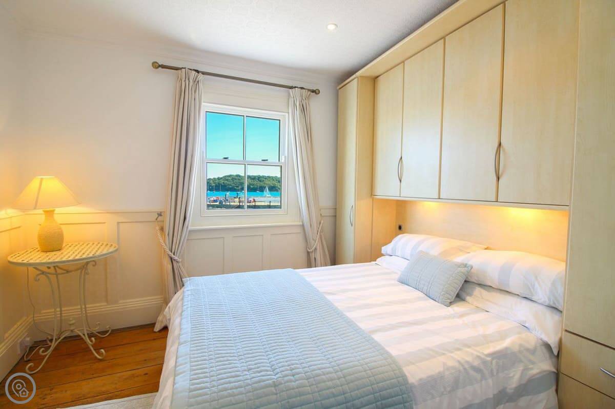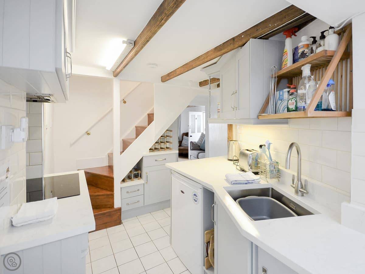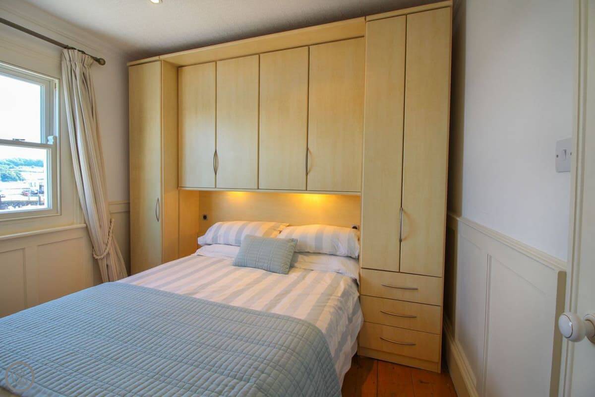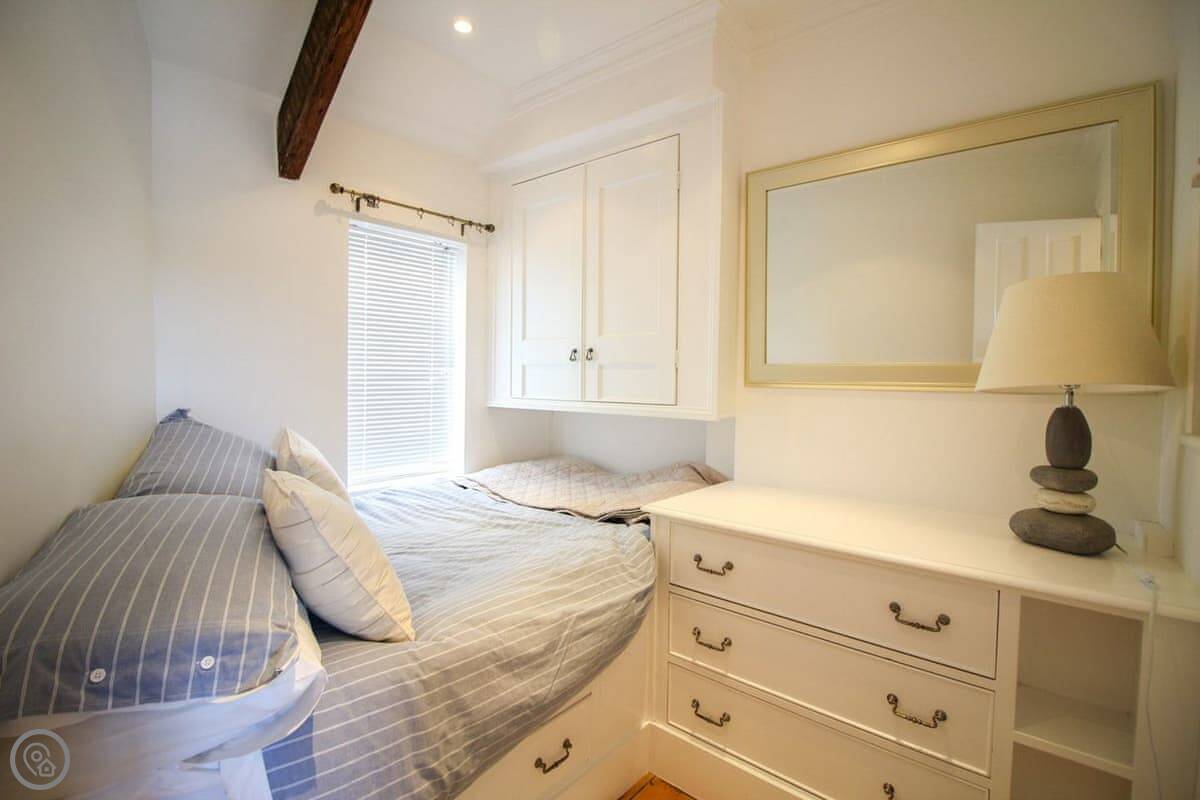 It sleeps three. Two bedrooms, one bathroom. It's got a 4 Star rating. They've done a clever job with the space inside, it's all been fitted out well. The second bedroom is a bit of an odd shape, it's almost triangular. The stairs are steep, like a lot of places round here.