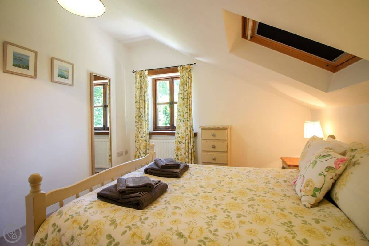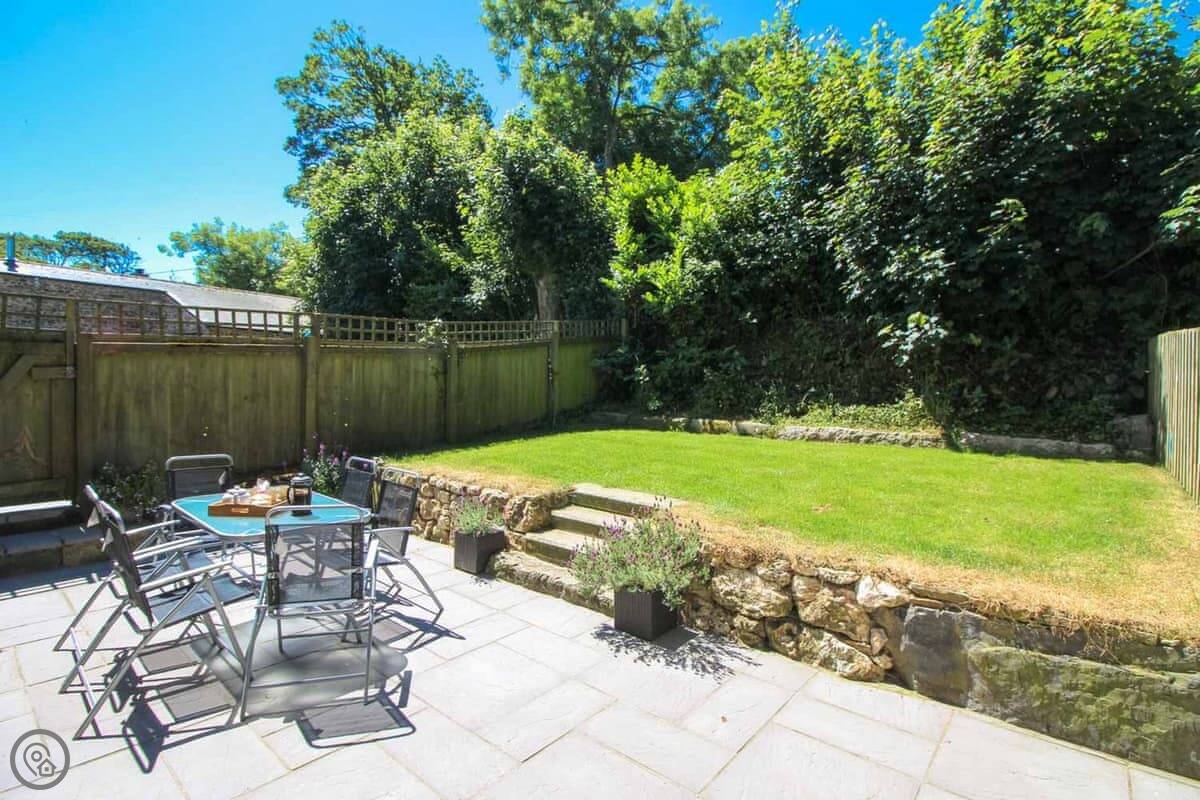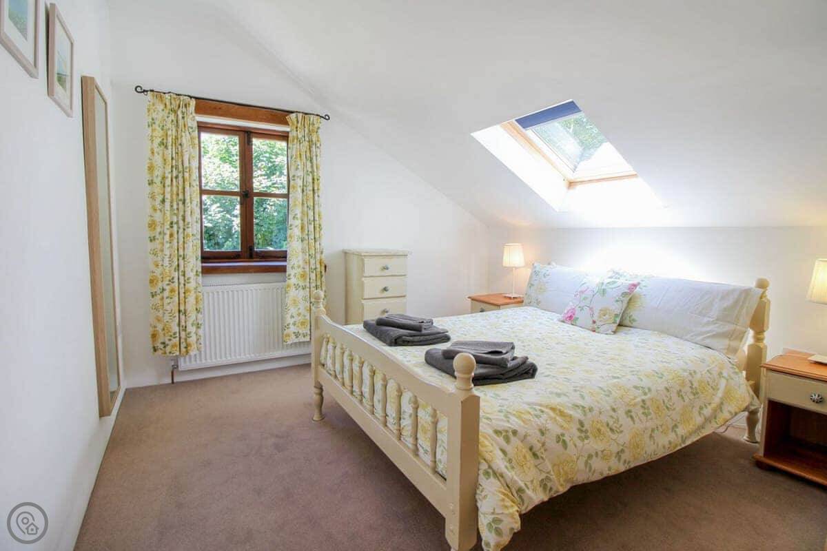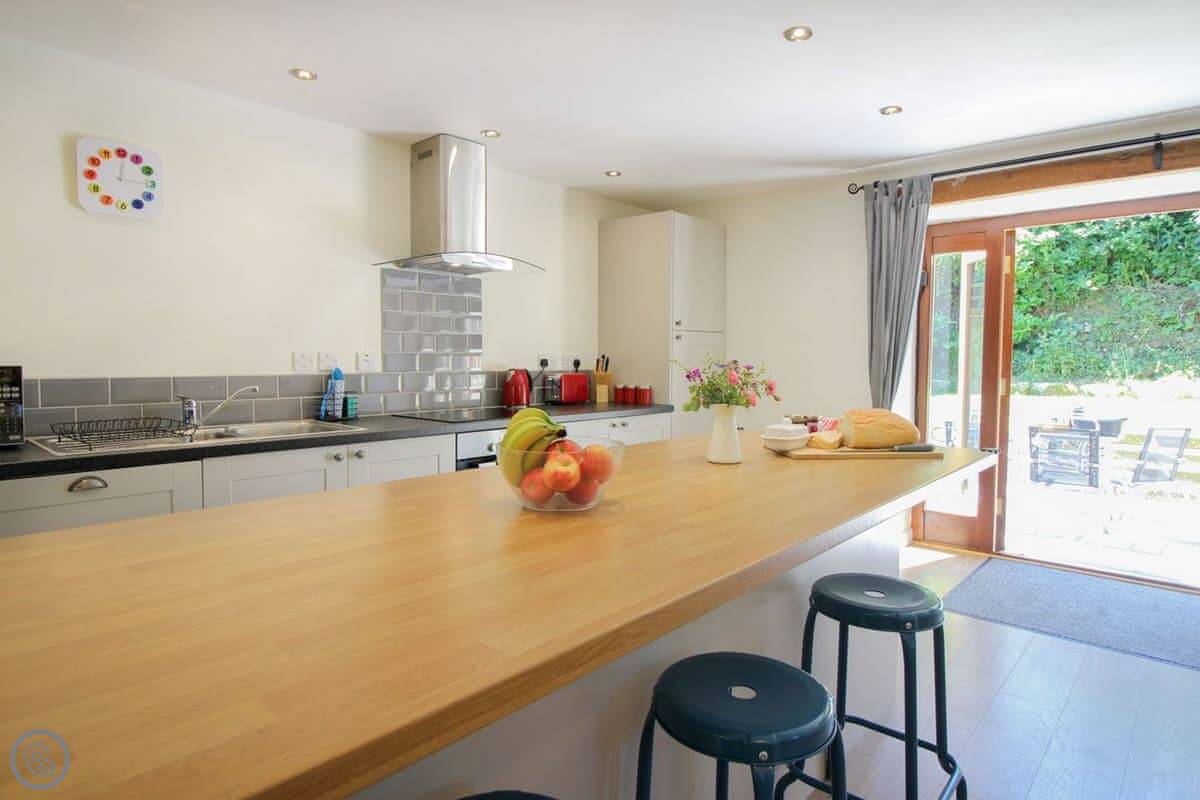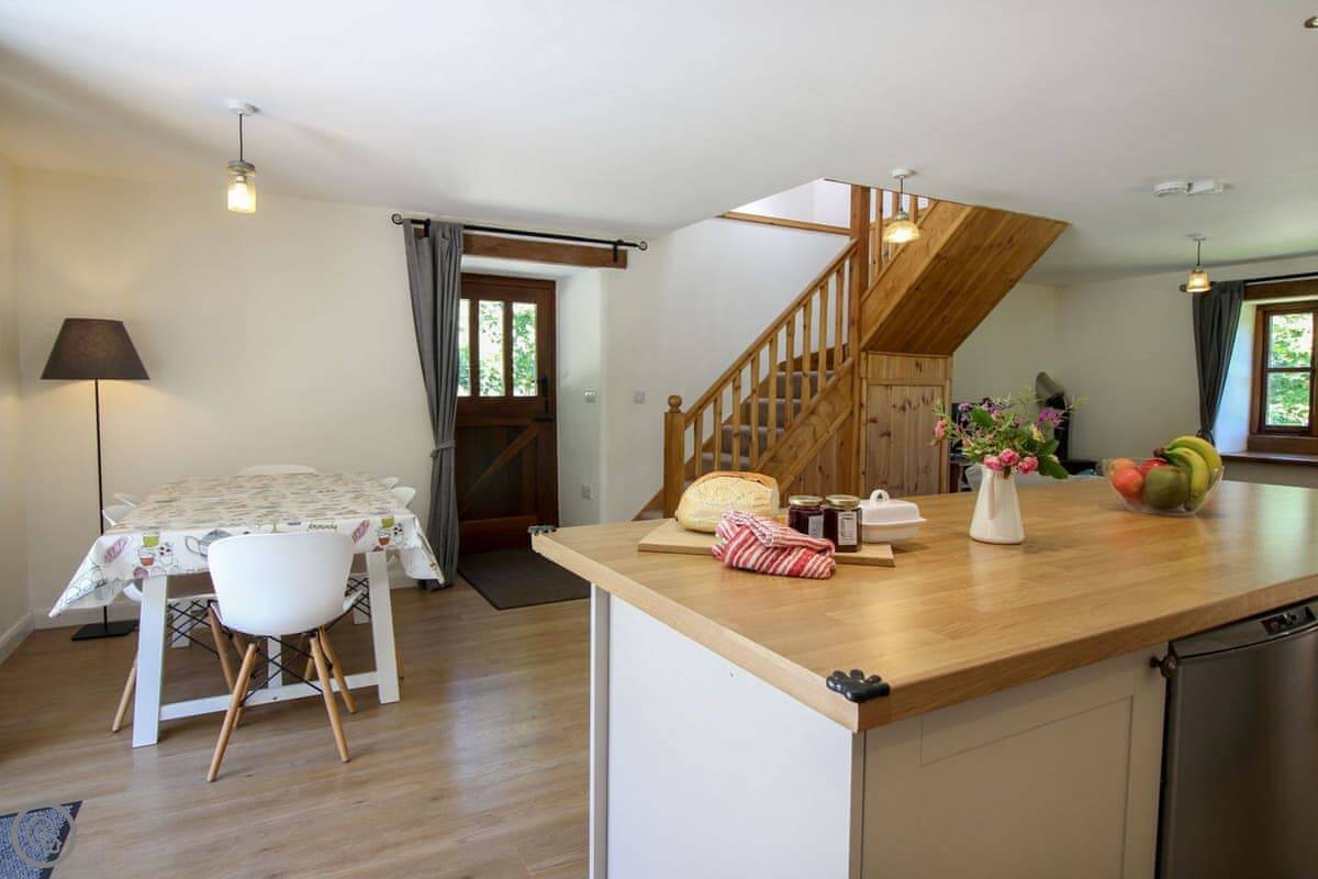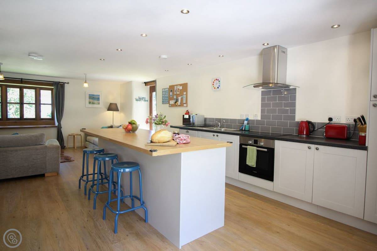 Downstairs is all open plan, with French doors out to the garden. There's a wood burner for cooler evenings. The garden is enclosed, which is good if you're bringing dogs. We allow up to two.