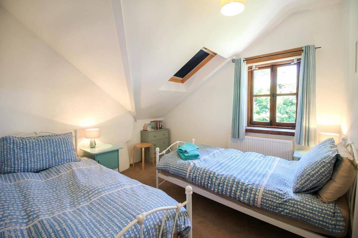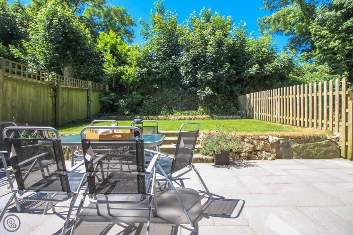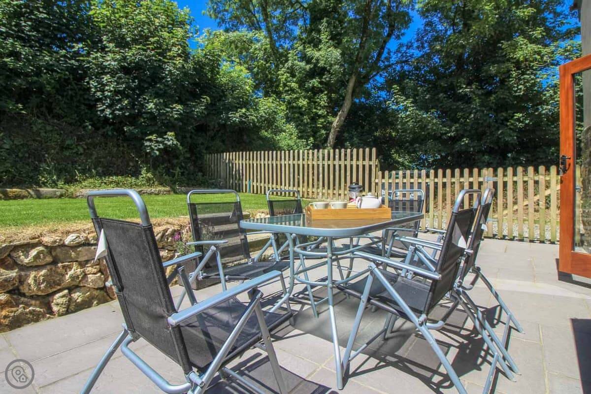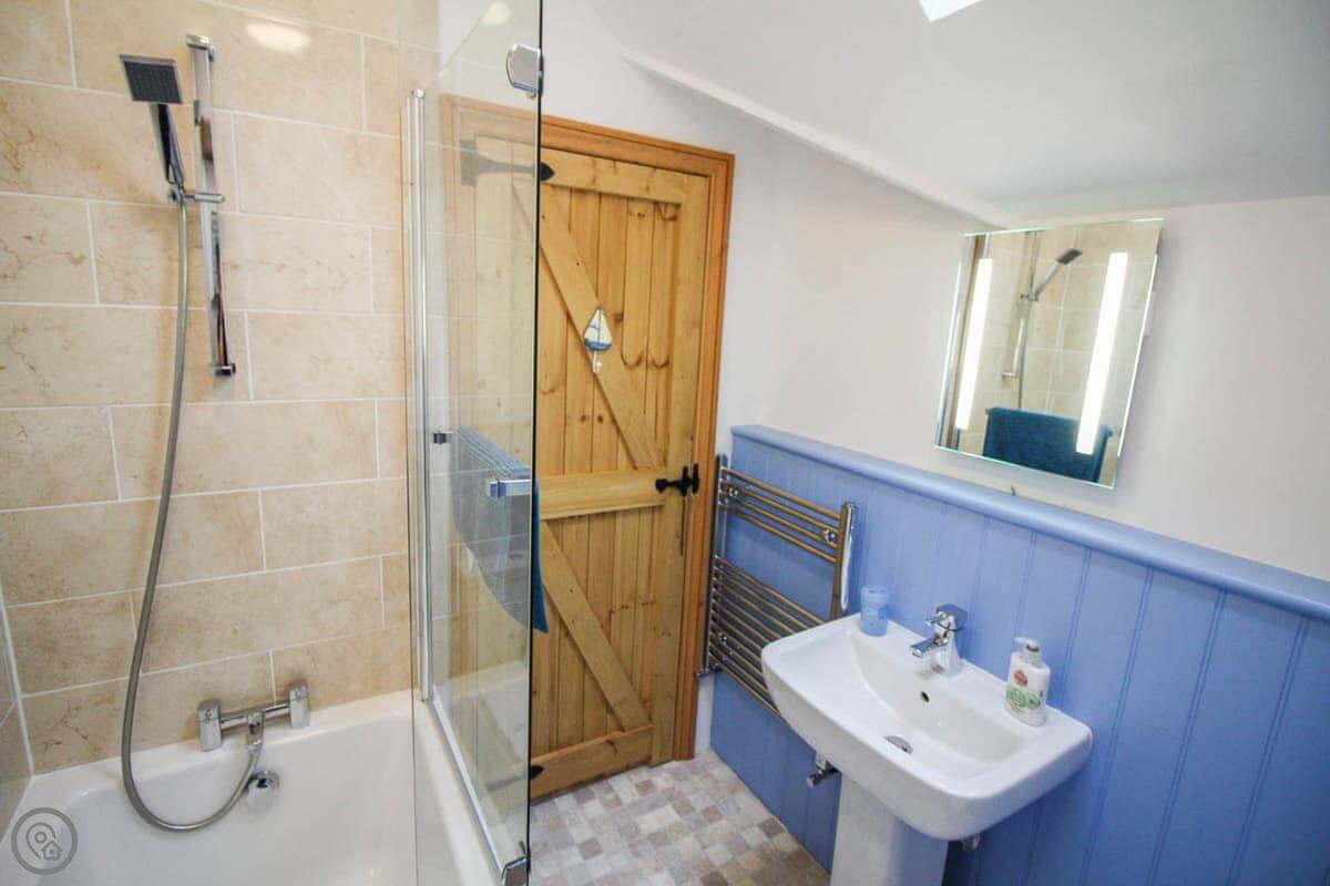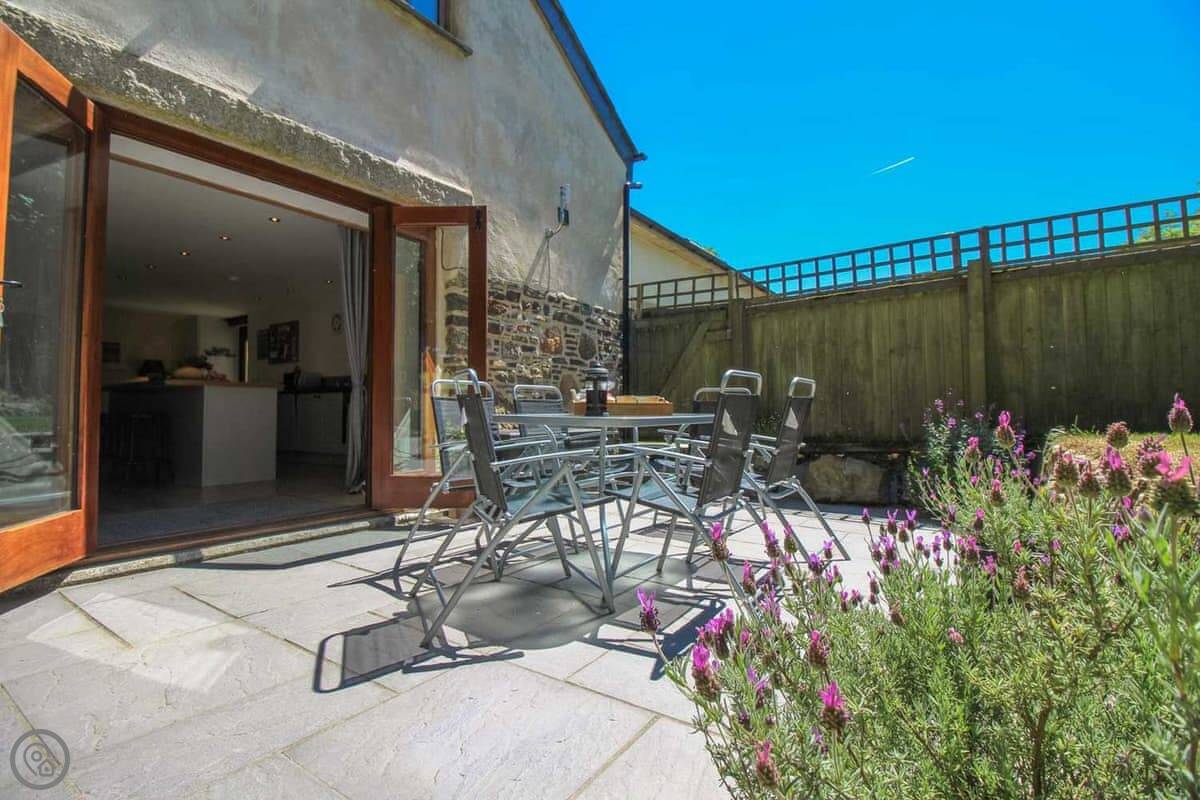 Downstairs is all open plan, with French doors out to the garden. There's a wood burner for cooler evenings. The garden is enclosed, which is good if you're bringing dogs. We allow up to two.
