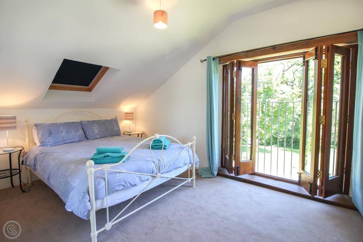 It sleeps six. There are three bedrooms and one bathroom. The rating is 4 Star. The main bedroom has an ensuite shower room and doors that open onto a small Juliet balcony.