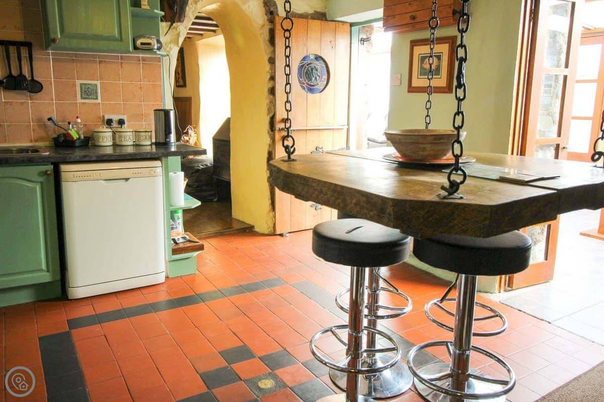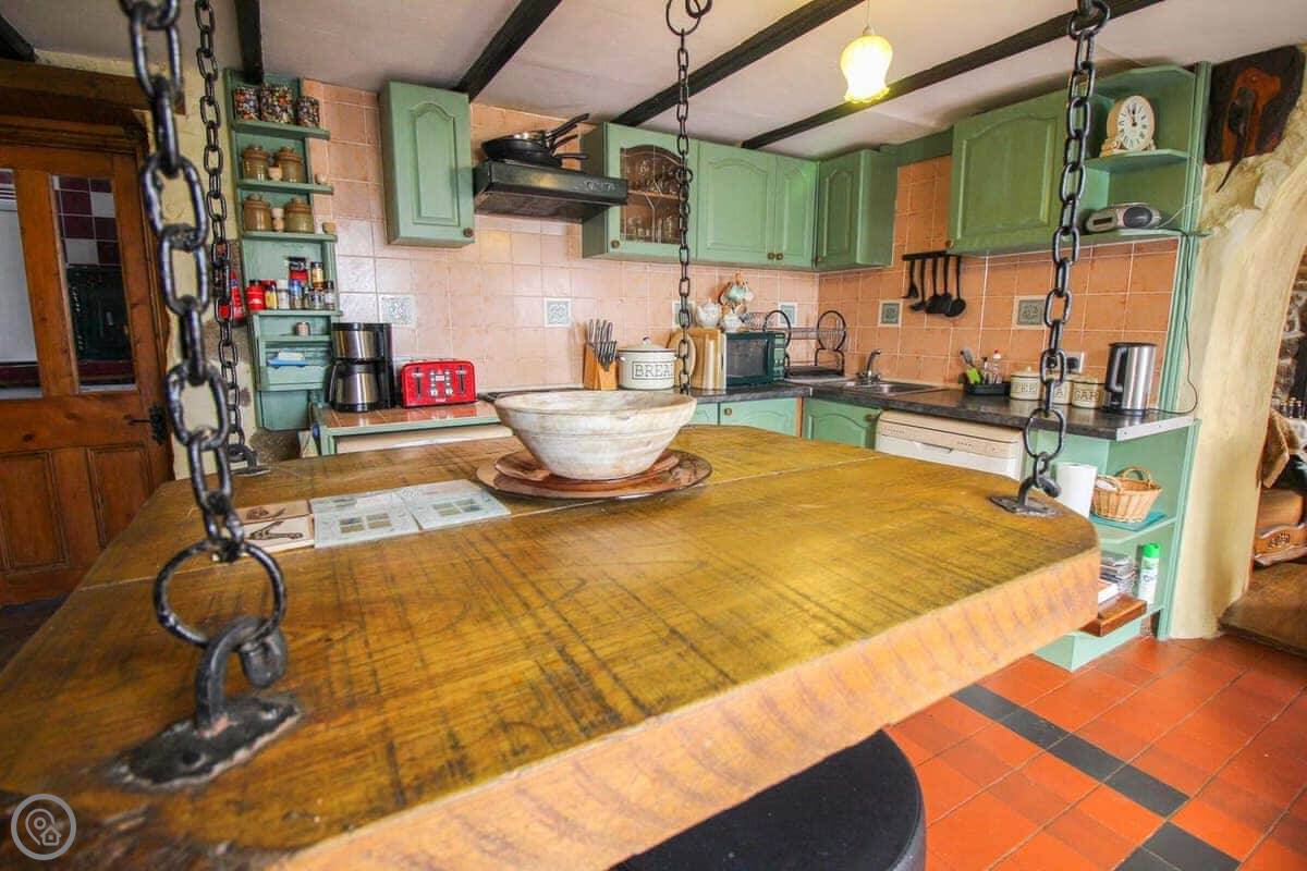 The house has some unusual features. My father was a sculptor, so there are some figureheads around the place. The kitchen table is hung from the ceiling on chains. A lot of the doors and furniture are reclaimed wood. It's all solid stuff.
